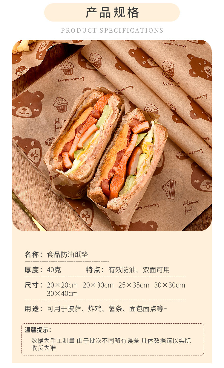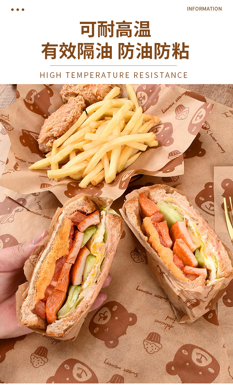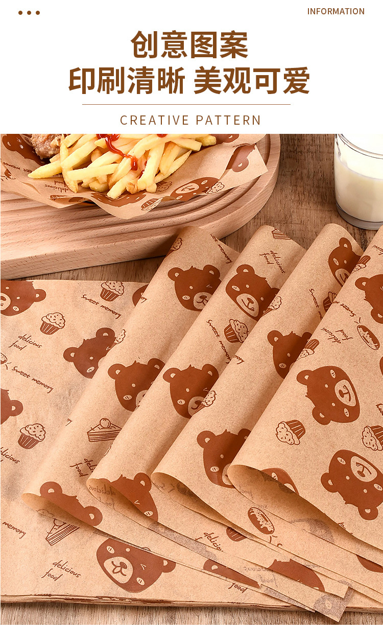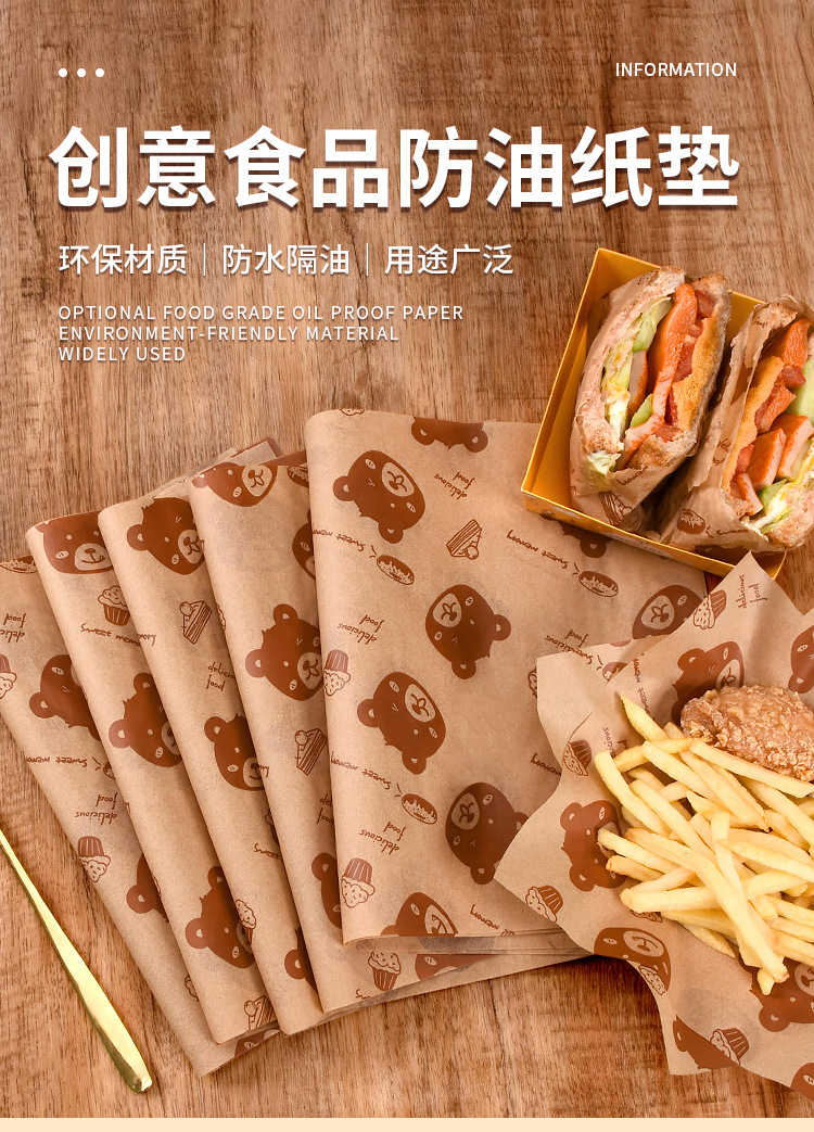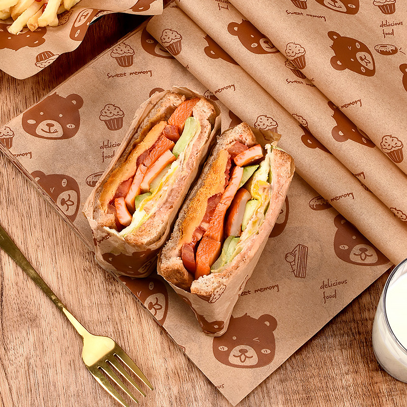 Выпечка бурого медведя коврик бумага печать маслостойкая бумага Жареные Закуски Чипсы тарелка бумага коврик бумага гамбургер Сэндвич Оберточная Бумага