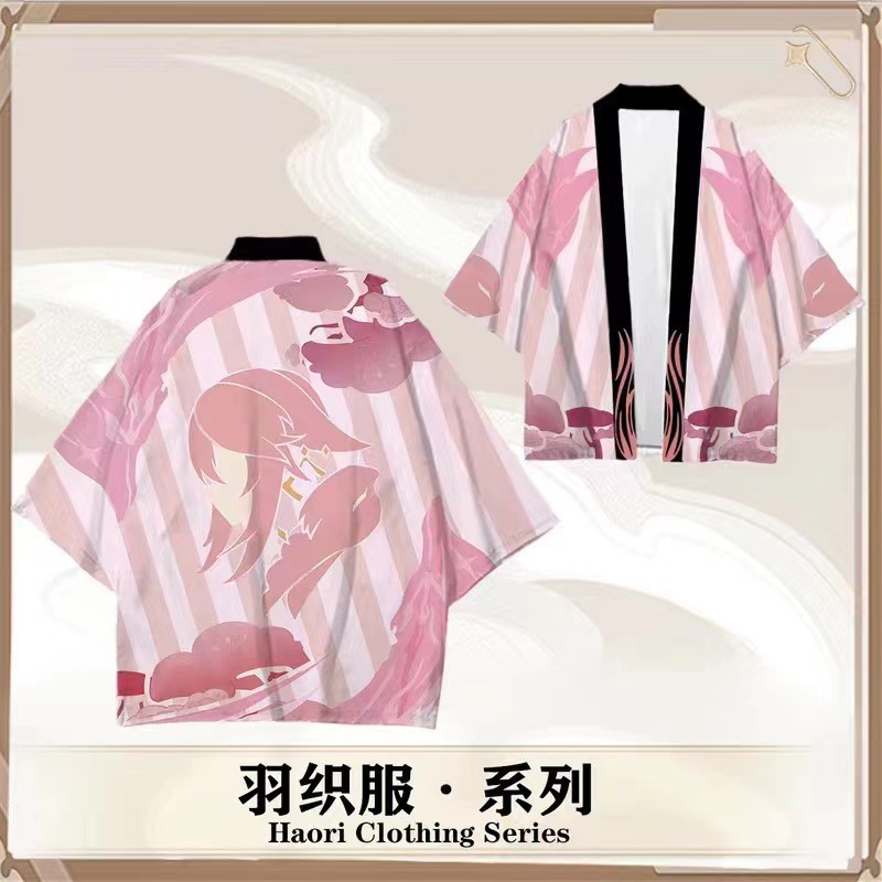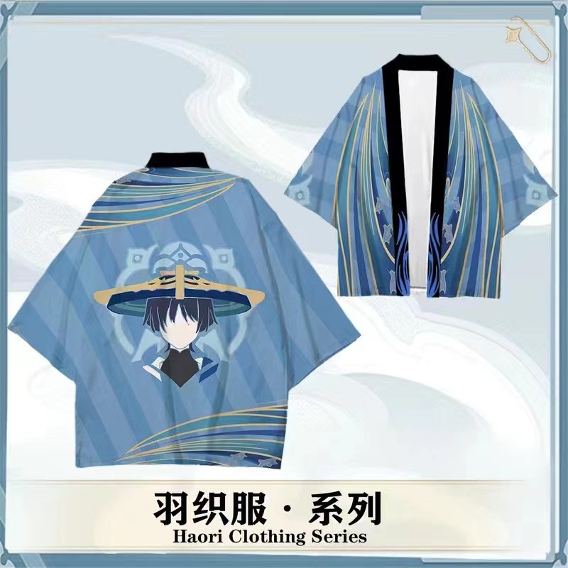 Оригинальный бог Genshin Impact плащ кимоно-косплей Чжун Ли Цин Кели Бог Повседневное перо Лето