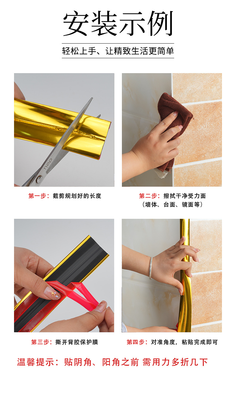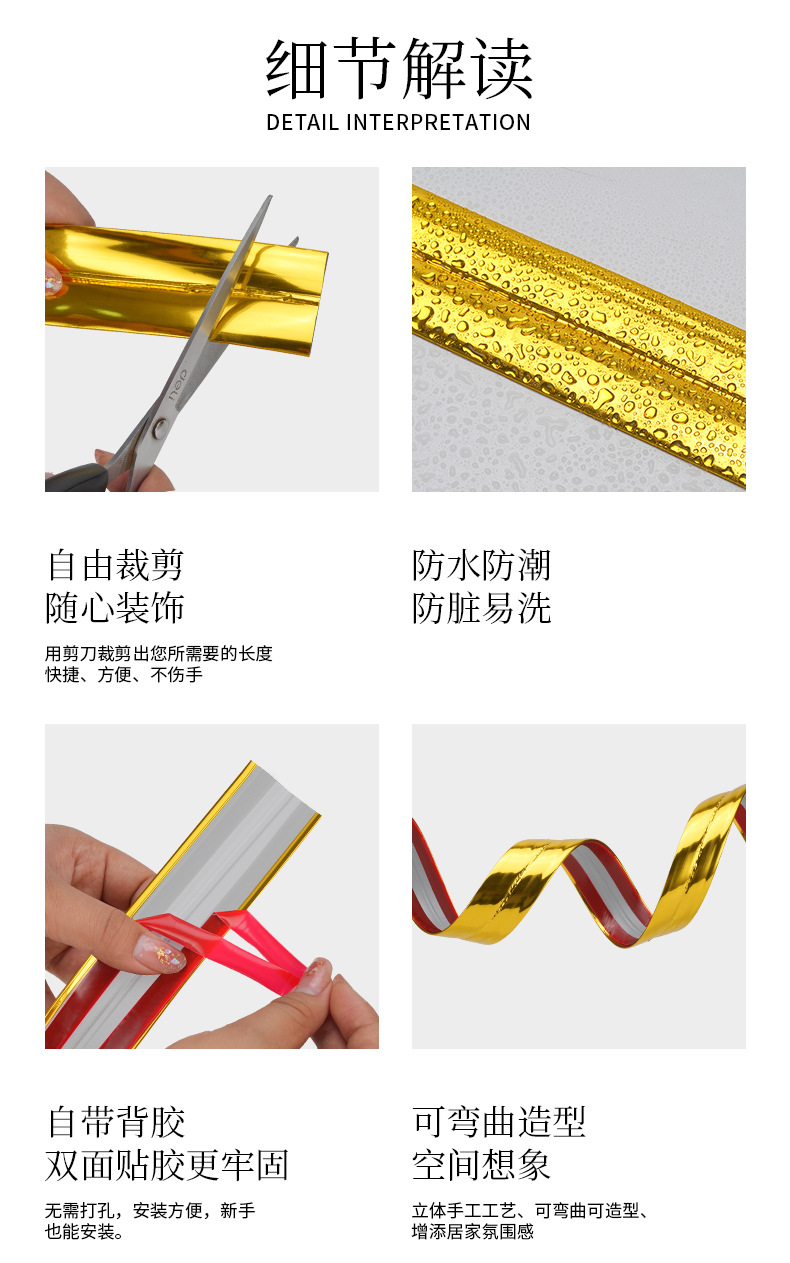 本品为多用途自粘装饰线条!可平贴,可阴角,可阳角。
