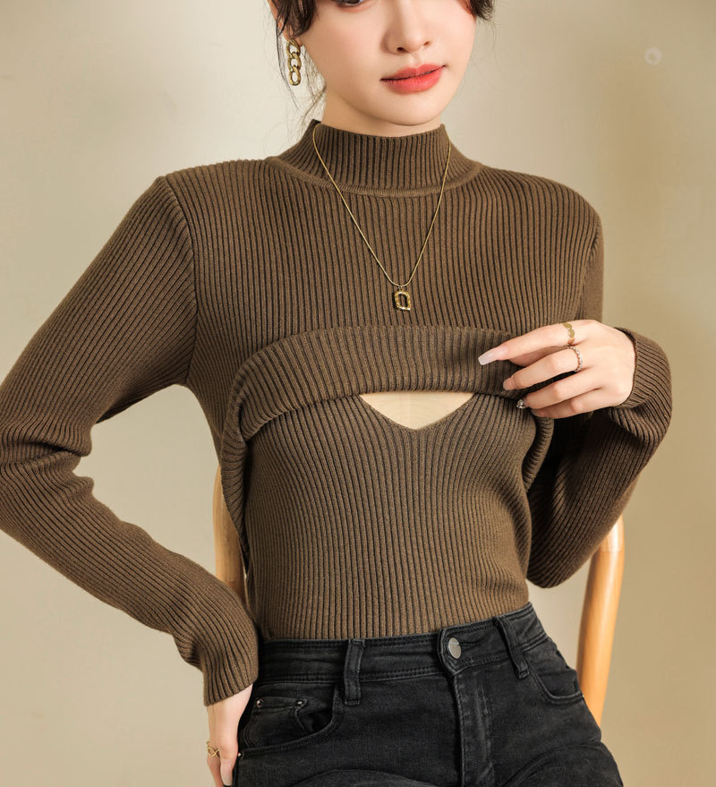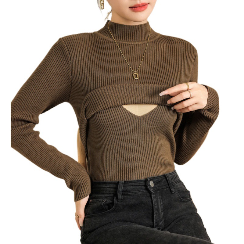 Свитер для кормления осень-зима Новый сезон утолщенный теплый послеродовой, приятный для кожи тонкий похудение для кормления, донный Топ моды