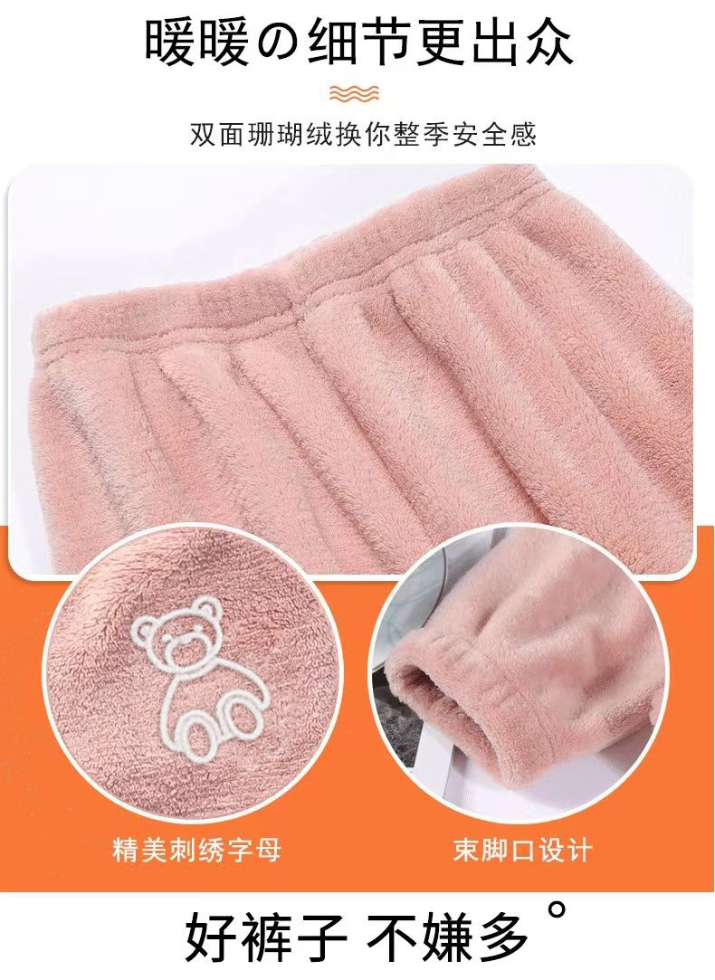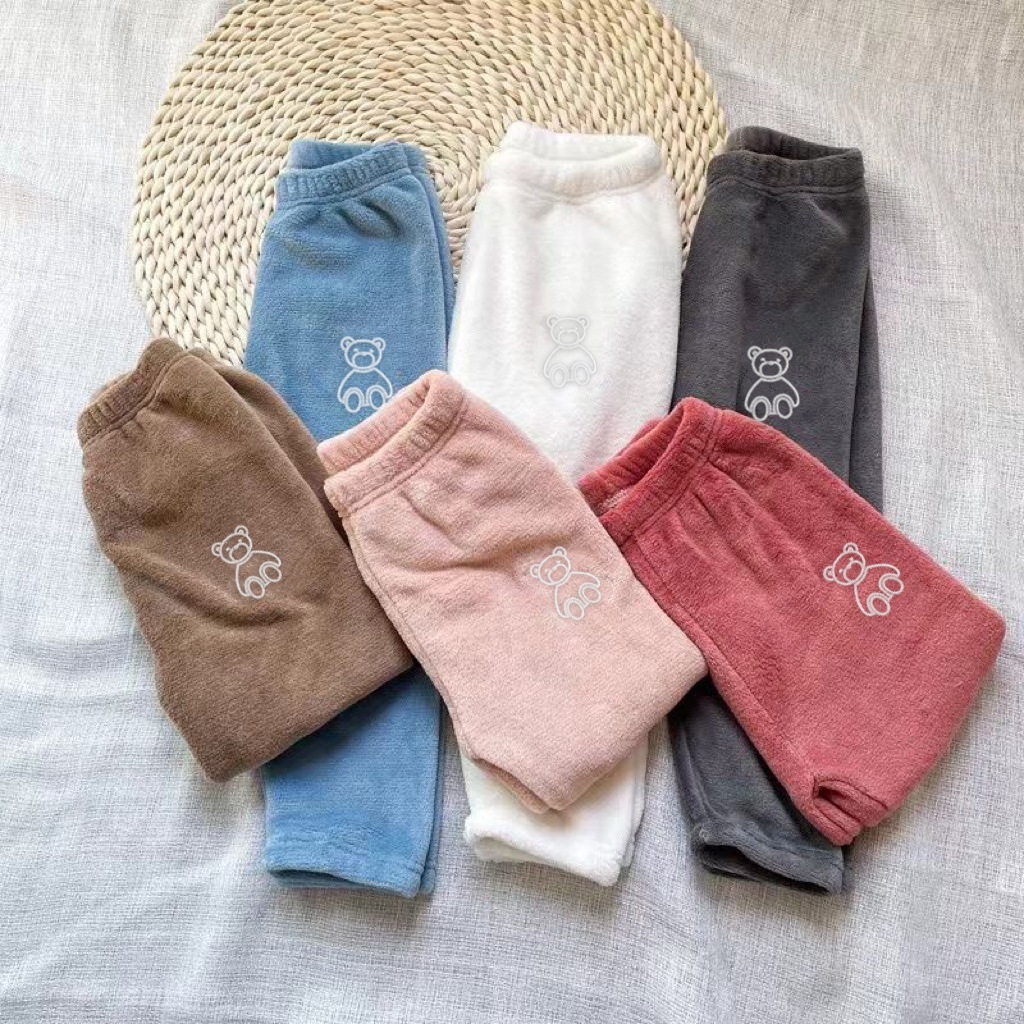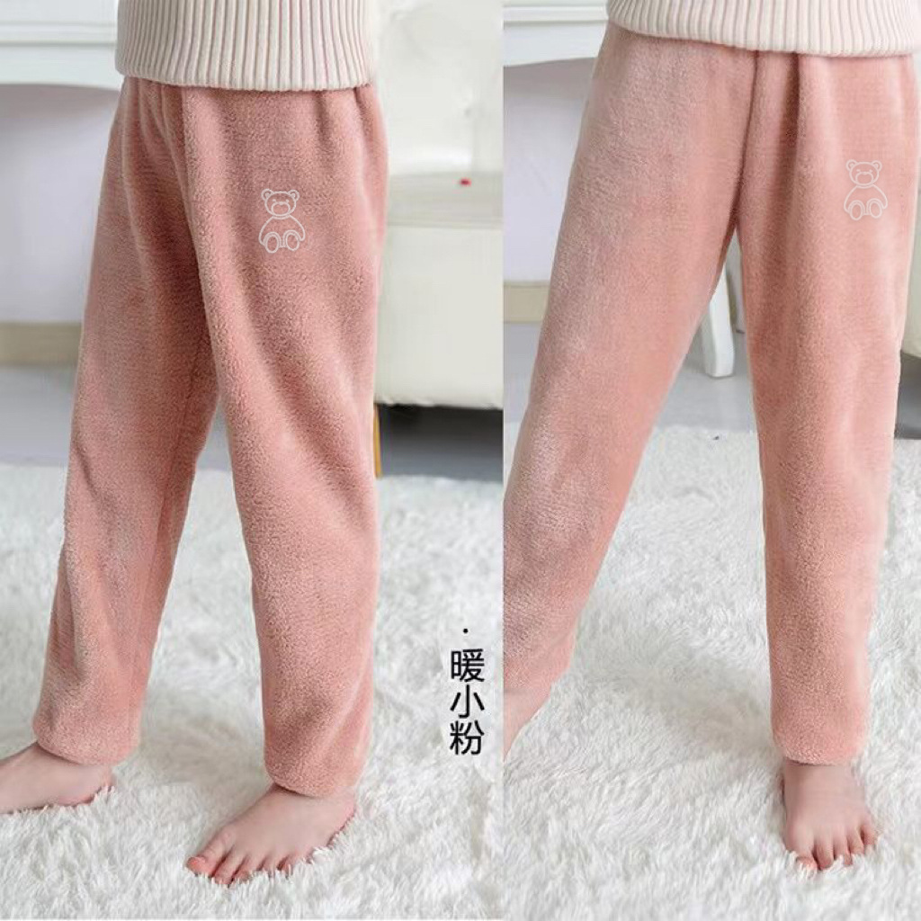 Детские пижамные штаны осенне-зимние теплые штаны из кораллового флиса для средних и больших детей утепленные двусторонние флисовые теплые домашние штаны для мальчиков и девочек
