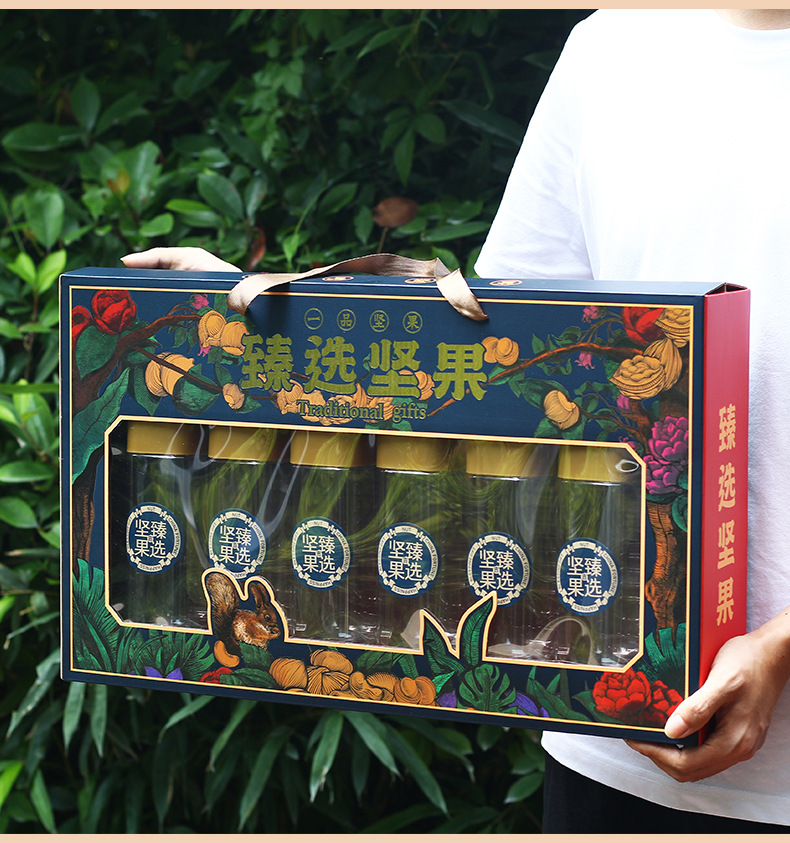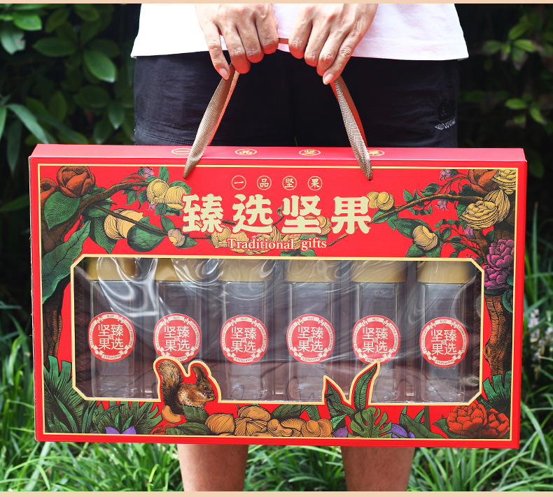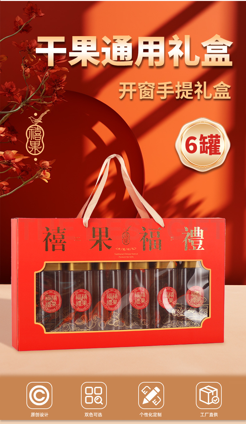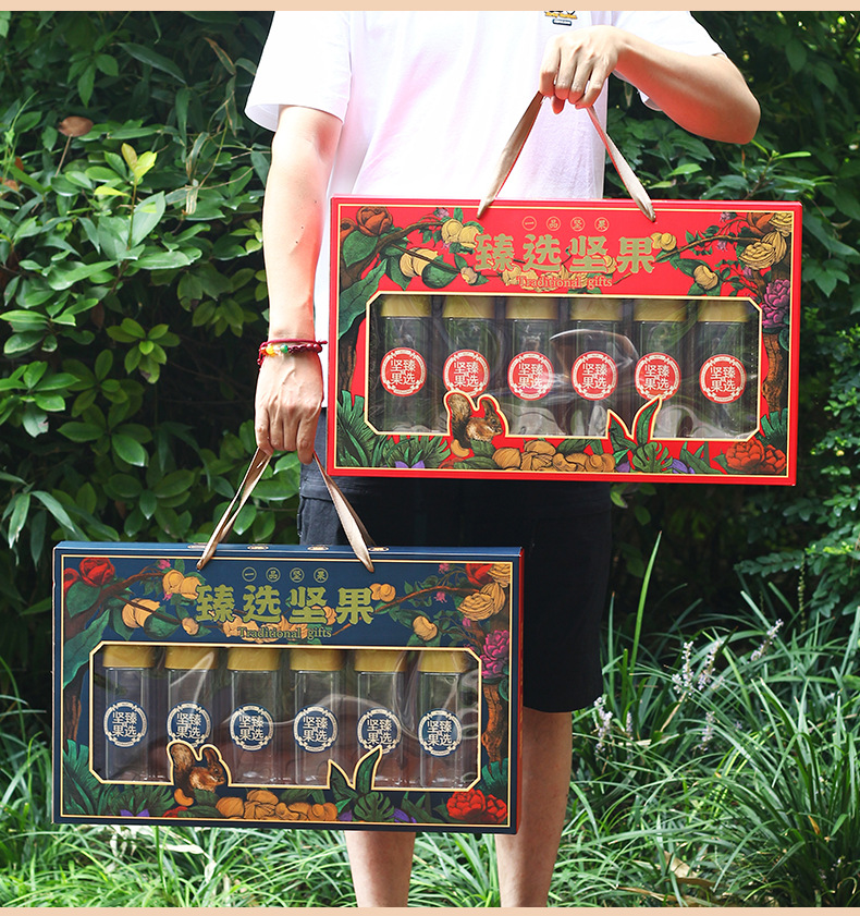 [Счастливое фруктовое благословение 6 банок] коробка для упаковки сухофруктов 6 бутылок консервированных орехов коробка подарочная коробка для грецкого ореха