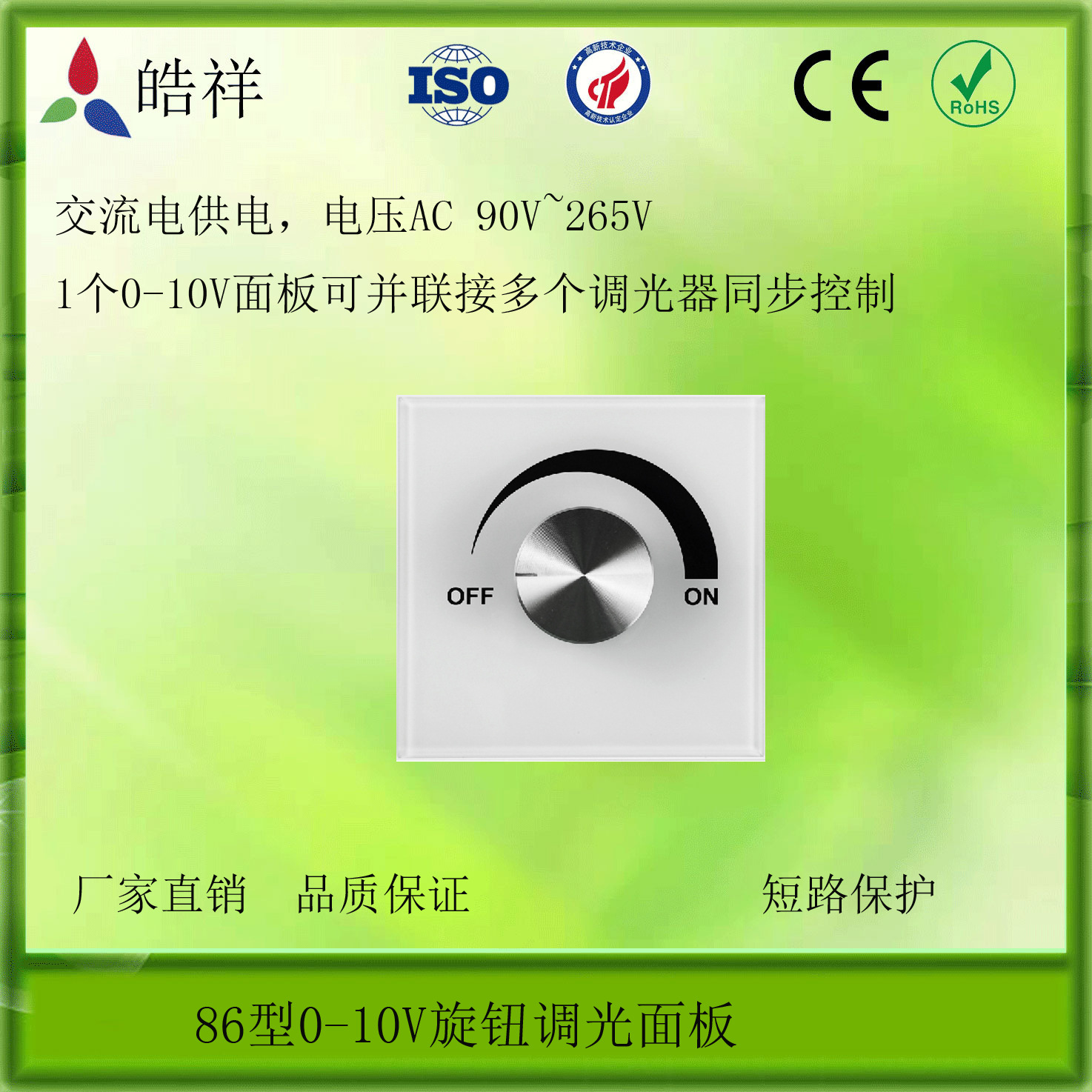 HX-WP86-010D 是一款输出0-10V电压信号的调光面板,兼容各种0-10V恒压控制器、恒流驱动器,通过调光旋钮进行无极调光,控制方式简单直观,适用于商业或家庭标准86型开关插座底盒的安装,可明装或者暗装;具有外观漂亮,安装方便,使用简单等优点.