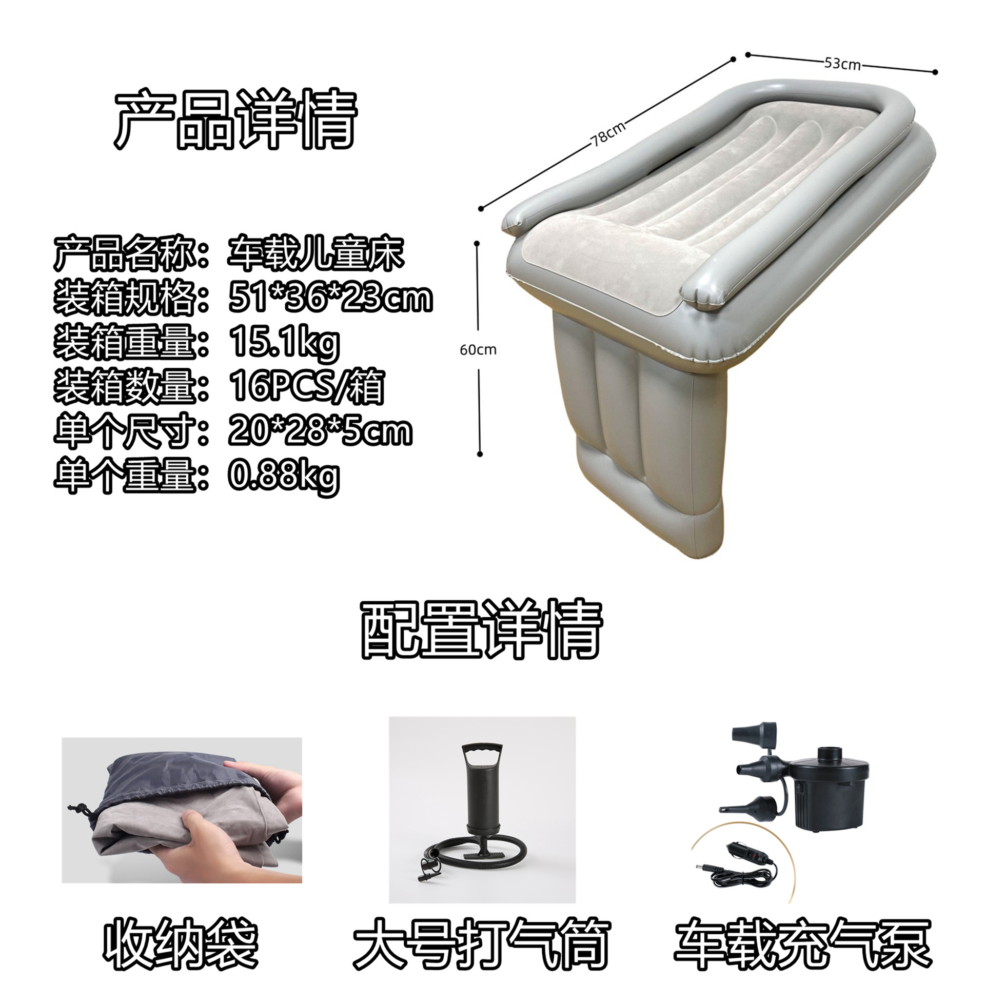 Один продукт (в мешках); С сумкой для хранения; С автомобильным надувным насосом (интерфейс прикуривателя); С большим надувным цилиндром (ручной); Автомобильный надувной насос с сумкой для хранения (интерфейс прикуривателя); Большой надувной цилиндр (ручной) с сумкой для хранения; Ремень безопасности с большой сумкой для хранения