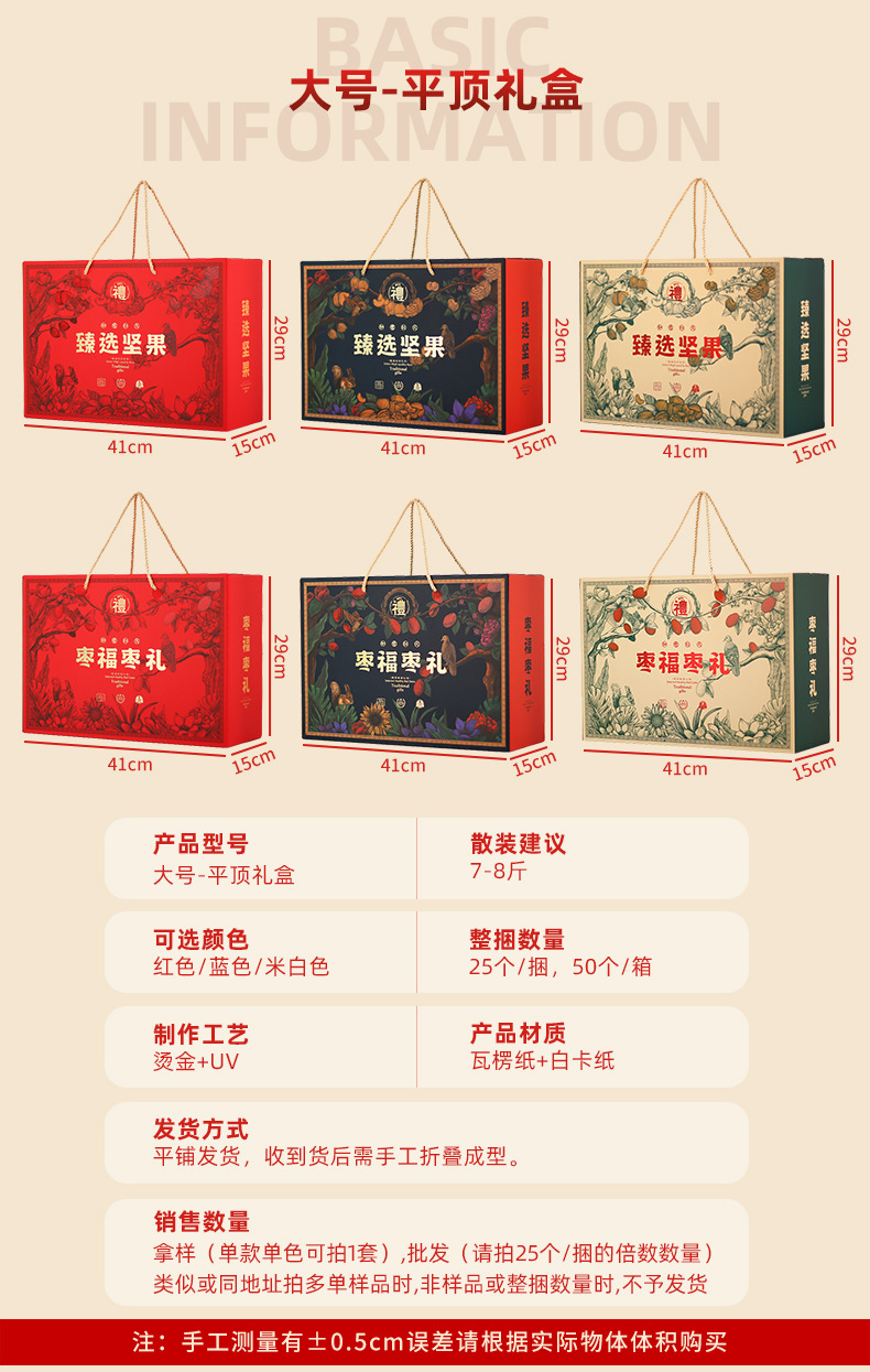 [Большой размер красных фиников и сухофруктов] Синьцзян Красный Финики упаковочная коробка ореховый мармелад Подарочная коробка 6/8 Цзинь большой гофроящик