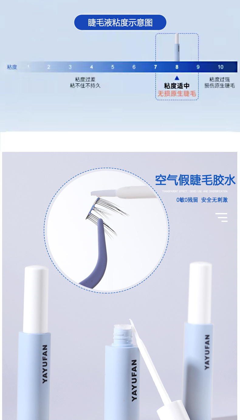Клей для накладных ресниц Yan Yufan YAYUFAN, быстросохнущий, натуральный, длительное формирование, естественная прививка, супер липкий