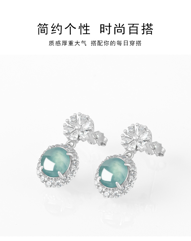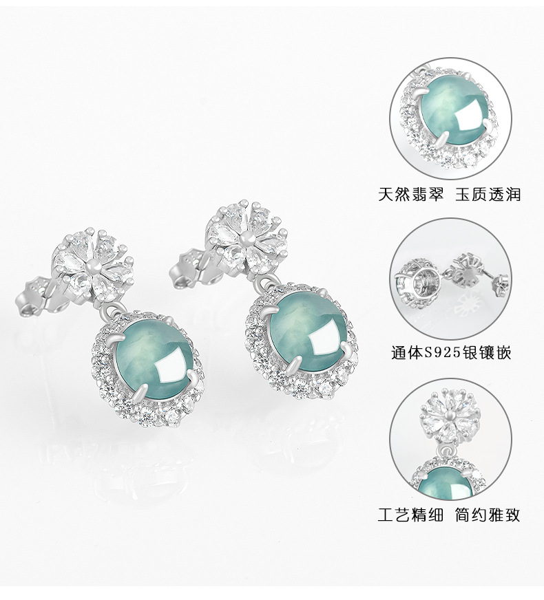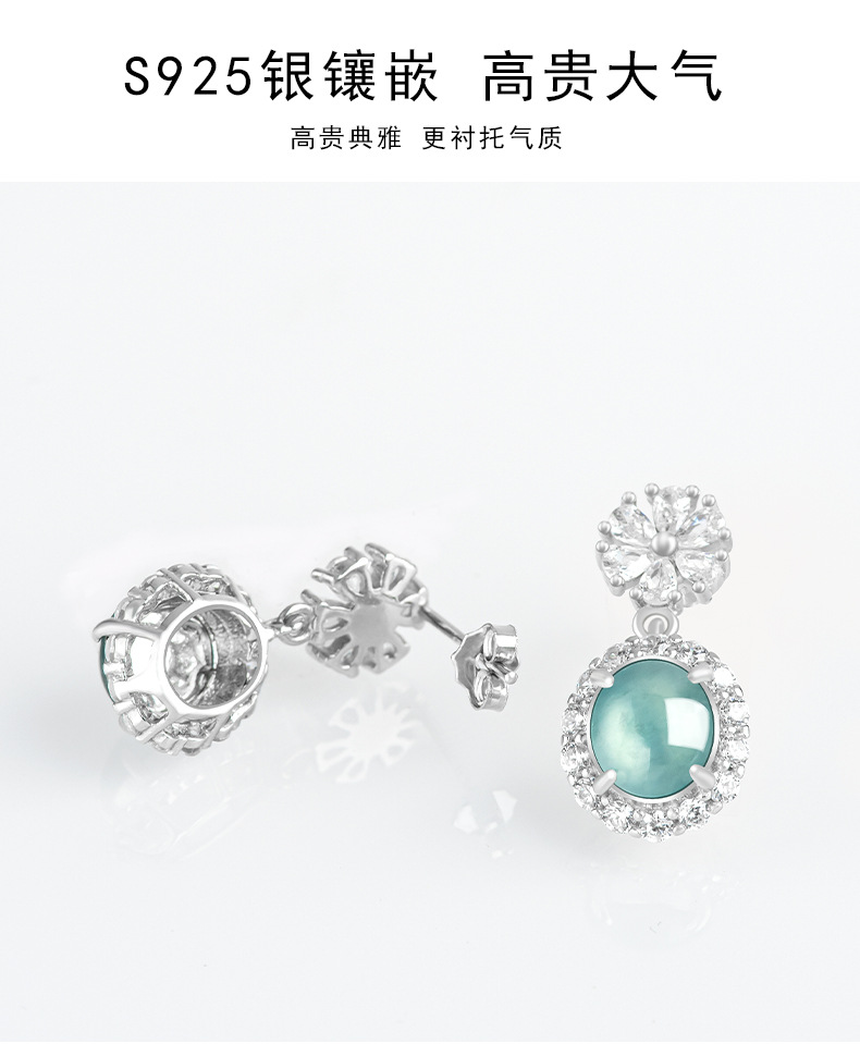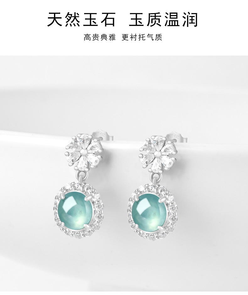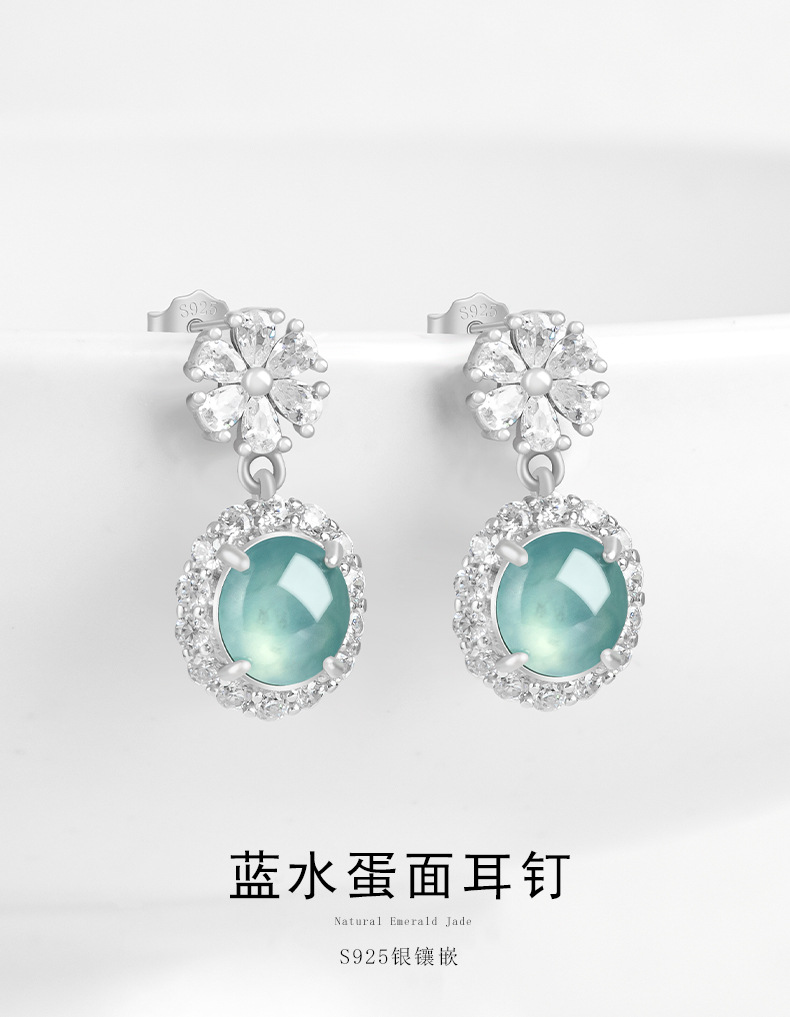 Натуральный товар Изумрудная голубая вода яичная лапша ушные гвозди ледяной нефритовый камень S925 Серебряная инкрустированная мода высокого класса женские серьги оптом