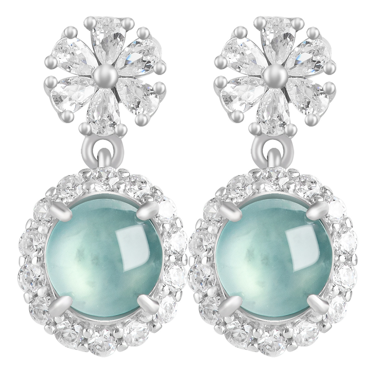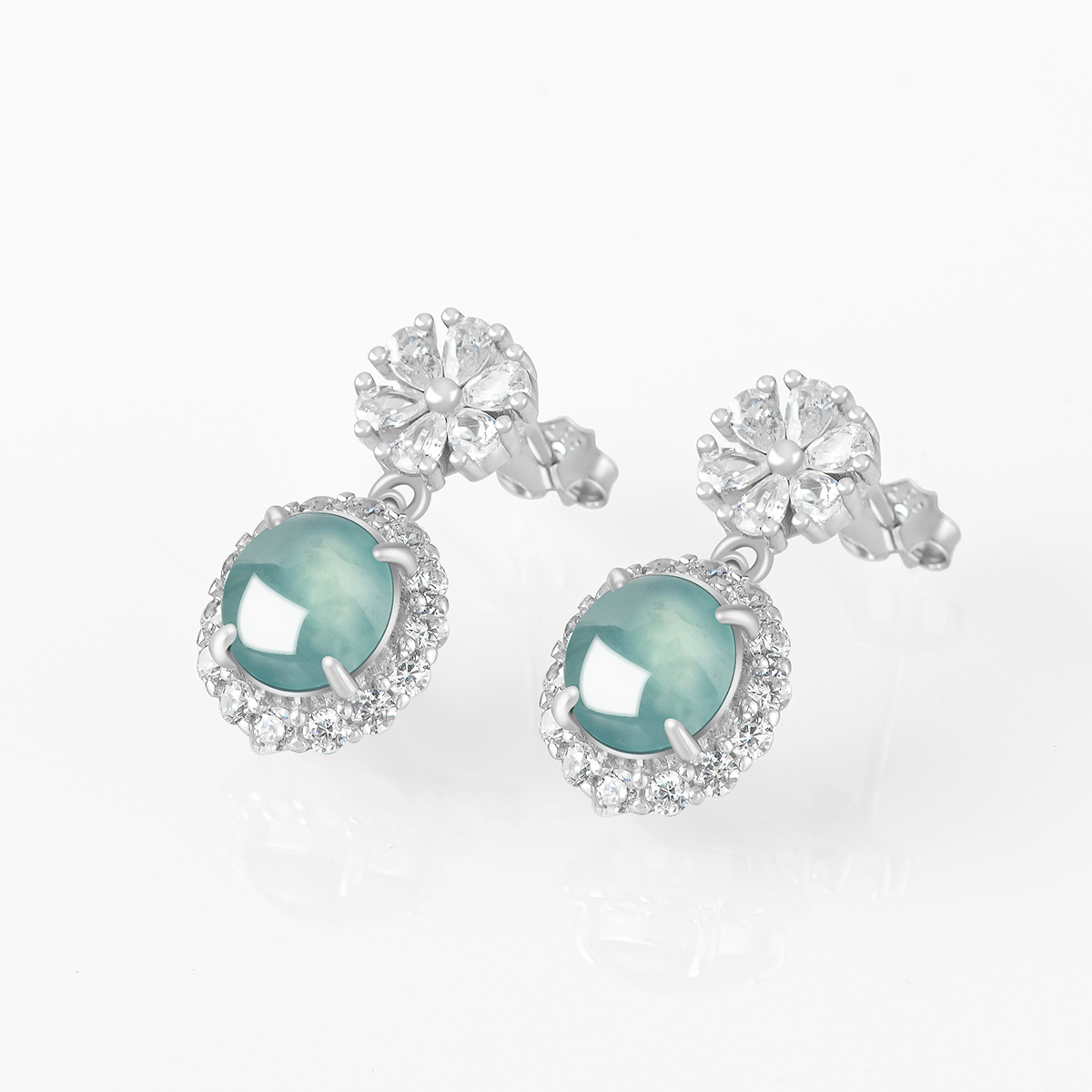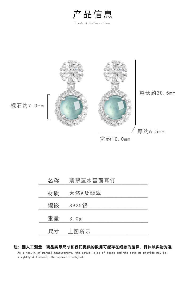 Натуральный товар Изумрудная голубая вода яичная лапша ушные гвозди ледяной нефритовый камень S925 Серебряная инкрустированная мода высокого класса женские серьги оптом