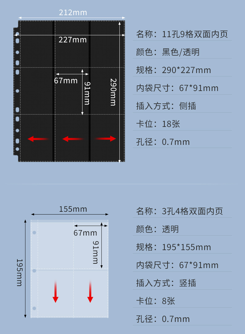 Спот 11 отверстий черный 9 дворцовый карточка страница прозрачная утолщение страницы