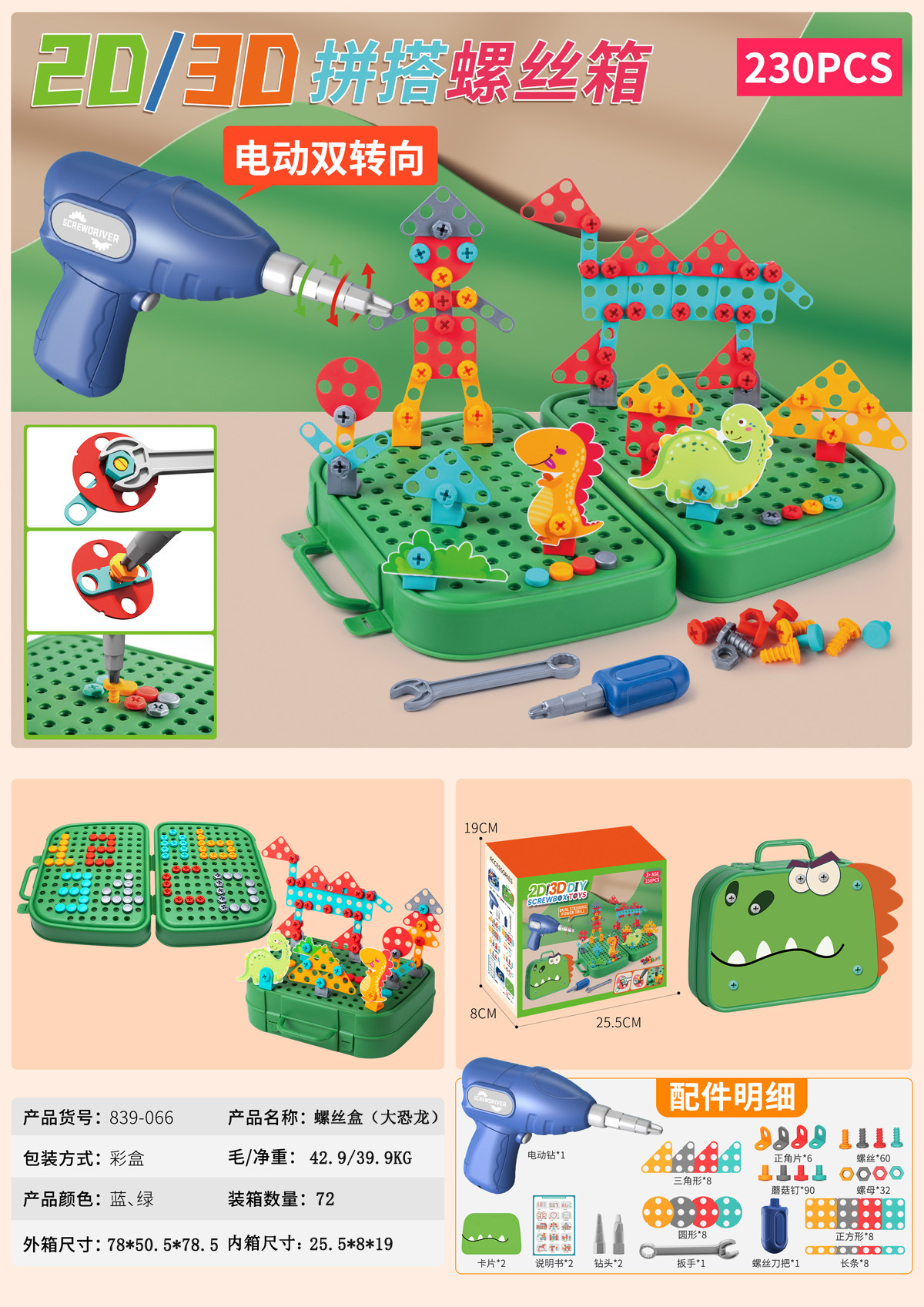 [Астронавт] Набор инструментов 230pcs (с электрической дрели); [Астронавт] Инструментарий 450pcs (с электрической дрели); [Большой динозавр] ящик для инструментов 230pcs (с электрической дрели); [Большой динозавр] инструментарий 450pcs (с электрической дрели); [Автомобиль] Инструментарий 230pcs (с электрической дрели); [Автомобиль] Инструментарий 450pcs (с электрической дрели); Цветная коробка [один астронавт] набор инструментов 230pcs (всего 72 комплекта); Цветная коробка [один большой динозавр] набор инструментов 230pcs (всего 72 комплекта)