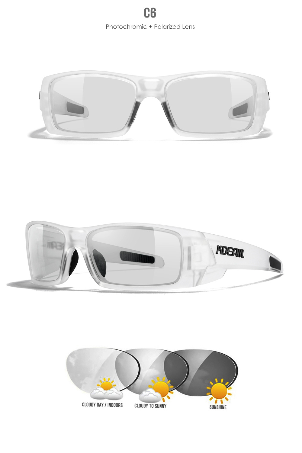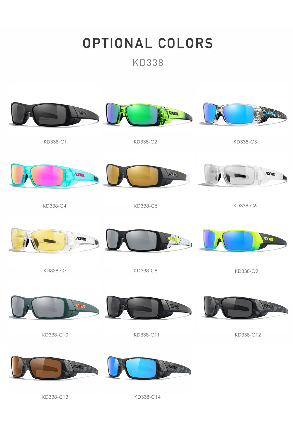 KDEAM 2024 новые уличные спортивные поляризованные солнцезащитные очки Квадратные универсальные защитные очки красочные солнцезащитные очки KD338
