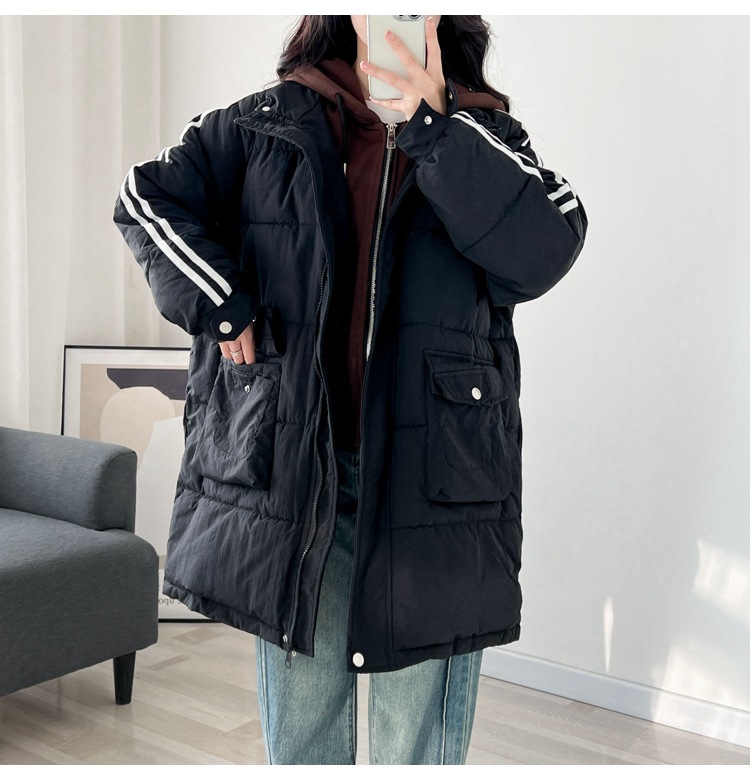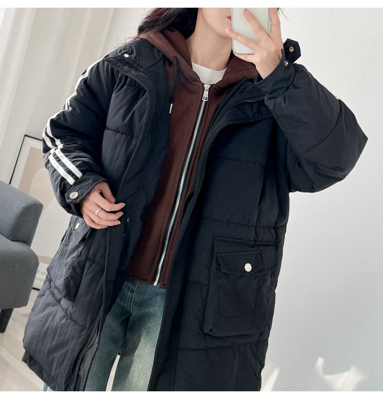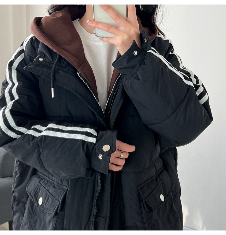 3355 хлопковая подкладка с капюшоном, искусственная двухсекционная женская одежда контрастных цветов больших размеров, особый корейский стиль, толстый мм 300 кг, пригодное для носки пальто в Корейском стиле