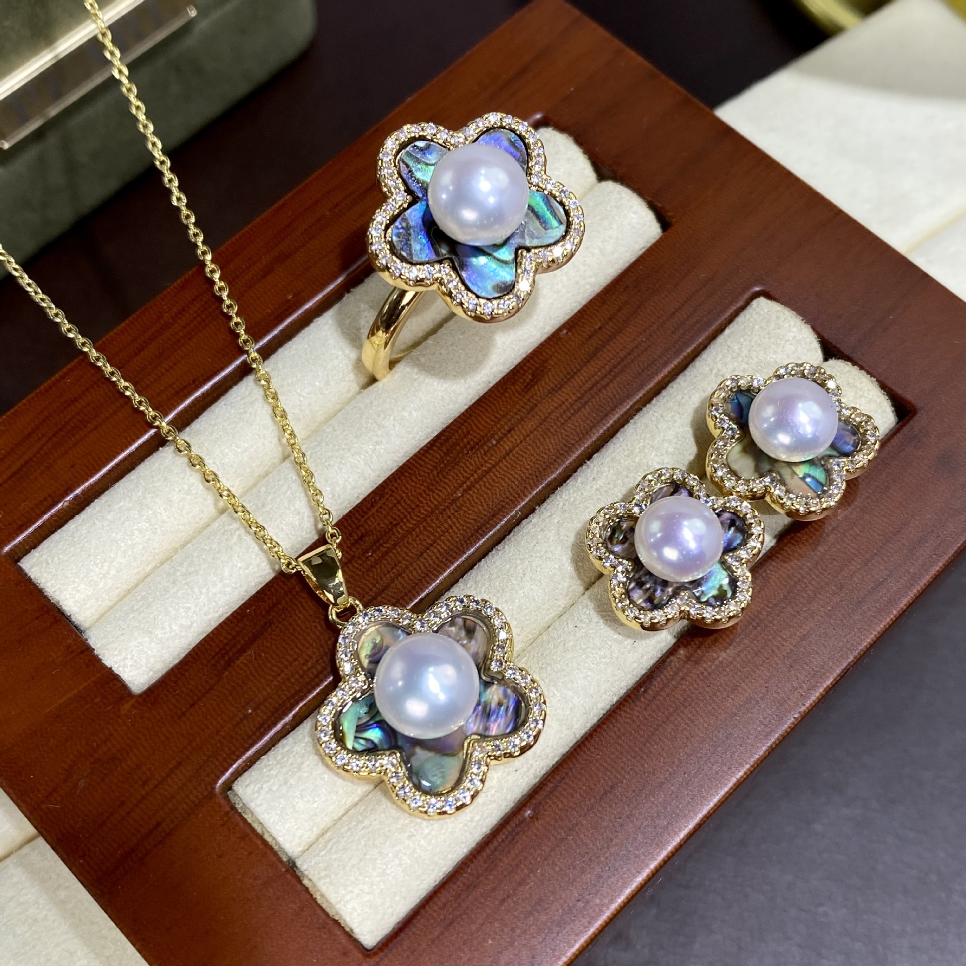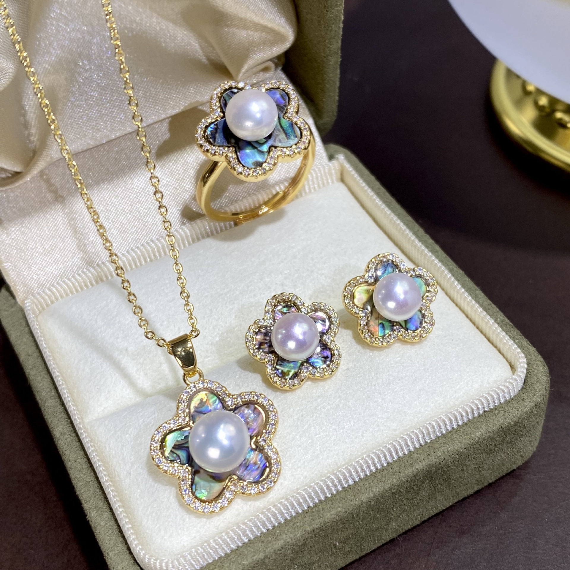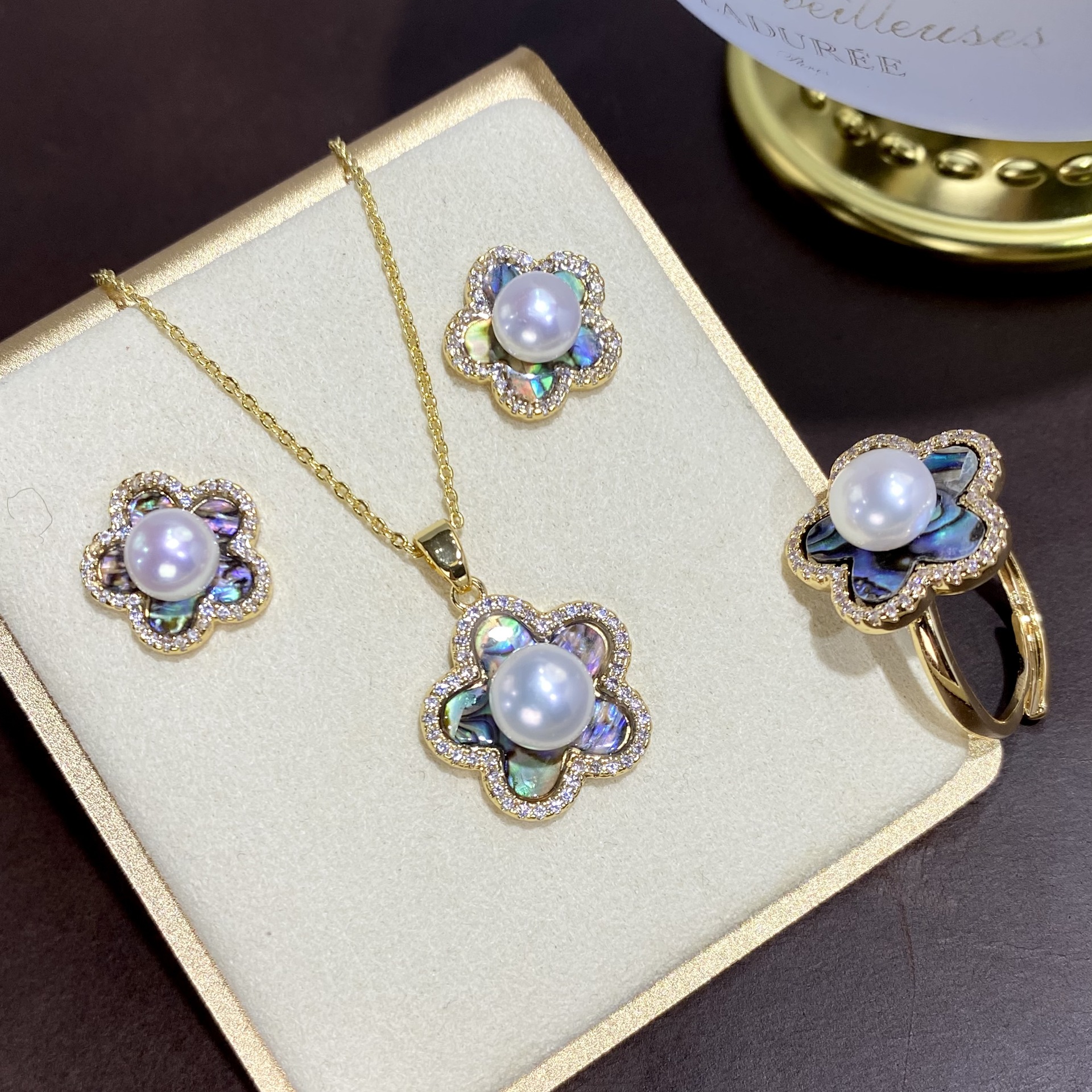 Встряхивая натуральная пресноводная жемчужная раковина морского ушка набор из трех частей женское кольцо серьги-серьги подвеска s925