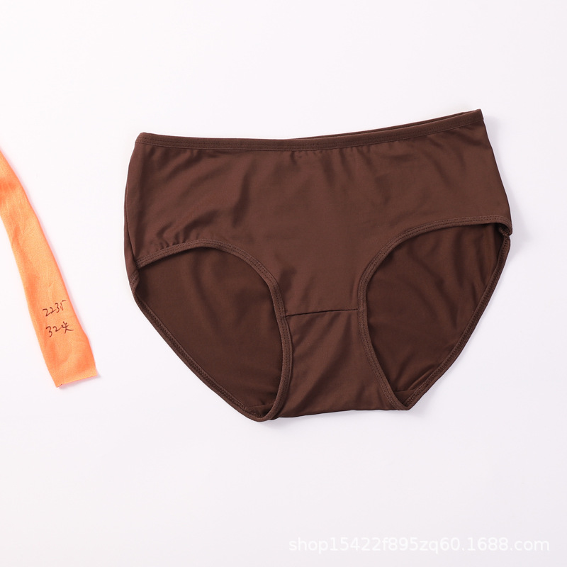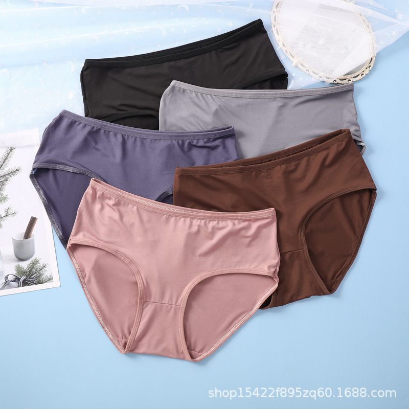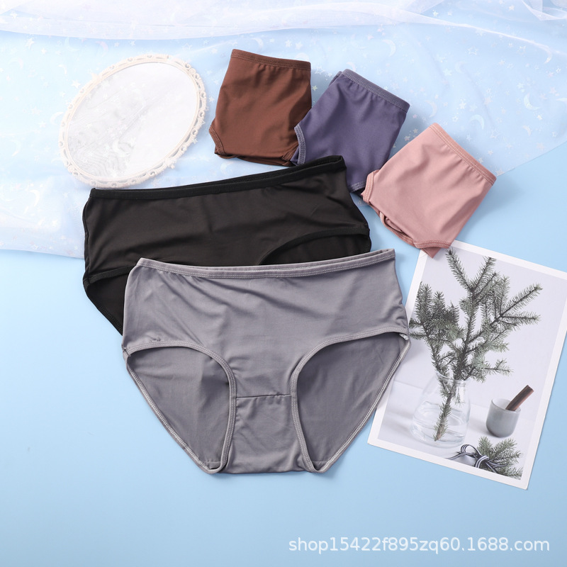Трансграничное мягкое молочное шелковое женское нижнее белье со средней талией для девочек, сексуальные эластичные однотонные трусы больших размеров