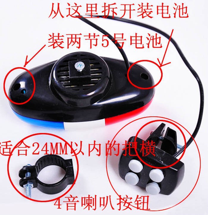 6个LED灯泡随着铃声响起一并闪烁,尤其在光线不充足的地方起到一定的警示作用,安全系数大大提升!每箱100PCS建议整箱购买