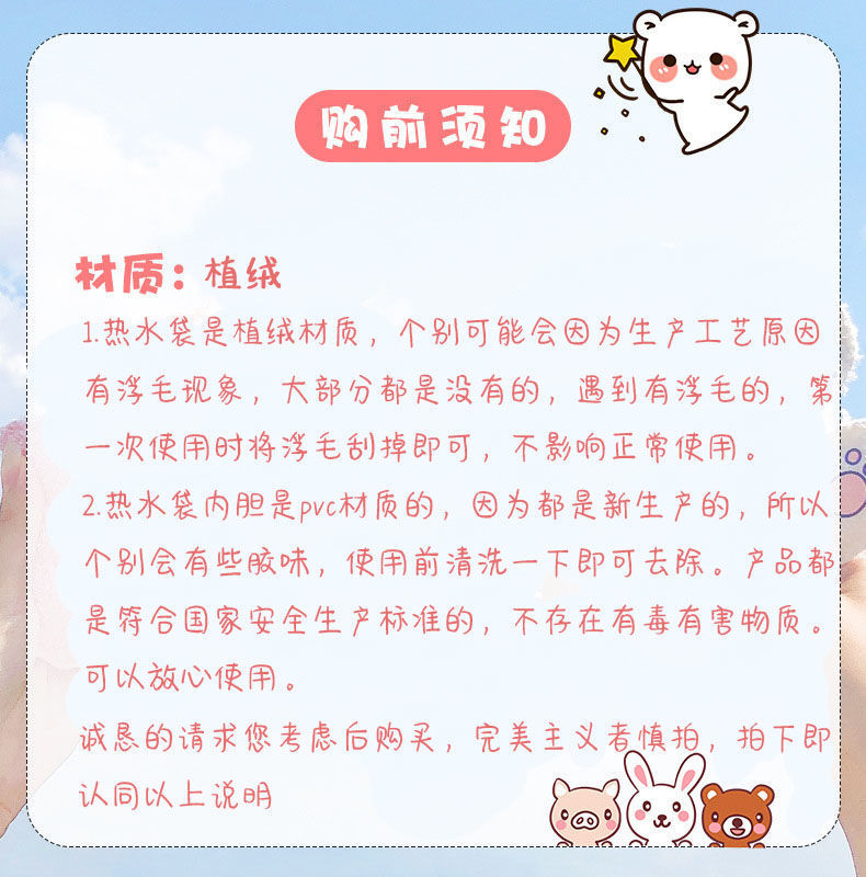 Грелка с наполнением водой, плюшевый грелка для ног, грелка для рук, грелка для живота, взрывобезопасная, съемная и моющаяся, двойного назначения для горячего и холодного применения.