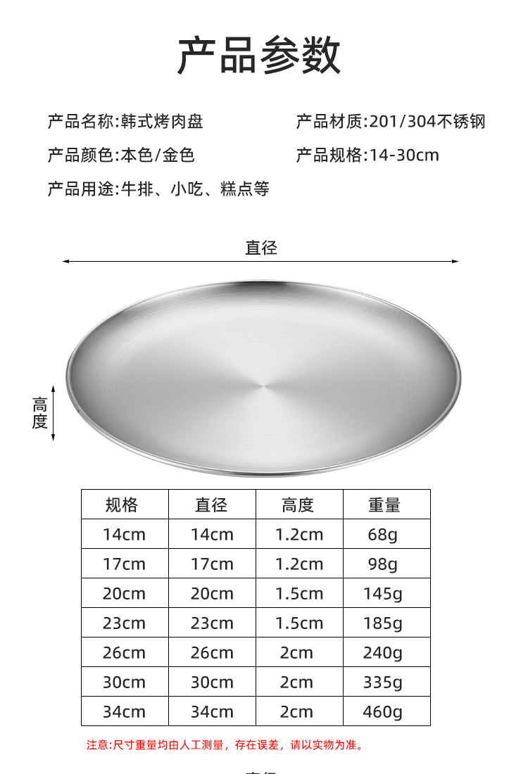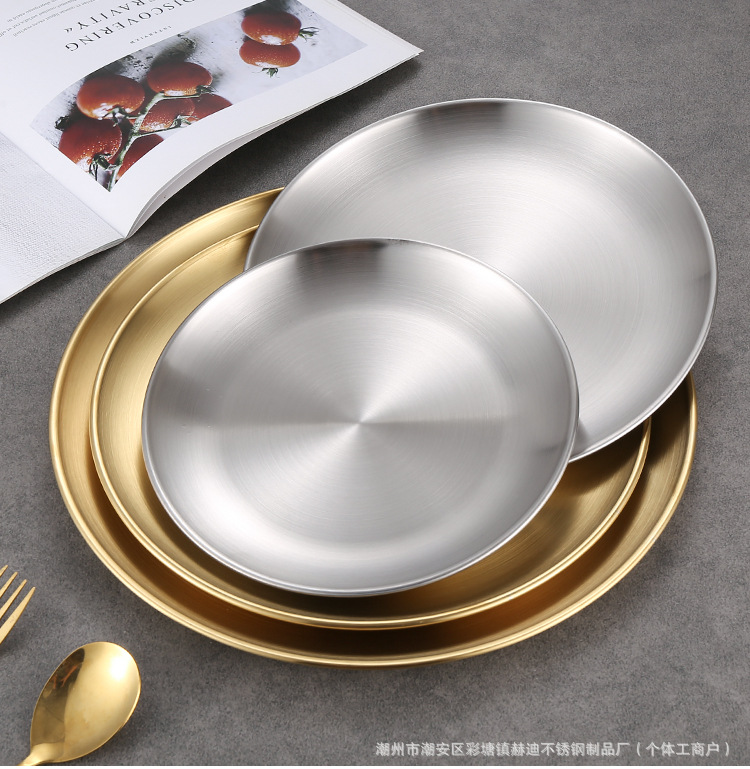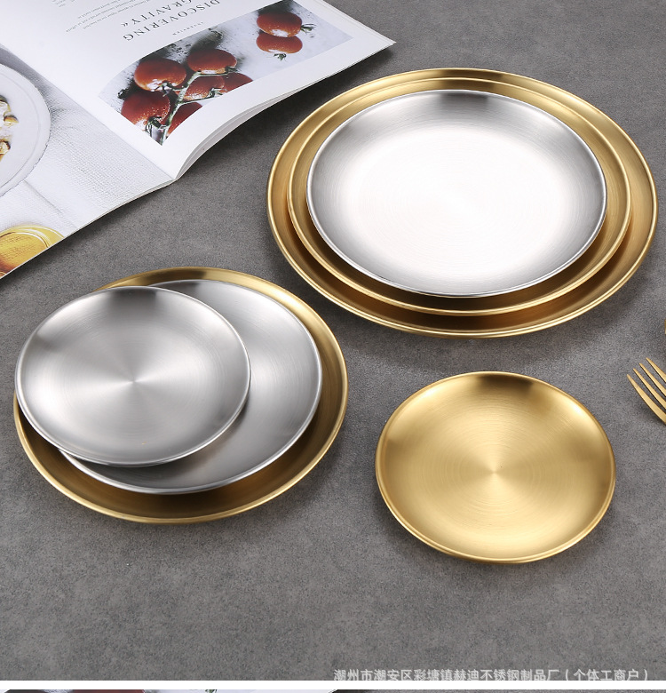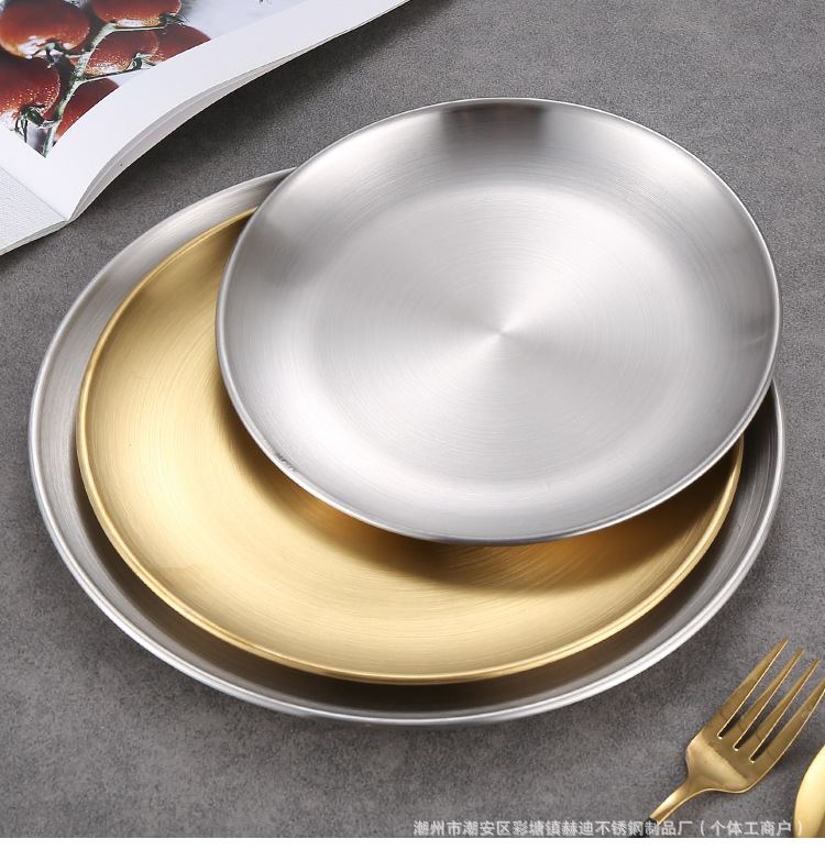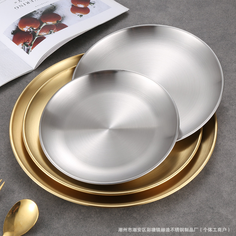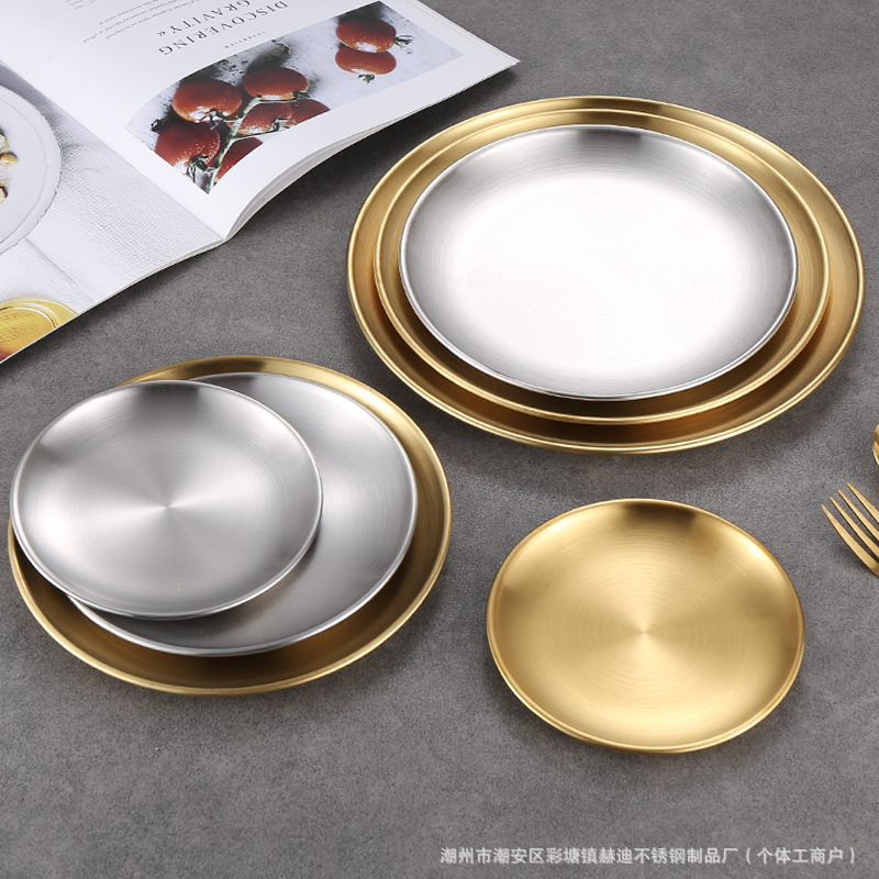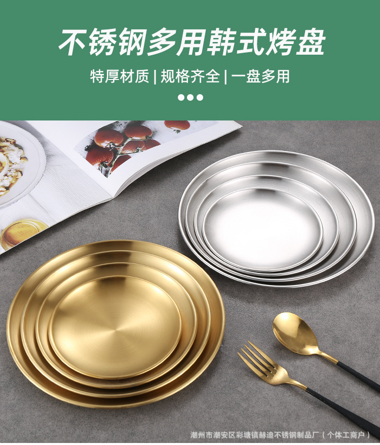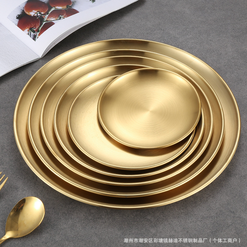 304 корейский диск из нержавеющей стали Золотая тарелка для барбекю тарелка мелкий поднос костяная тарелка Западная тарелка Коммерческая оптовая продажа