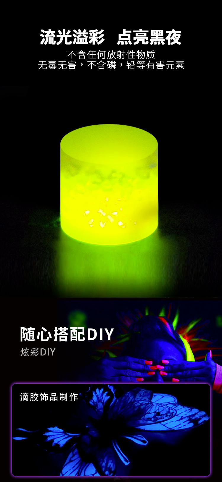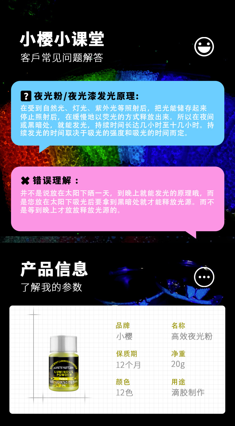 Производитель светящегося в темноте порошка для трансграничной торговли: сверхъяркий, долговечный, для DIY-творчества, кристаллической смолы, литья под давлением, ультратонкий флуоресцентный порошок, глиттер-порошок