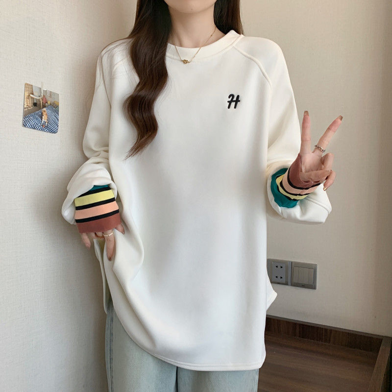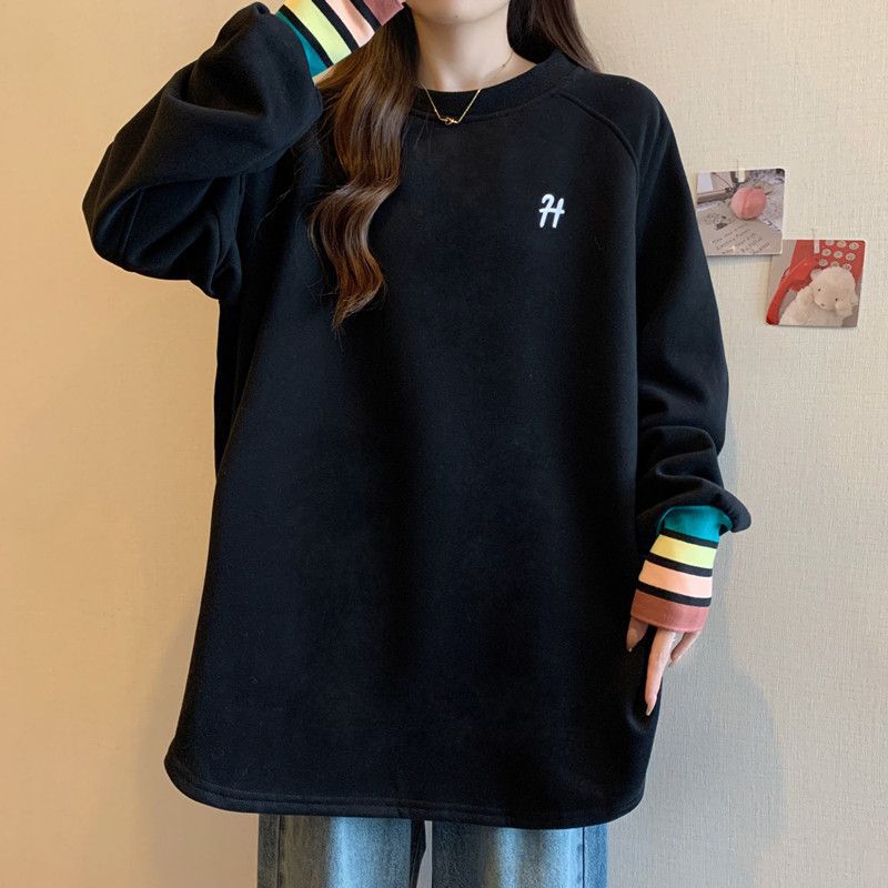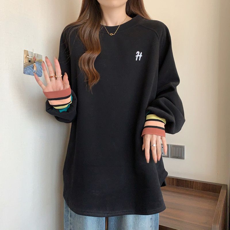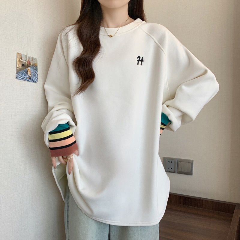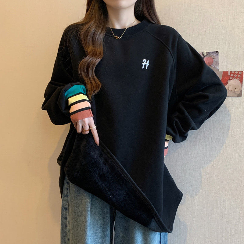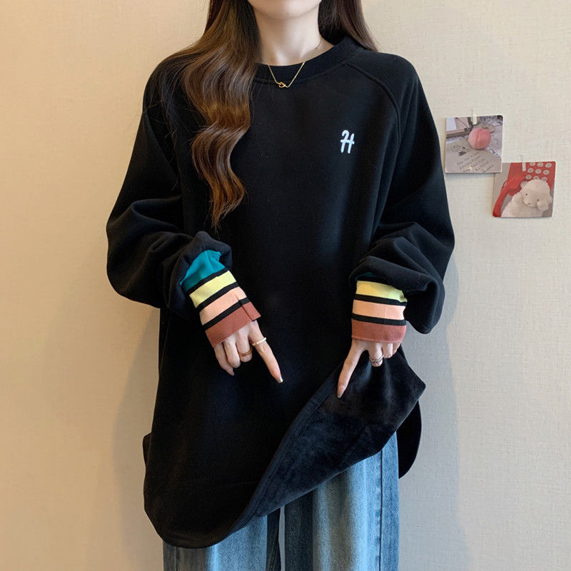 Бархатная утолщенная рубашка большого размера с наборным дном для женщин, Осень-зима, новый свободный облегающий теплый топ с длинными рукавами для женщин на флисовой подкладке