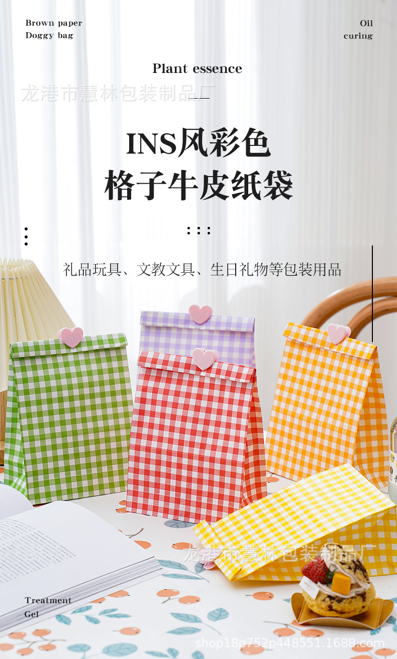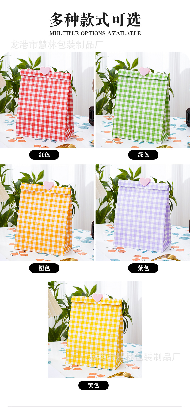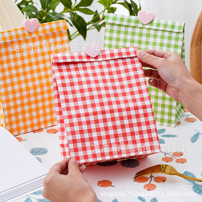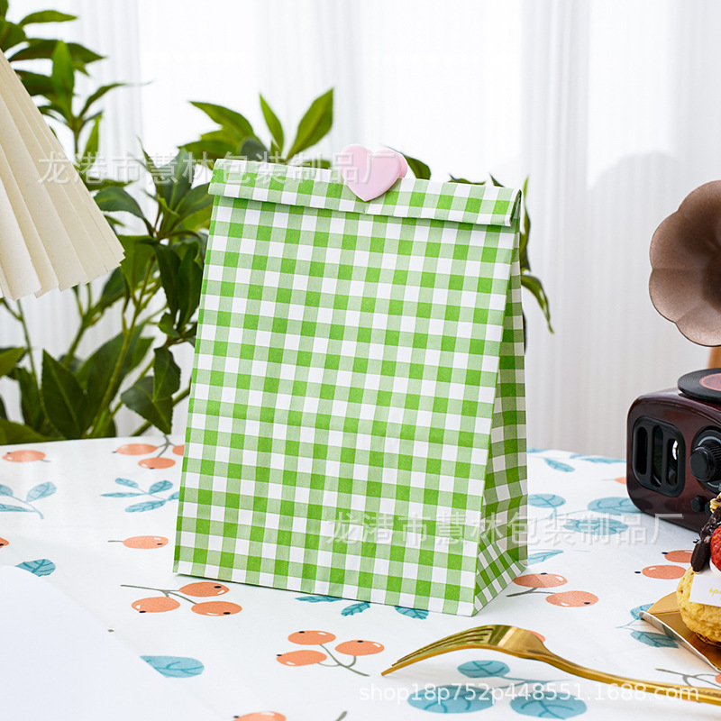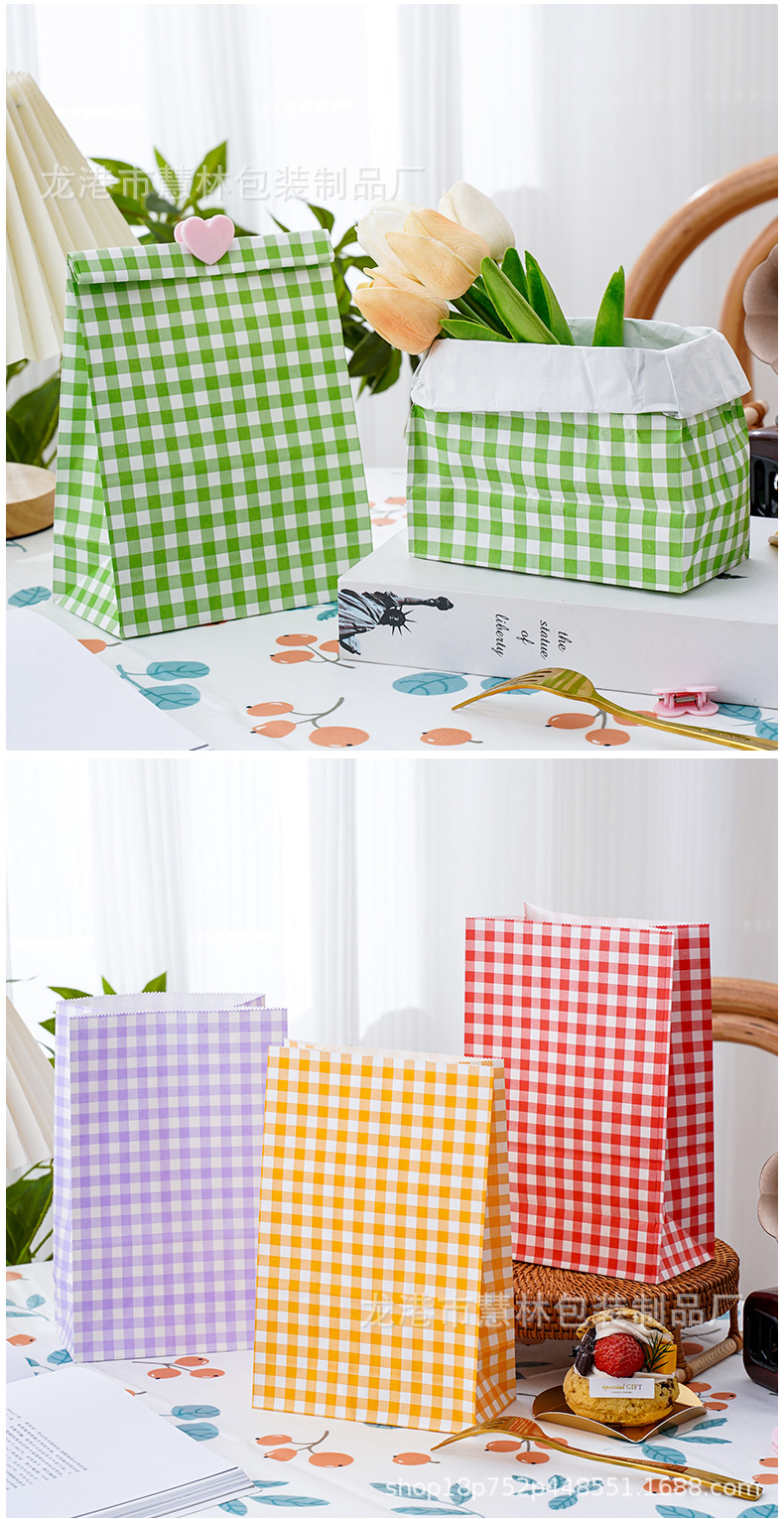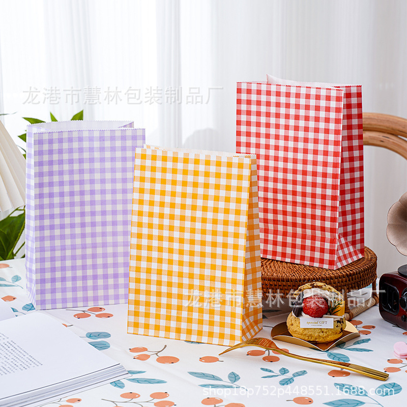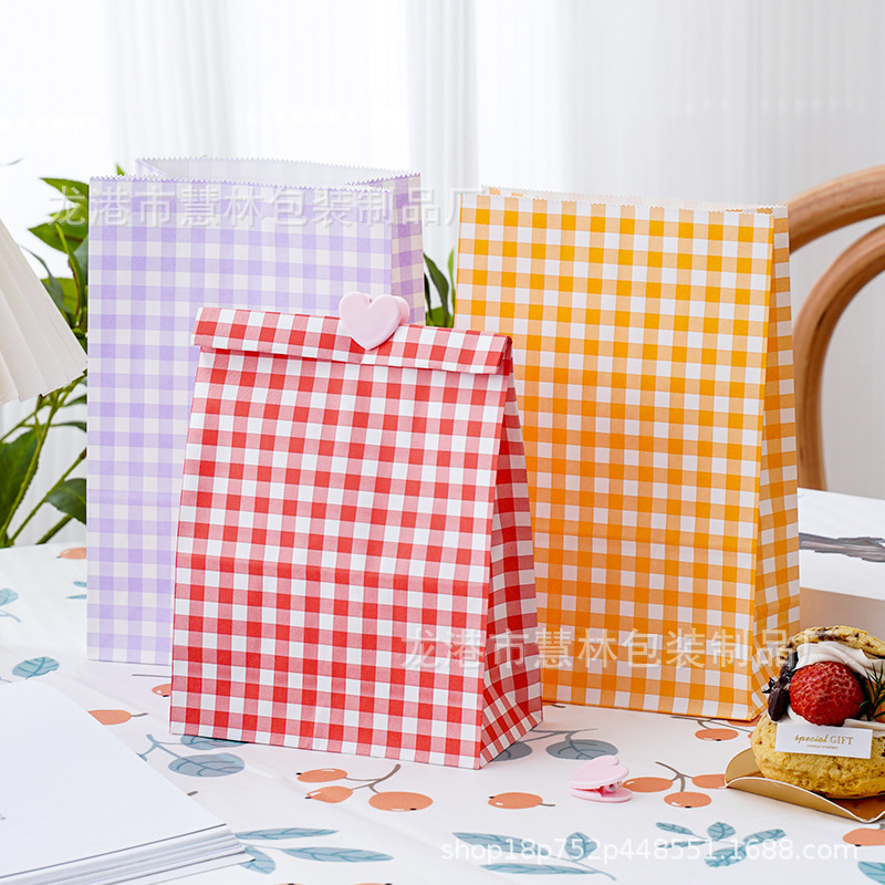 Готовые подарочные пакеты из крафт-бумаги в клетку с квадратным дном для детского сада, для хранения закусок и конфет, подарочные пакеты ко Дню защиты детей