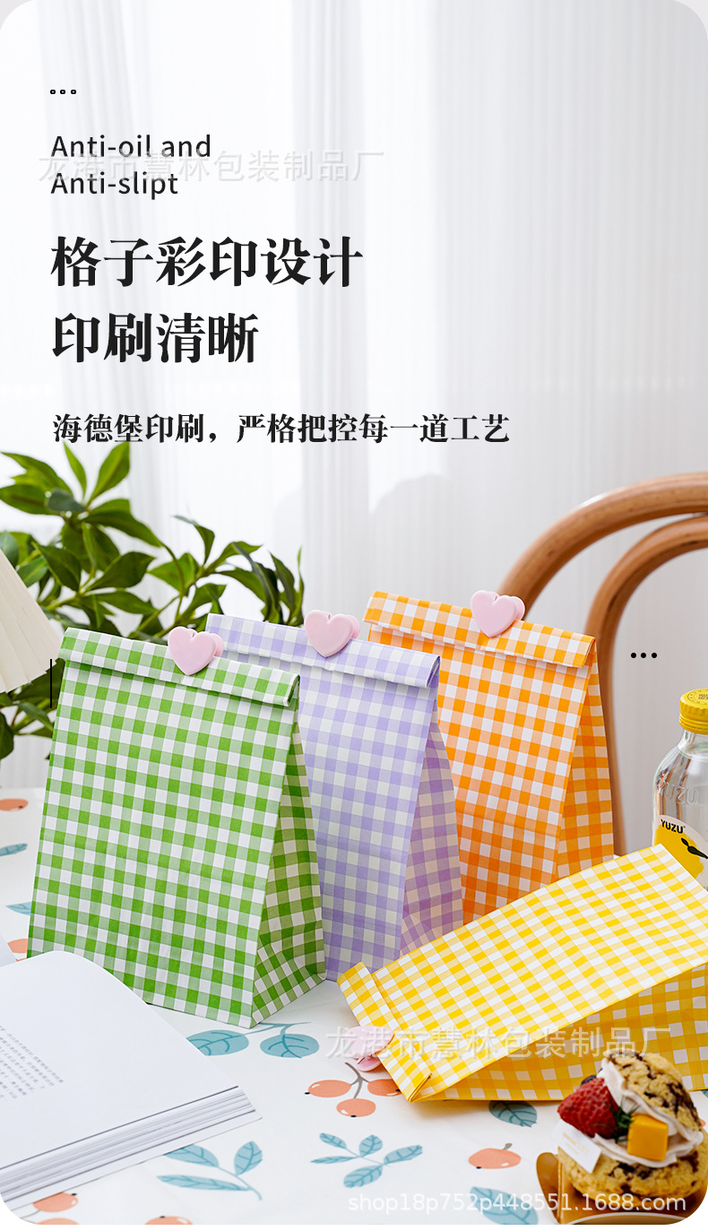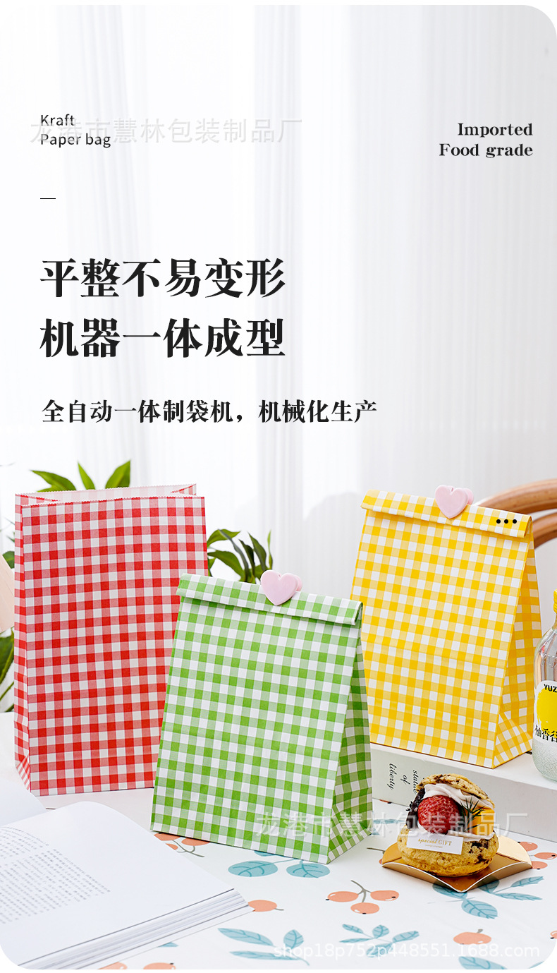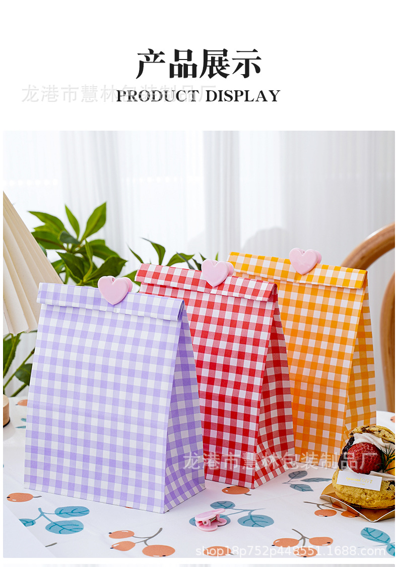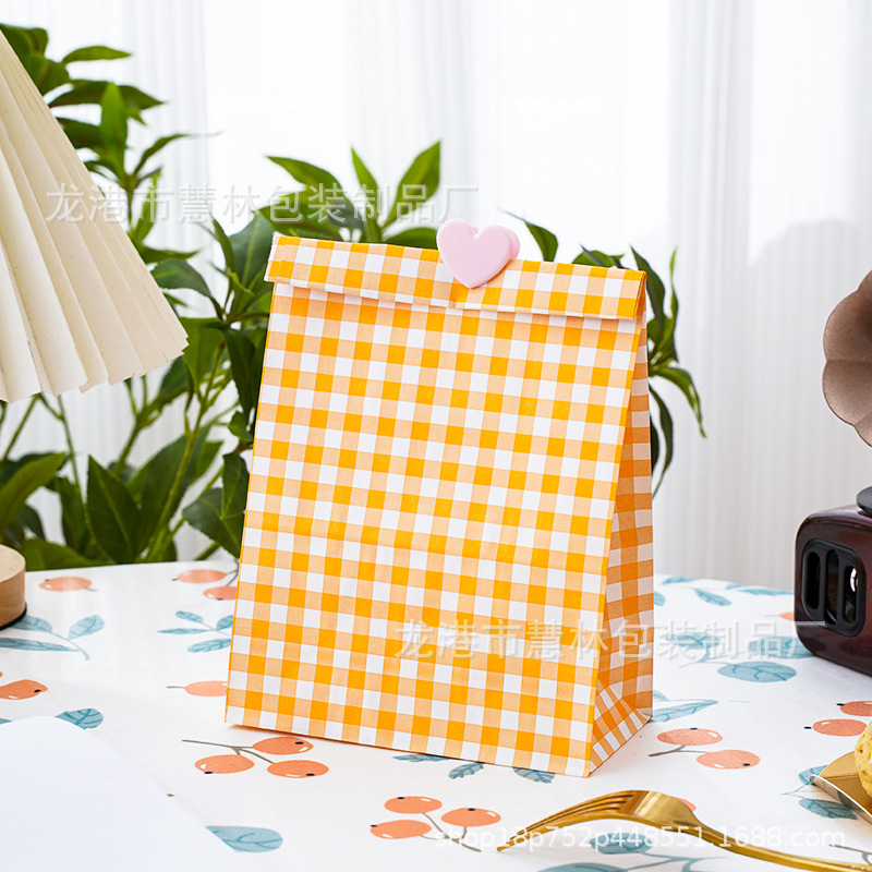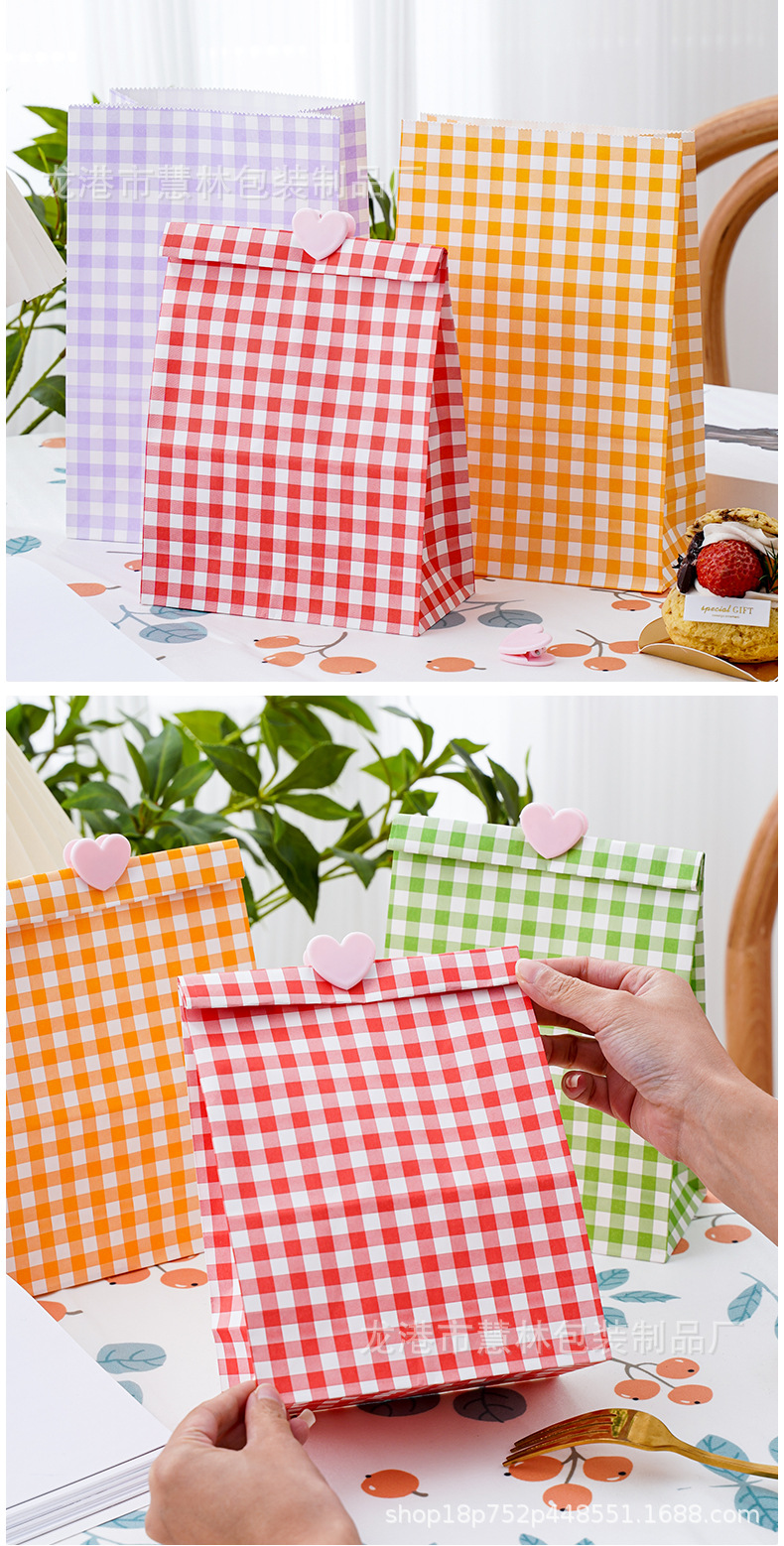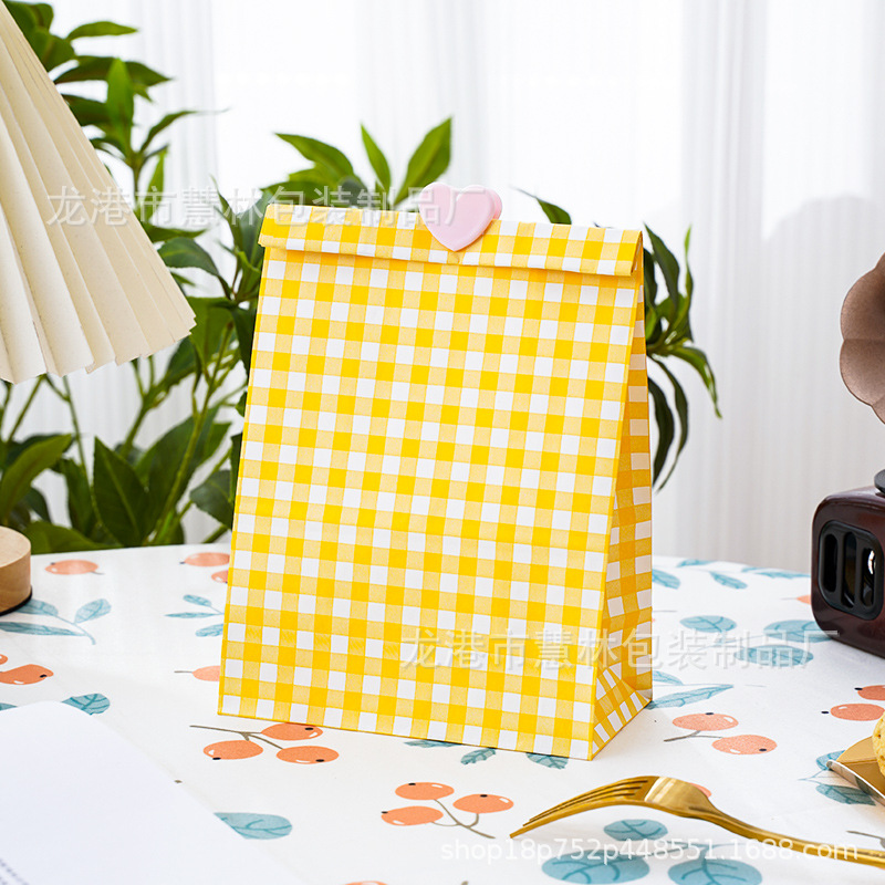 Готовые подарочные пакеты из крафт-бумаги в клетку с квадратным дном для детского сада, для хранения закусок и конфет, подарочные пакеты ко Дню защиты детей
