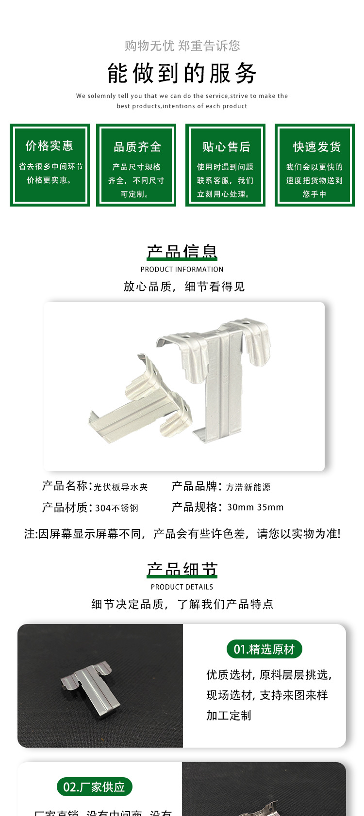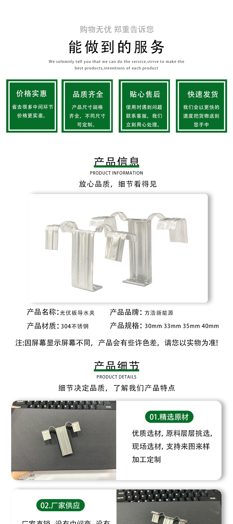 Дренажный направитель, водоотвод для солнечных панелей, универсальный зажим, нержавеющий фиксатор для фотоэлектрических панелей