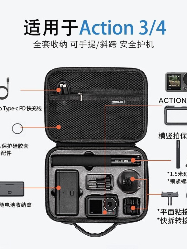 名称:适用DJI大疆Action3/4收纳包便携osmo灵眸代运动相机全能套装配件