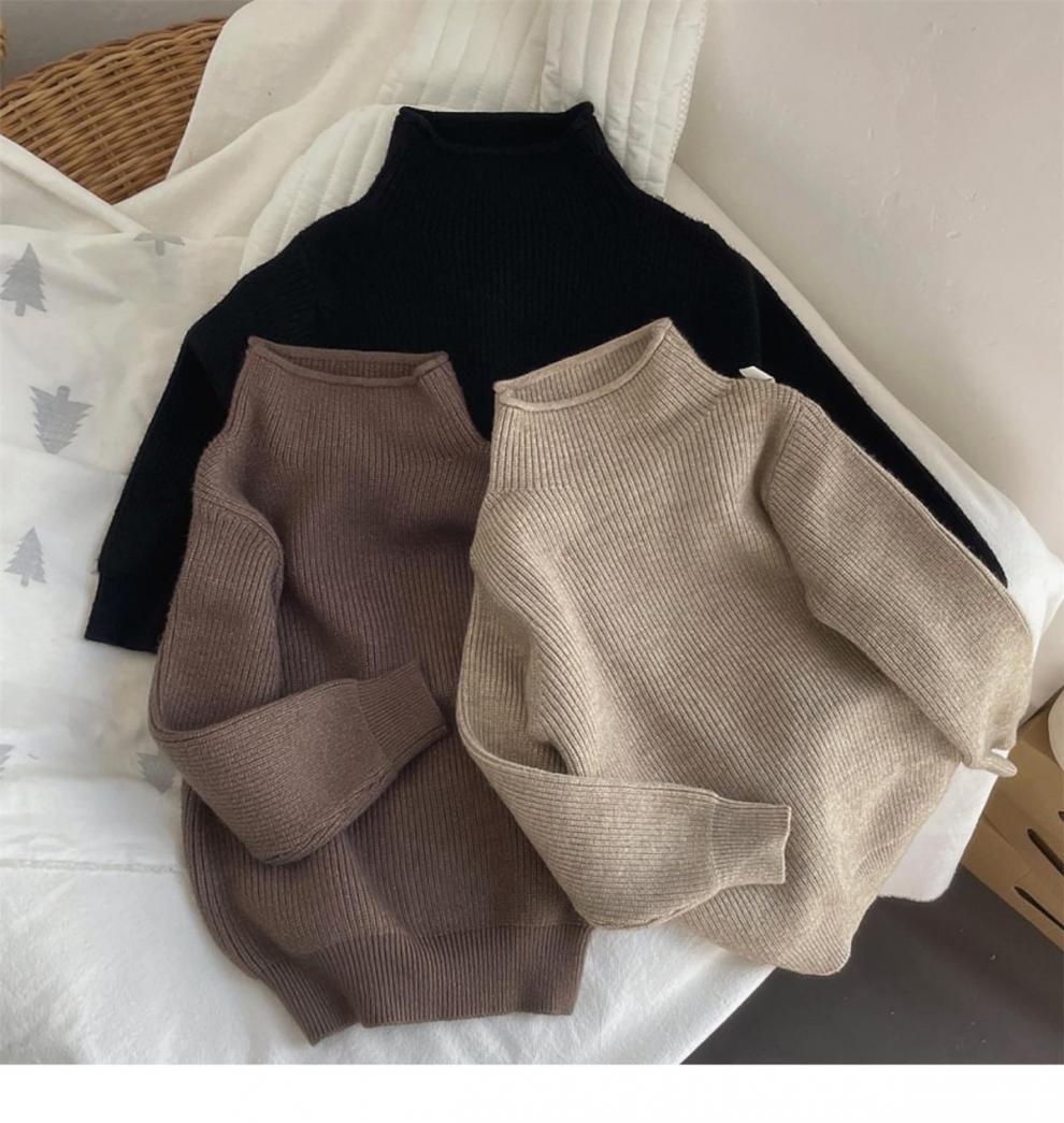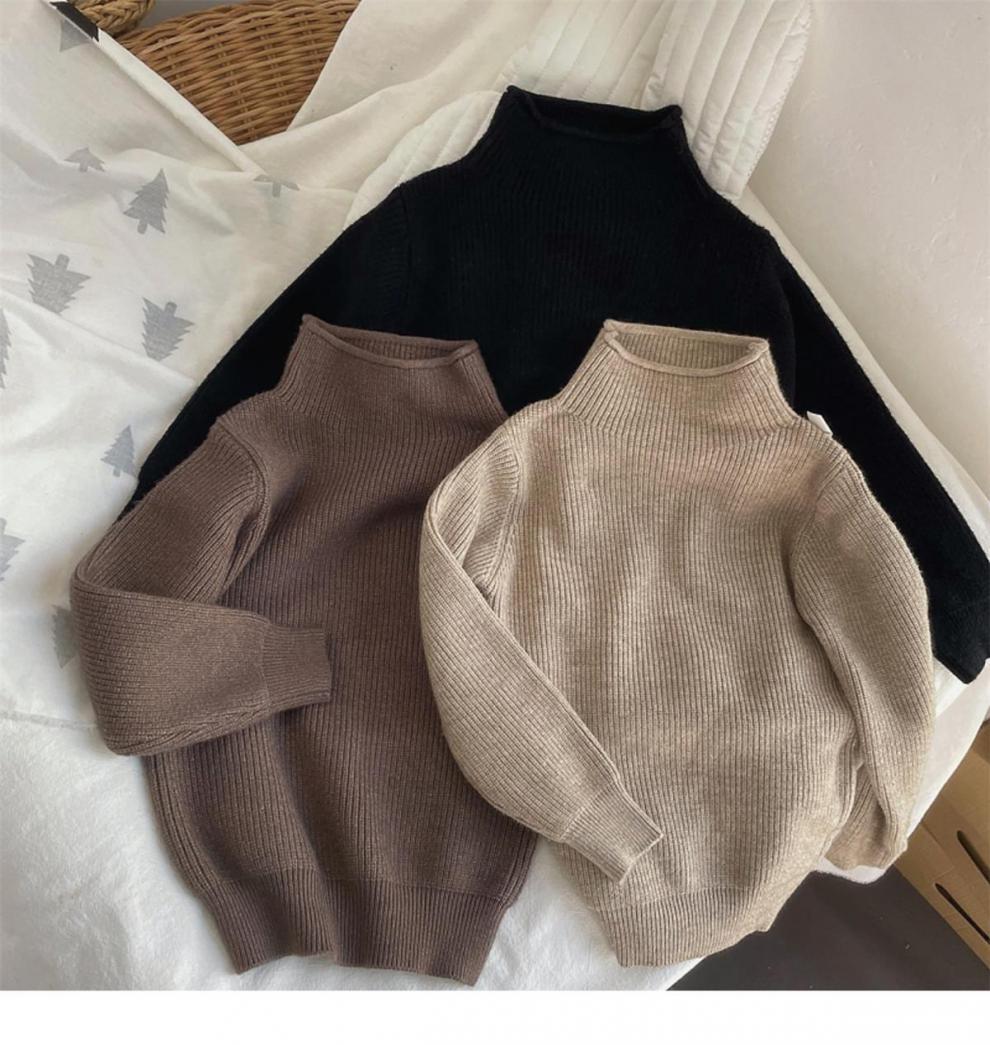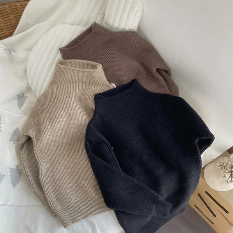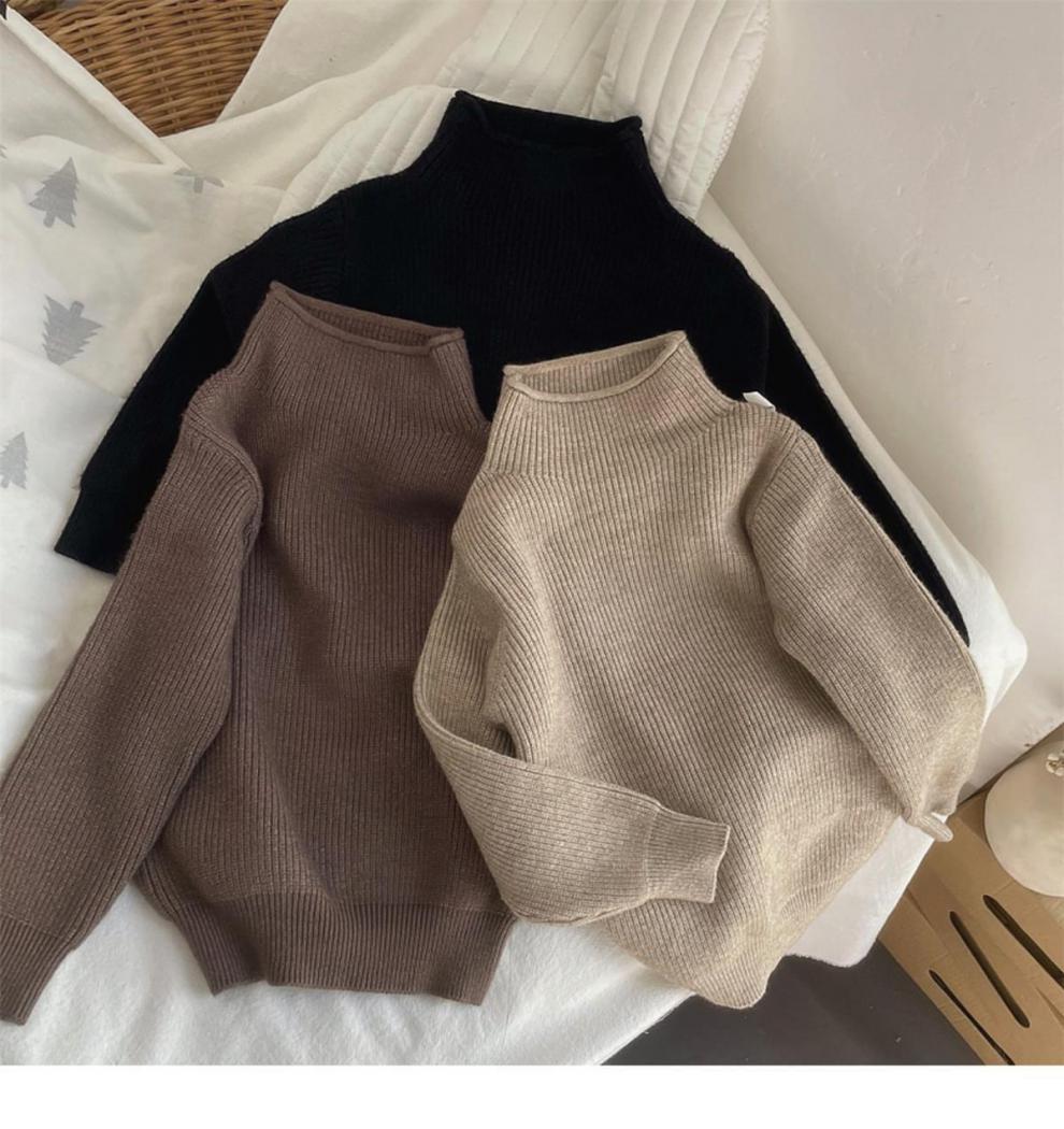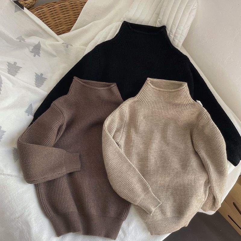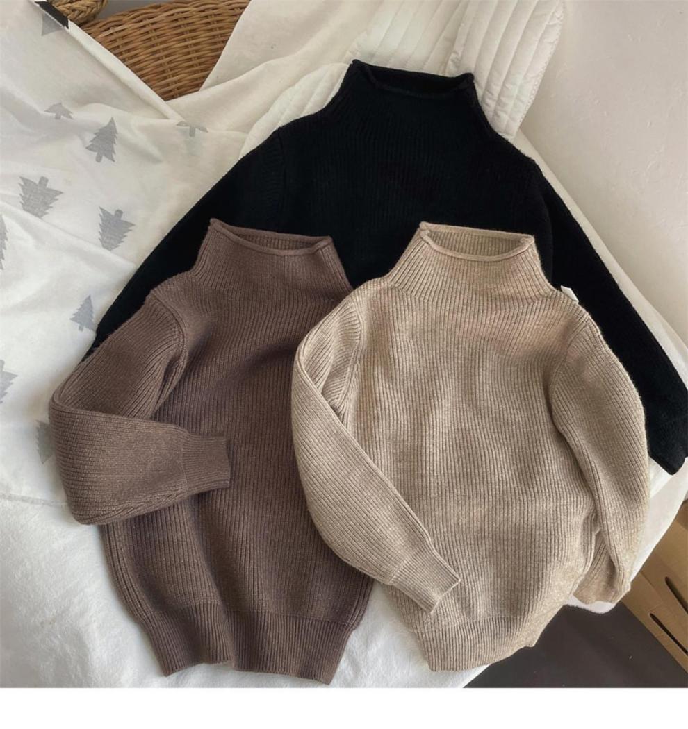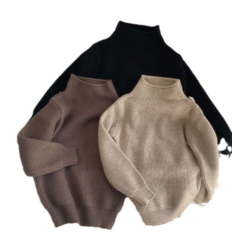[Спот] корейские дети с полувысоким воротником сплошной цвет нижний свитер для мальчиков и девочек весной и осенью пуловер новый трикотаж