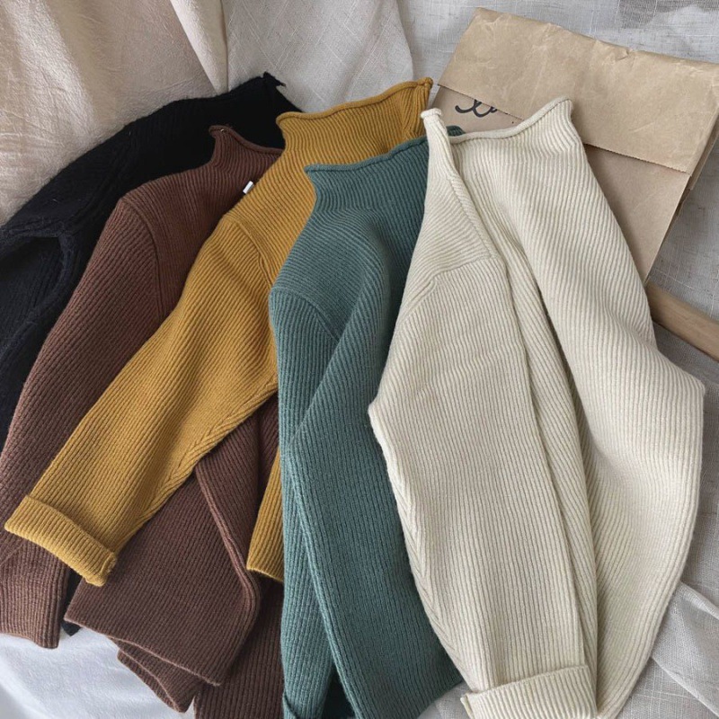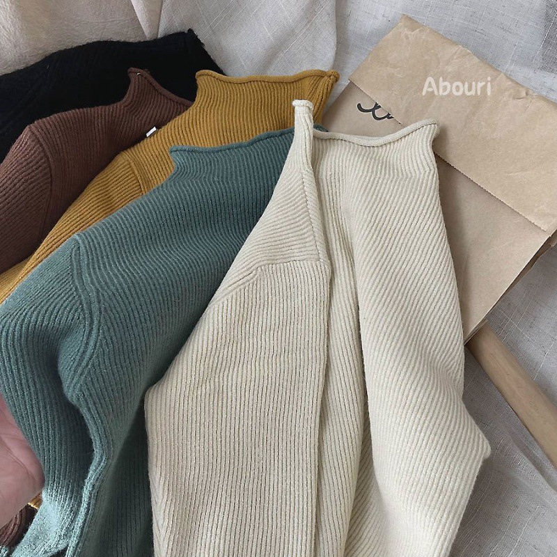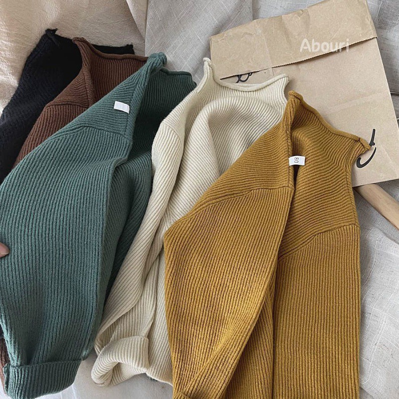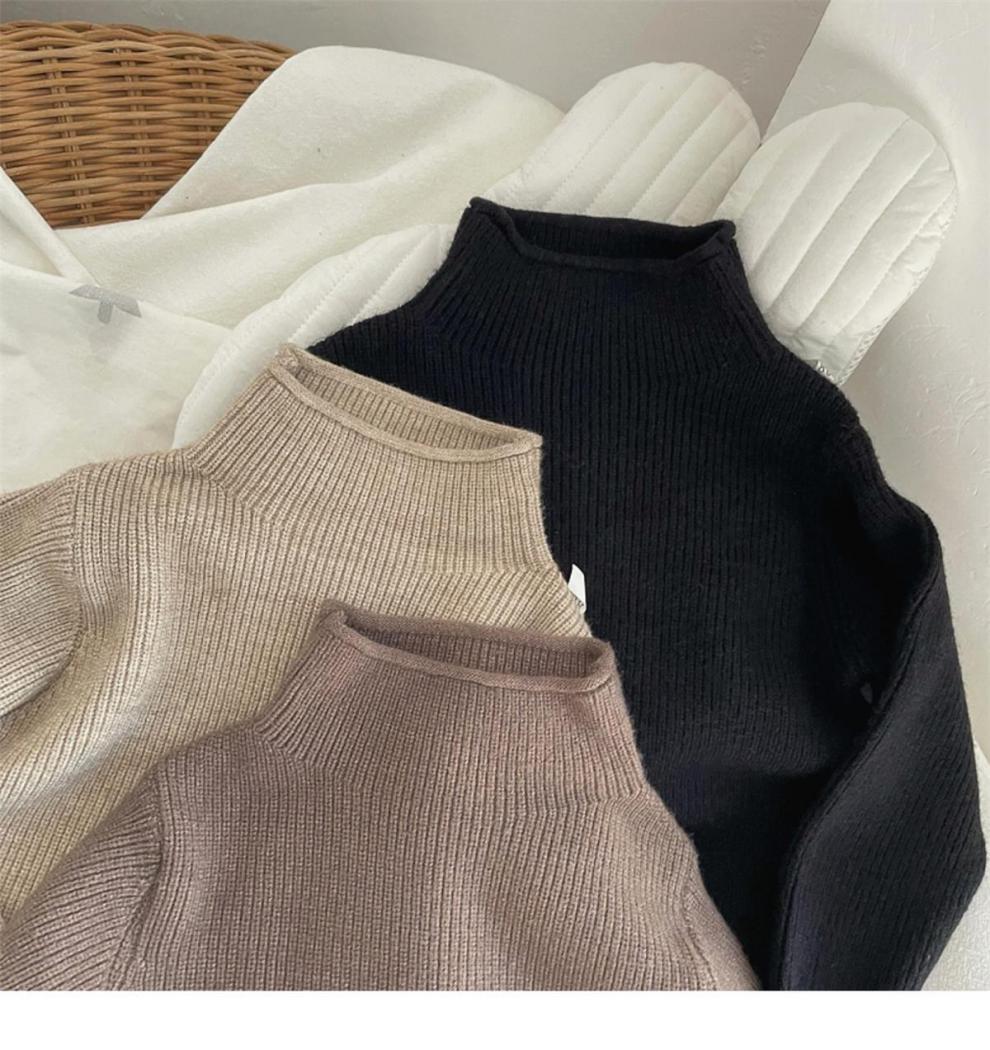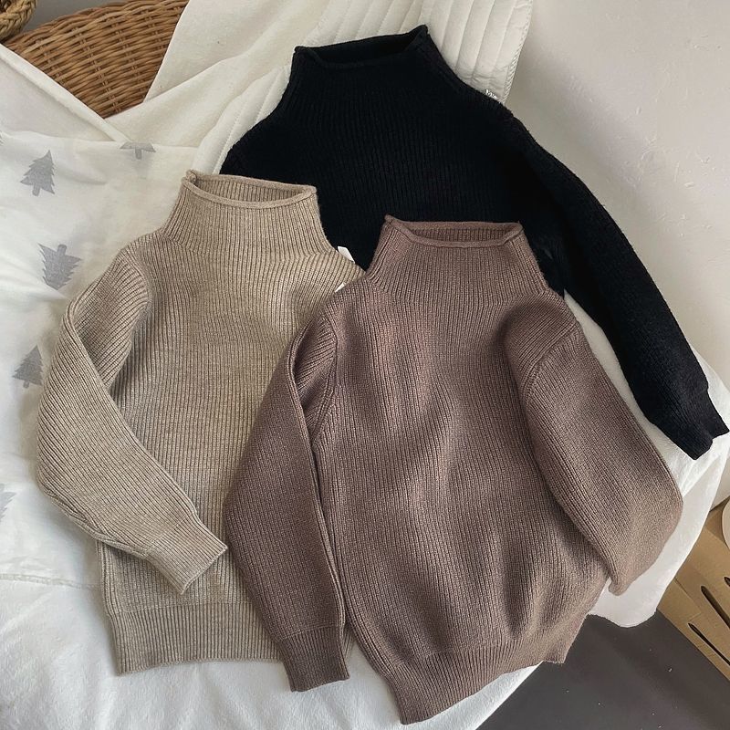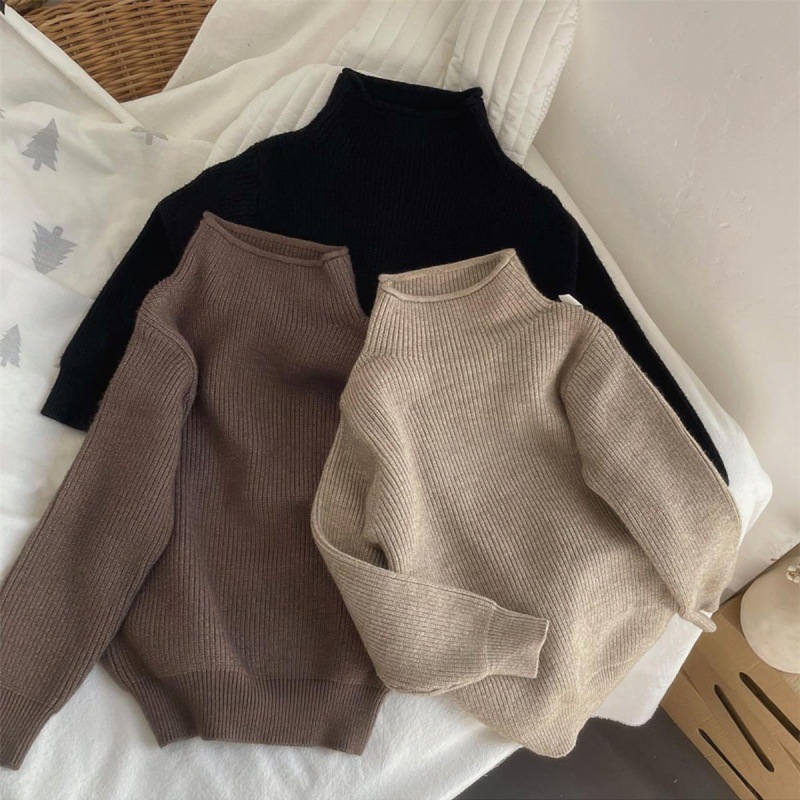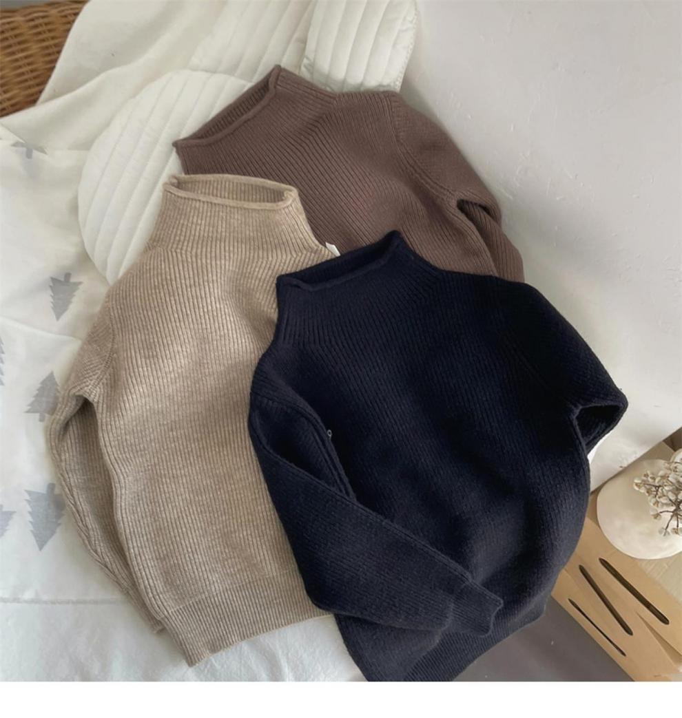 [Спот] корейские дети с полувысоким воротником сплошной цвет нижний свитер для мальчиков и девочек весной и осенью пуловер новый трикотаж