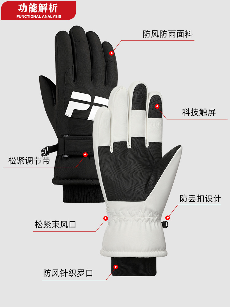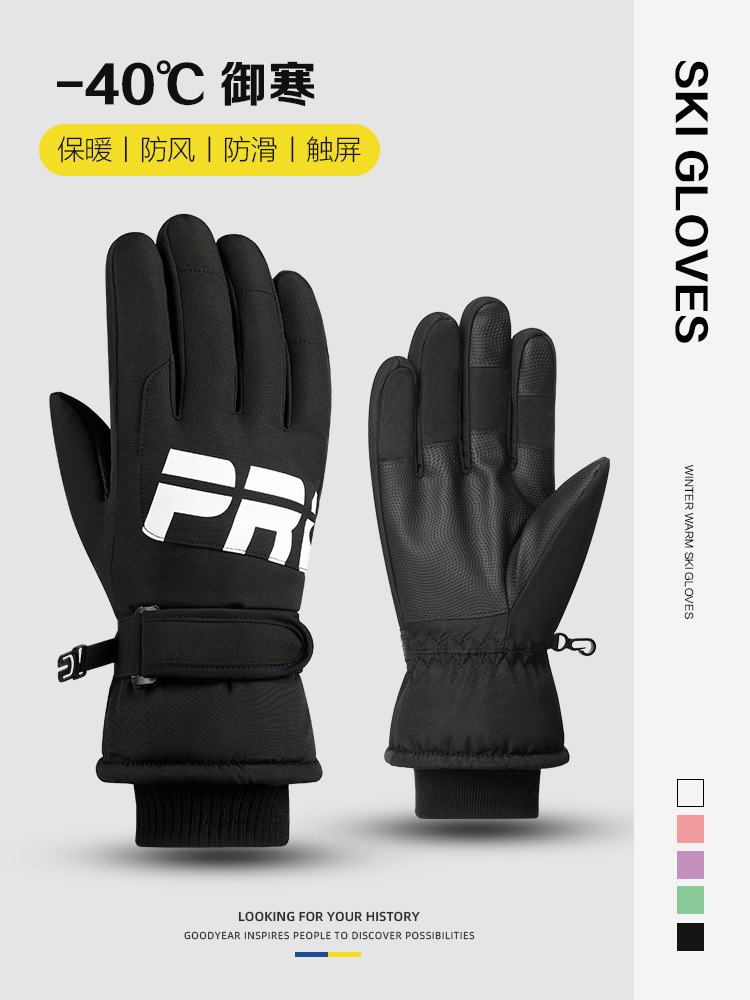 Лыжные перчатки, мужские и женские зимние утолщенные ветрозащитные водонепроницаемые Нескользящие перчатки с сенсорным экраном на флисовой подкладке, уличные велосипедные Холодостойкие теплые перчатки