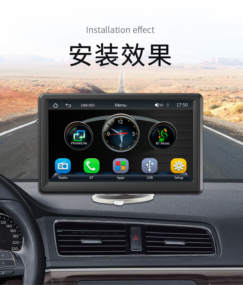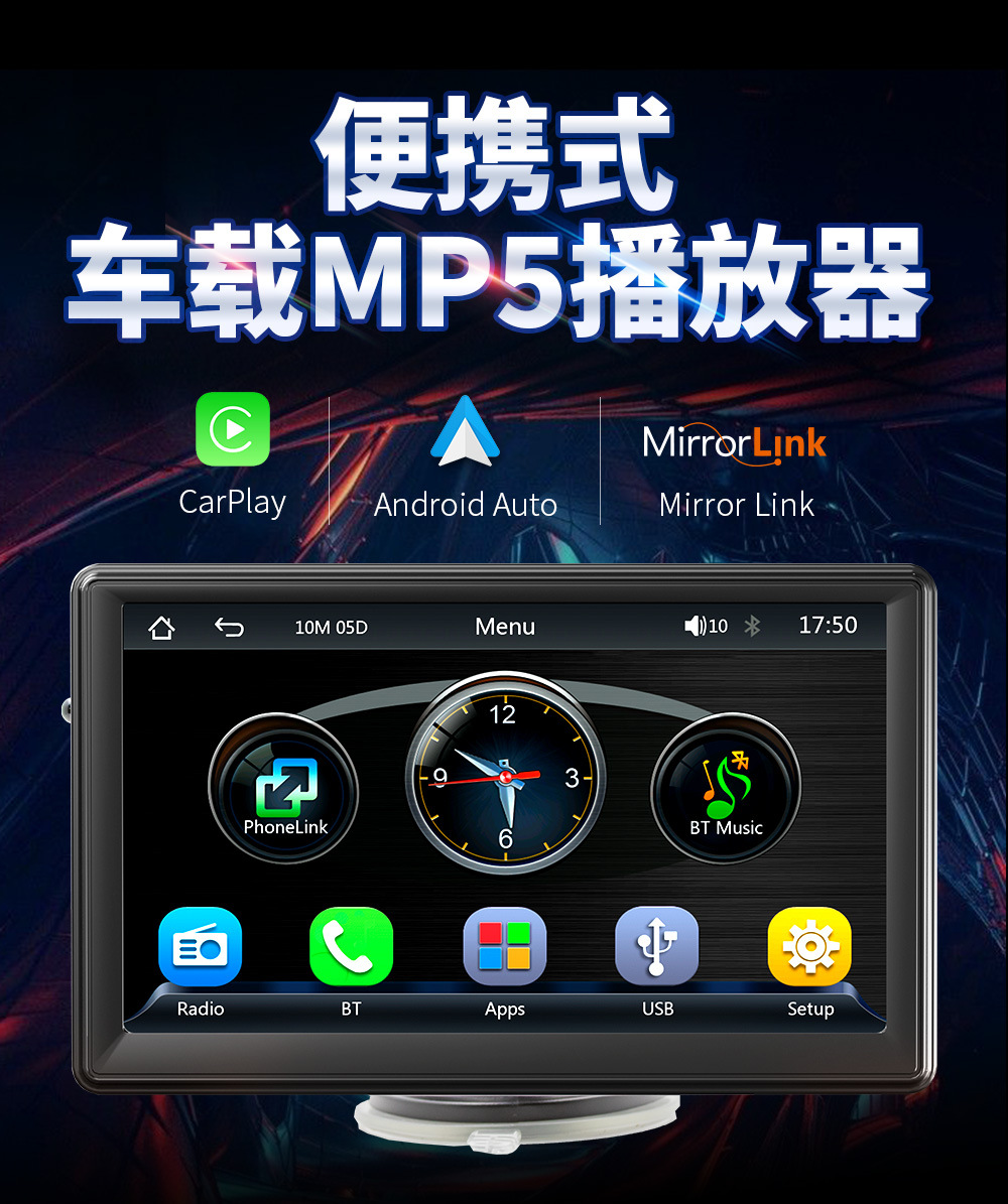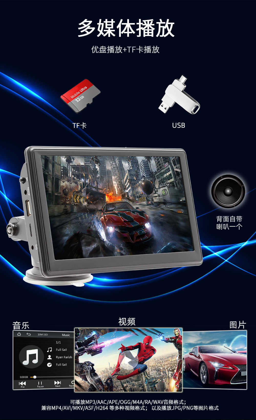 7寸便携式车载视频播放器,PND, 无线carplay车机,车载MP5播放器多媒体蓝牙插卡主机