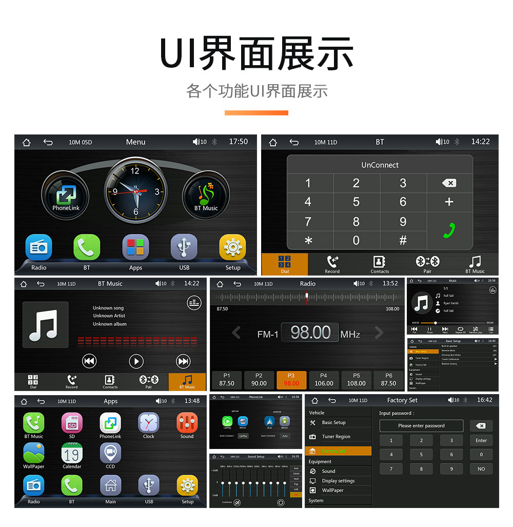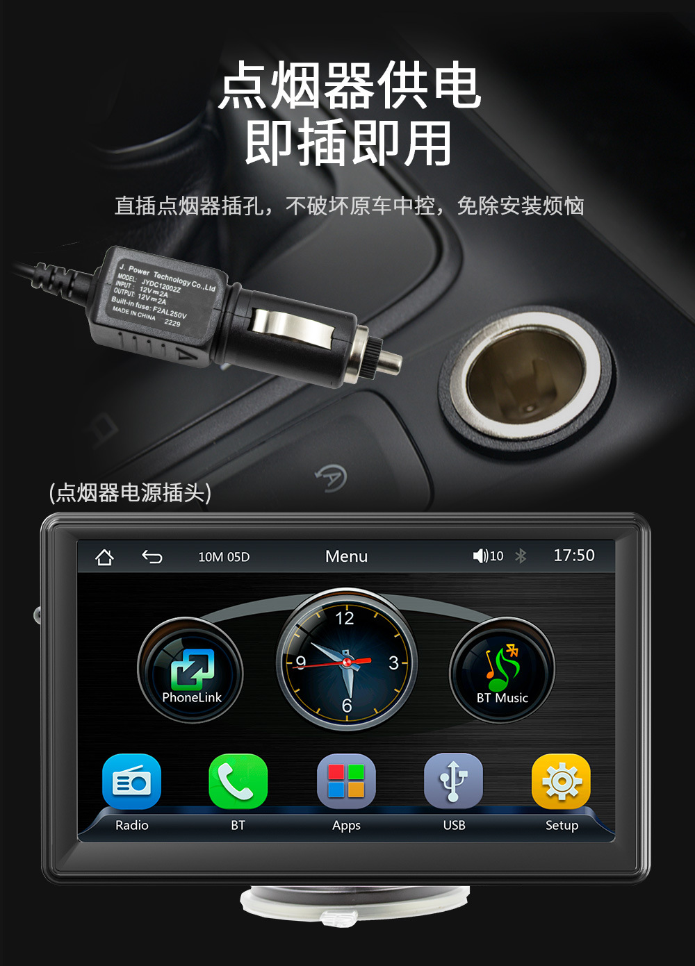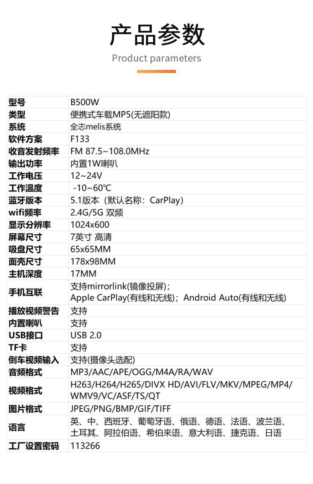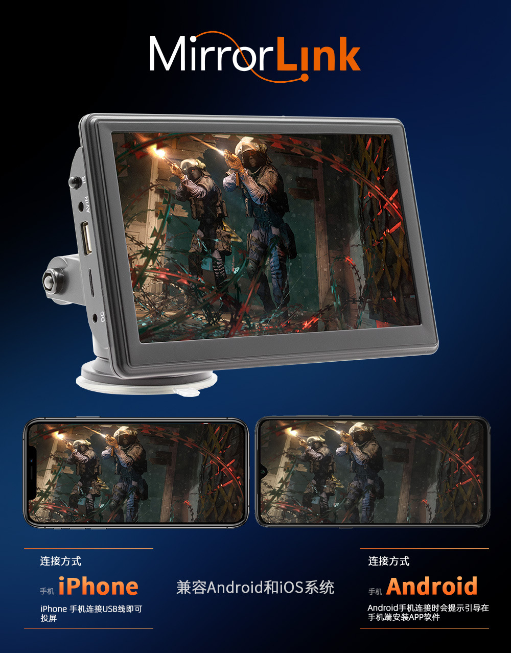 7寸便携式车载视频播放器,PND, 无线carplay车机,车载MP5播放器多媒体蓝牙插卡主机
