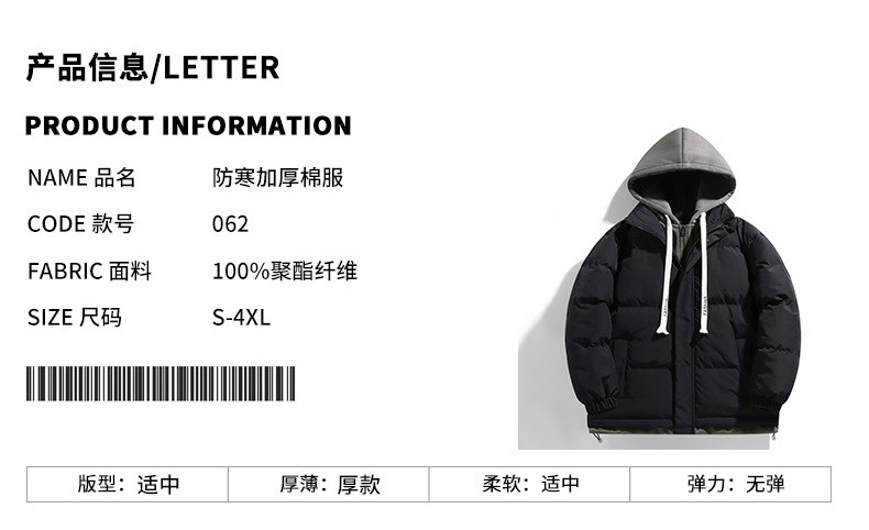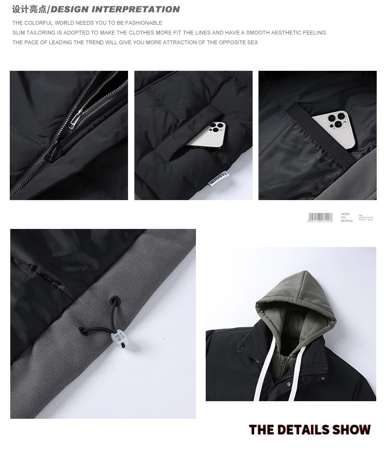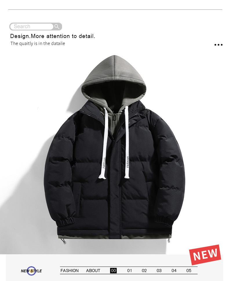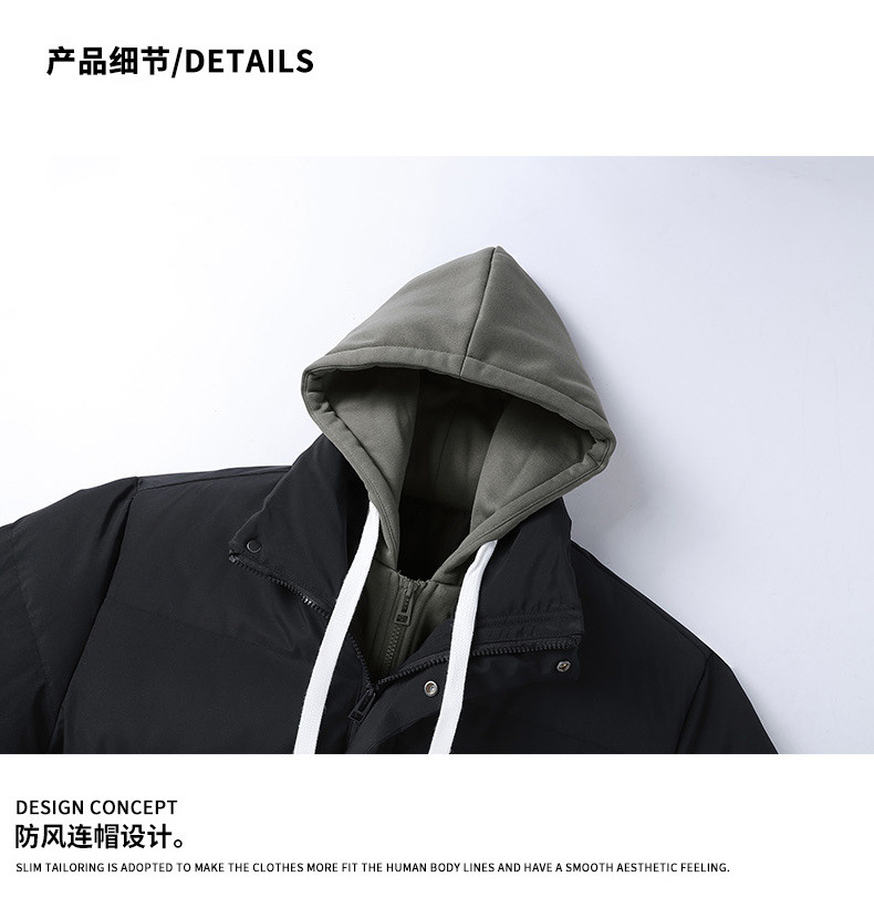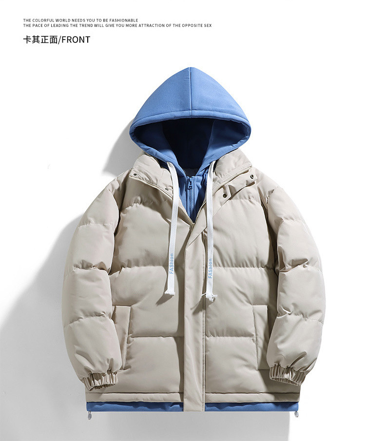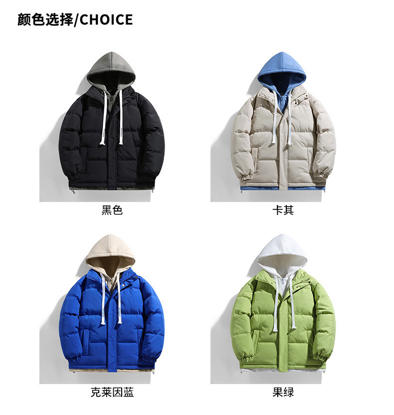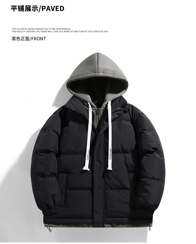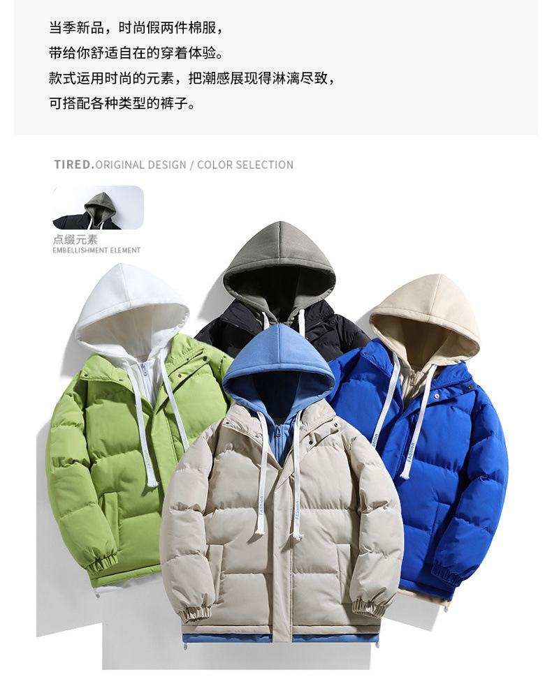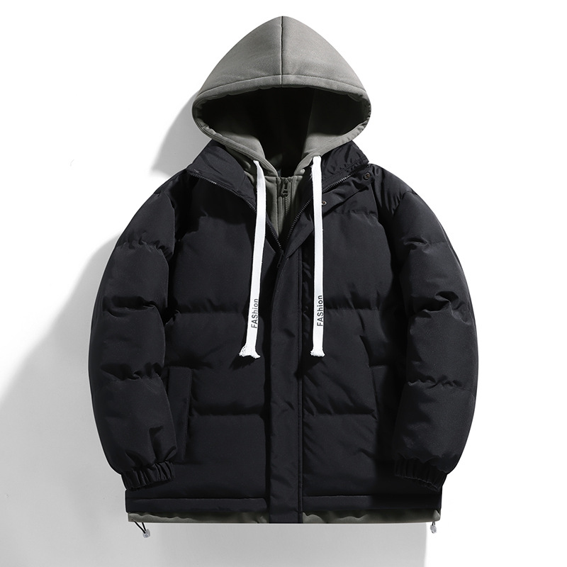 Поддельная куртка из двух частей с капюшоном и хлопковой подкладкой, мужское зимнее утолщенное теплое модное Брендовое повседневное универсальное пальто, пуховое хлебное пальто, куртка с хлопковой подкладкой