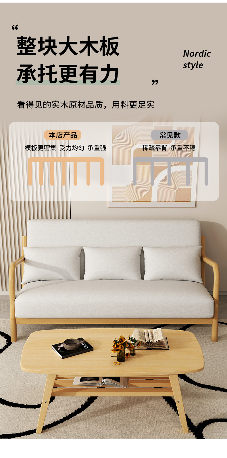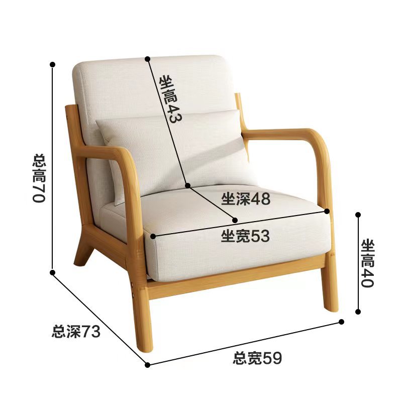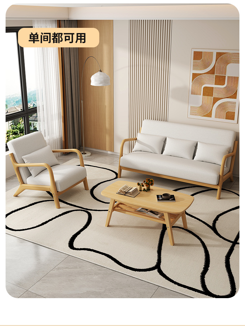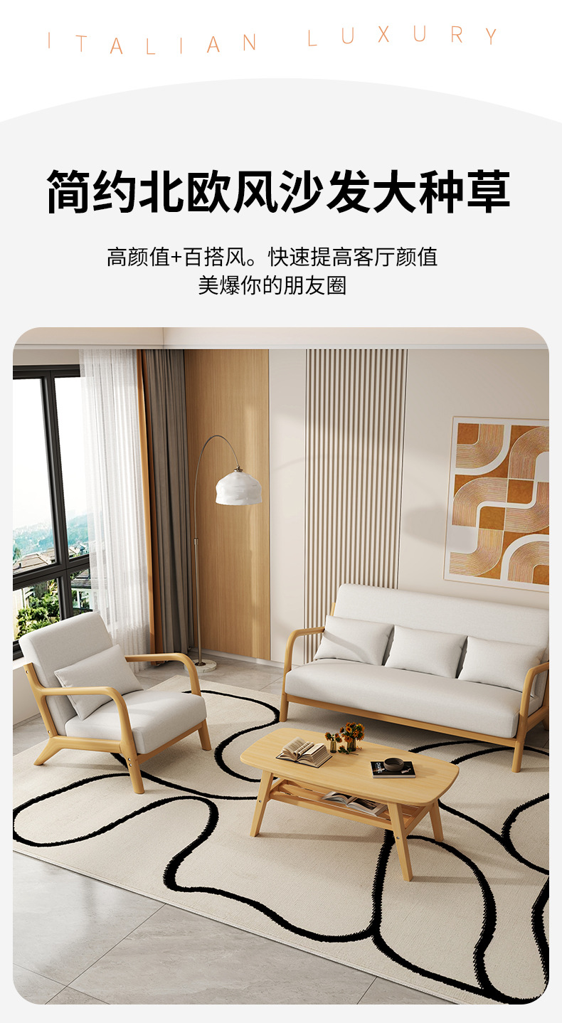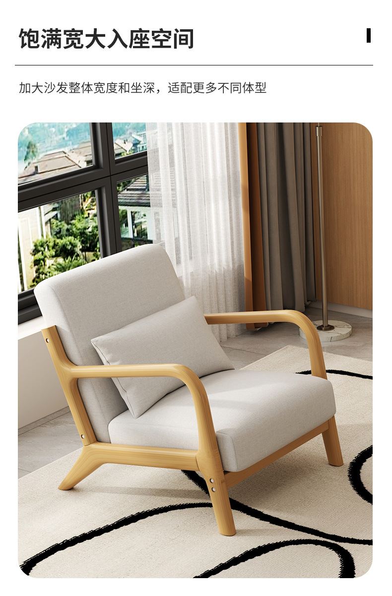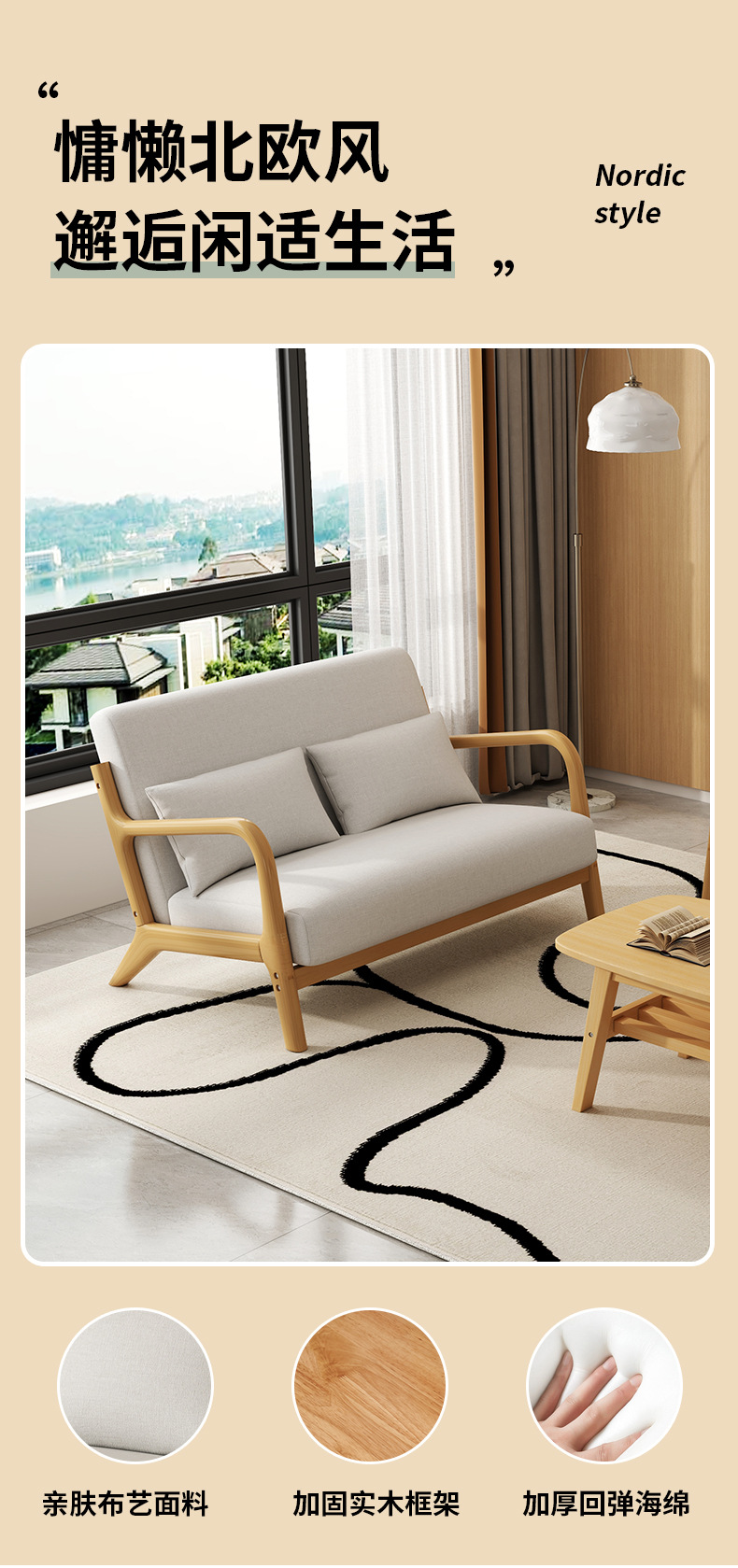 Современный минималистичный скандинавский диван-кресло для одиночной квартиры, тканевый, для отеля, двойной или тройной, из массива дерева, для отдыха, для гостиной