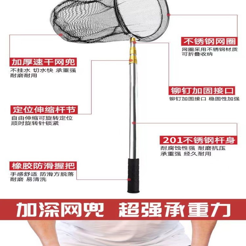 不锈钢抄网捞鱼网抄网杆伸缩杆泥鳅抄网套装抄网头可折叠加深网兜