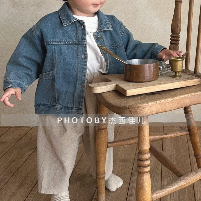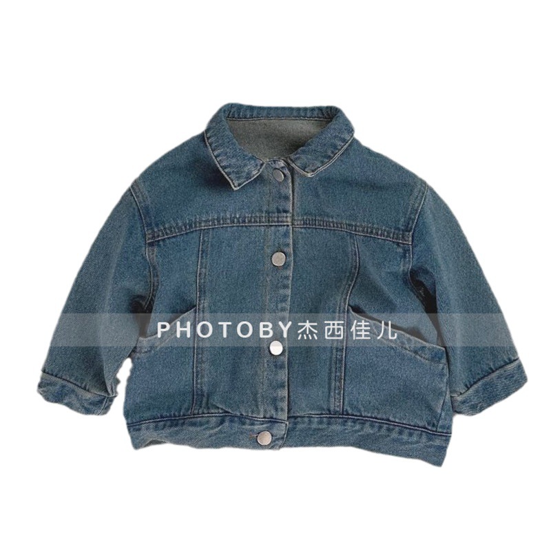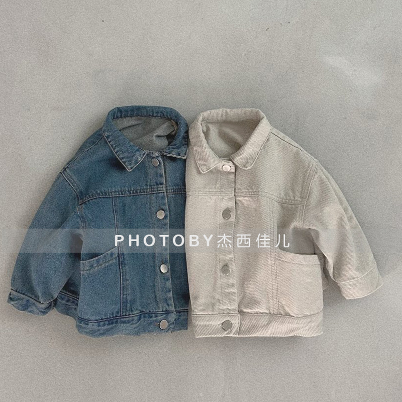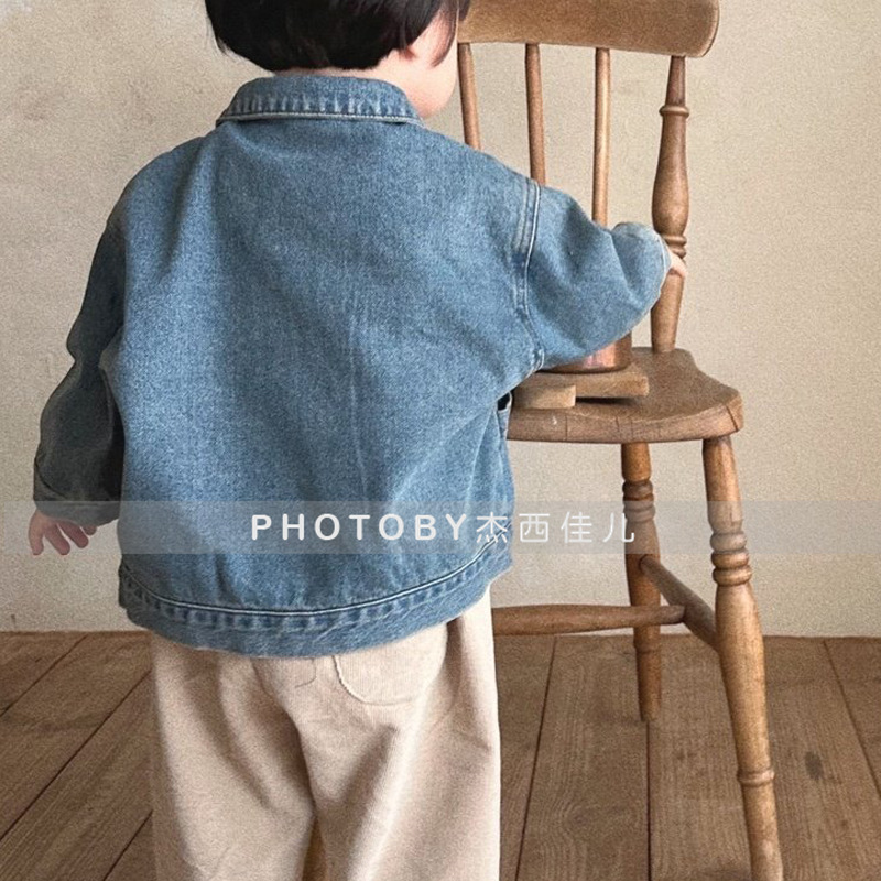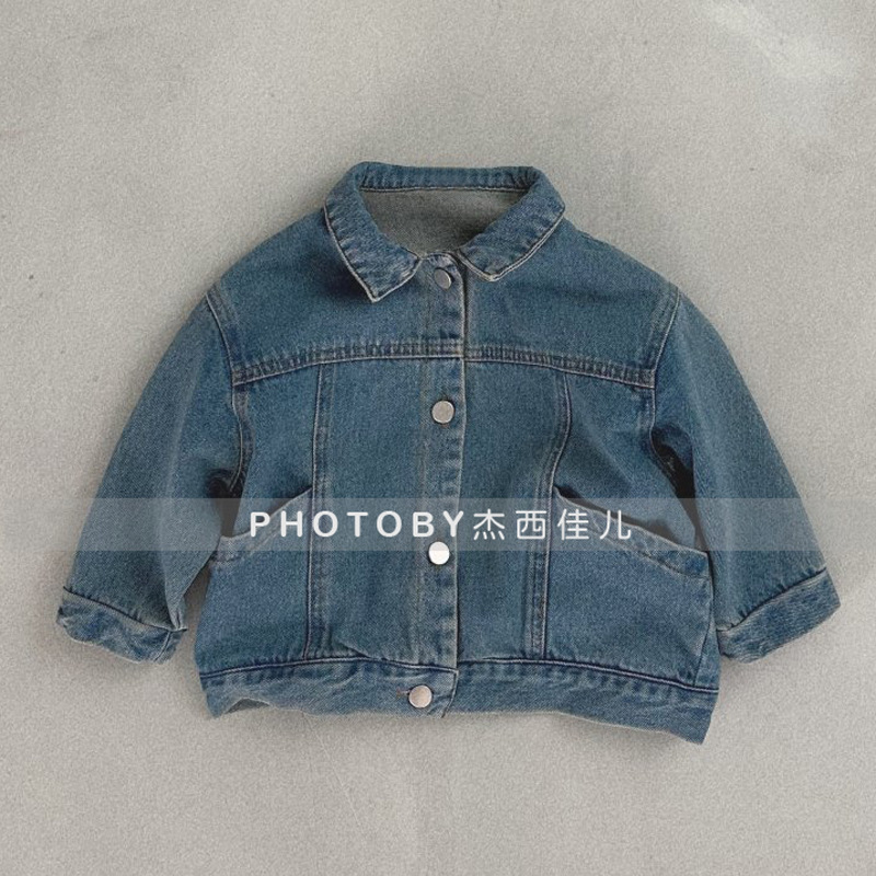 Ins корейские мальчики и девочки весенние новые детские куртки красивые модные лацканы боковые сумки детская куртка джинсовый кардиган