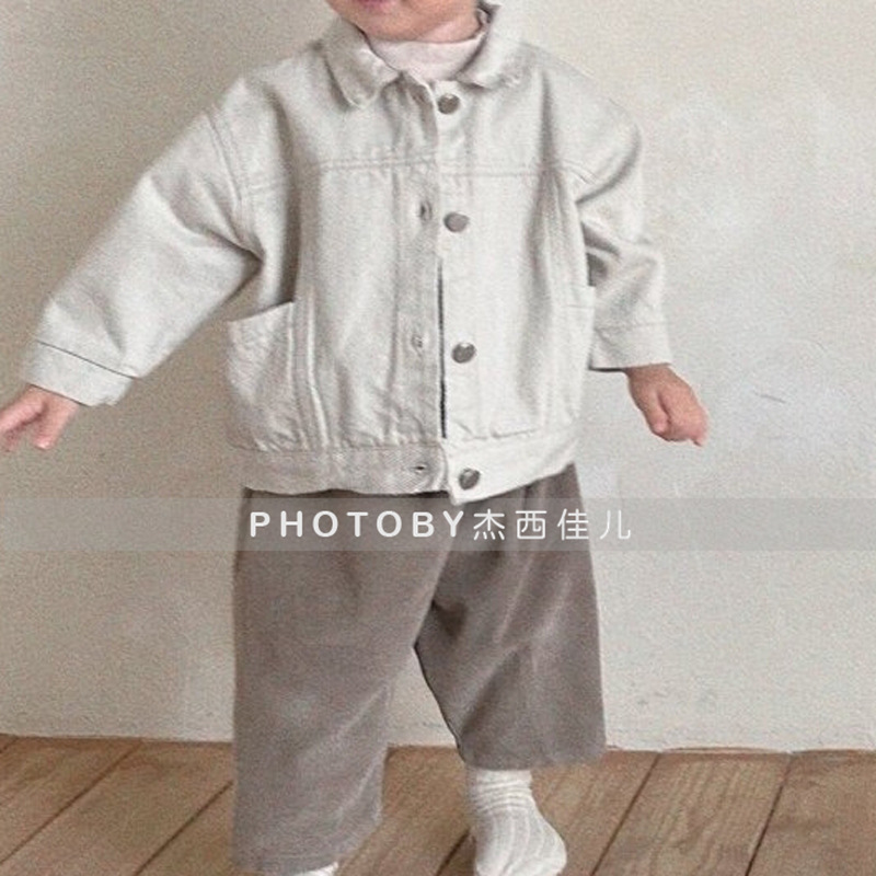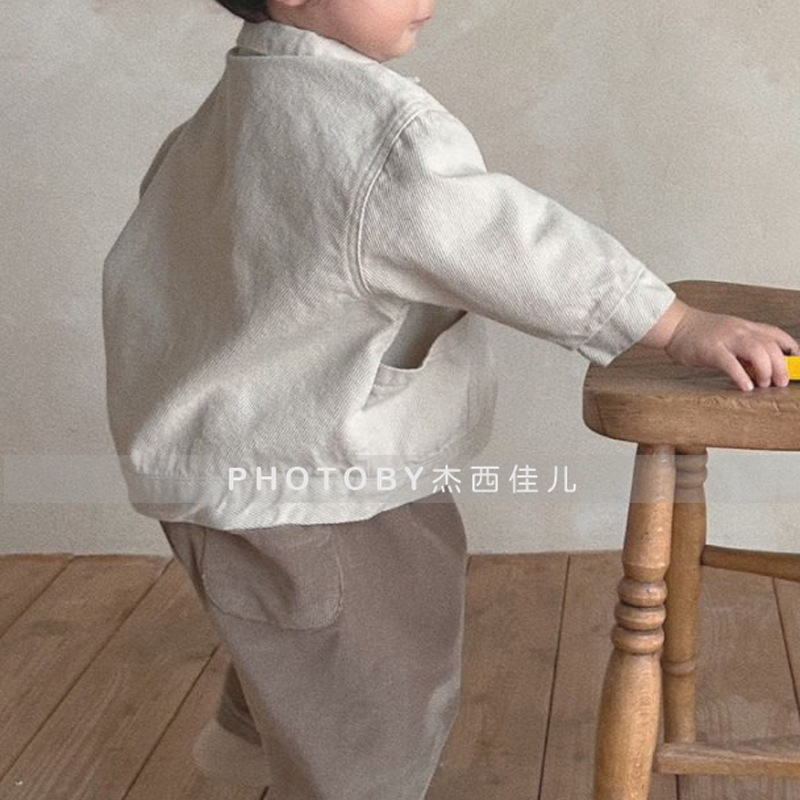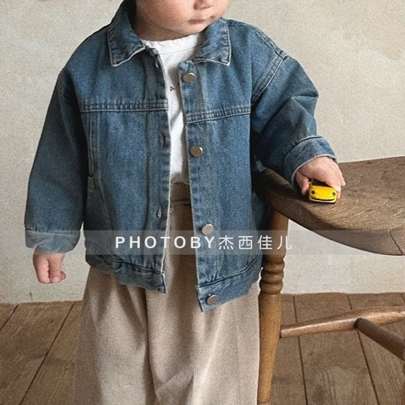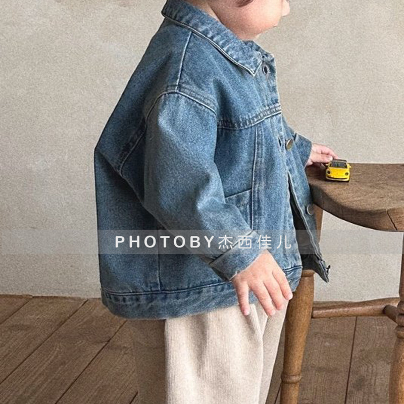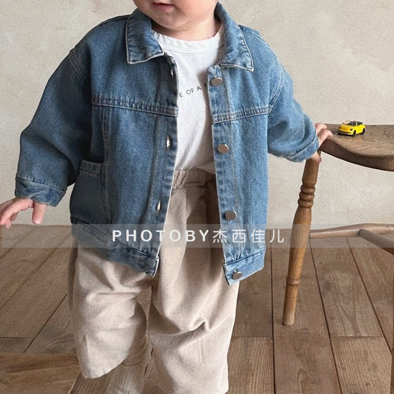 Ins корейские мальчики и девочки весенние новые детские куртки красивые модные лацканы боковые сумки детская куртка джинсовый кардиган