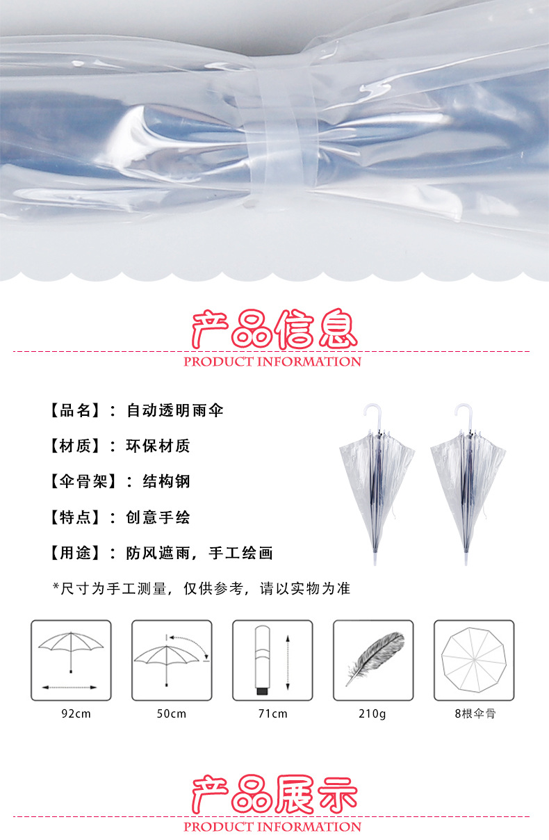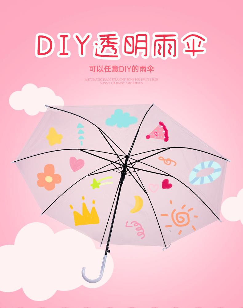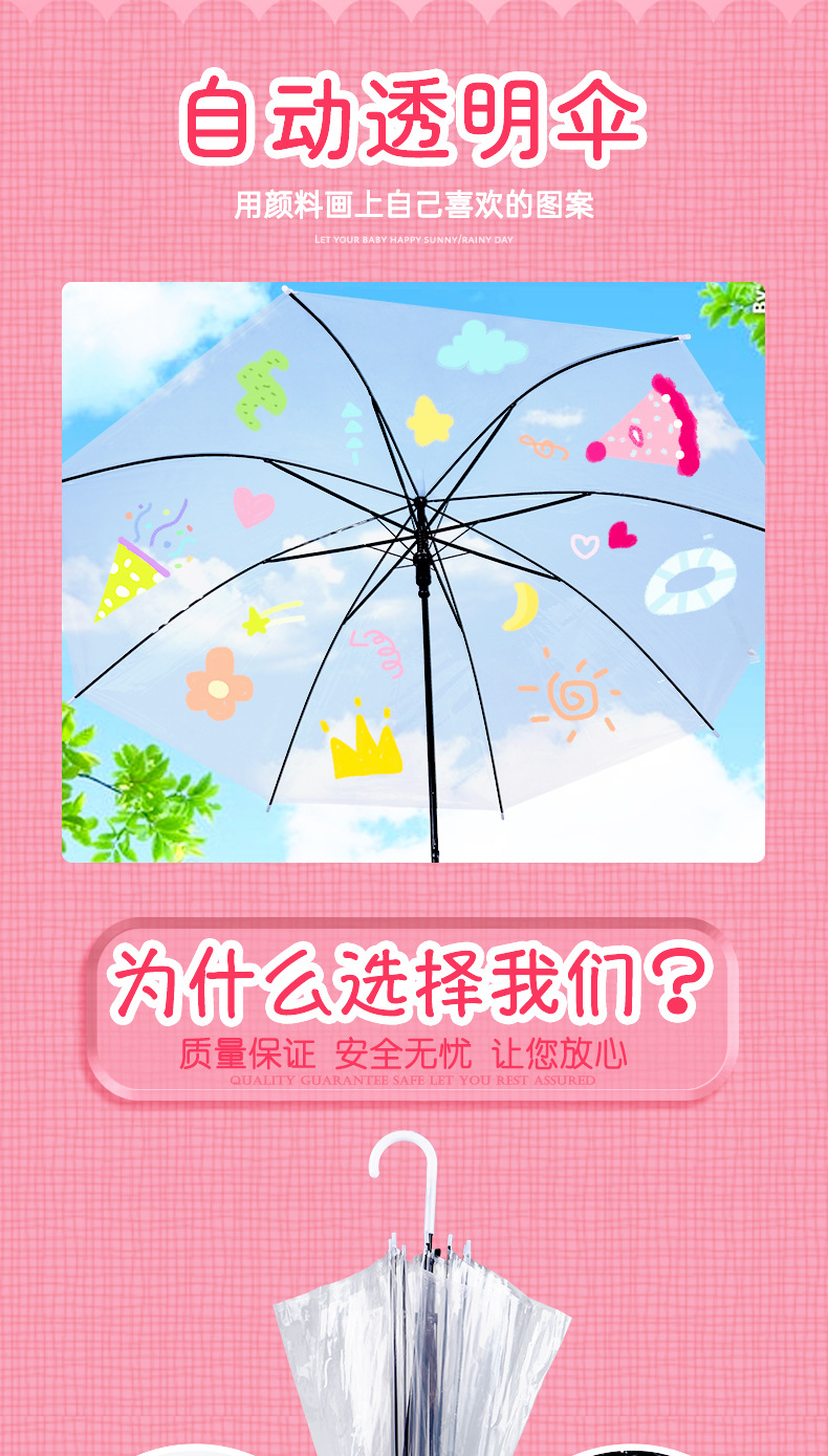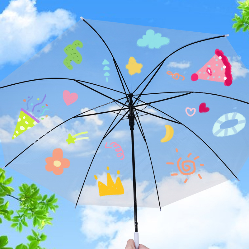 Популярный детский сад ручной работы DIY Прозрачный детский автоматический зонт граффити пустой Начальная школа мультфильм живопись зонтик