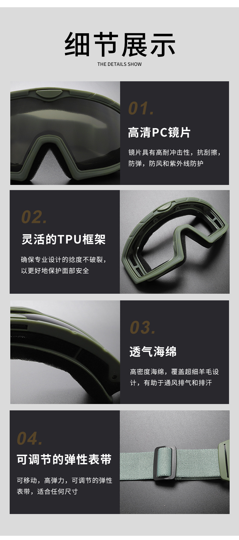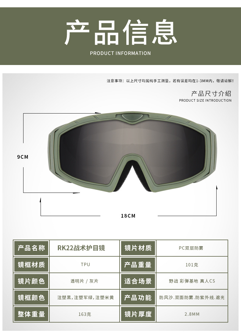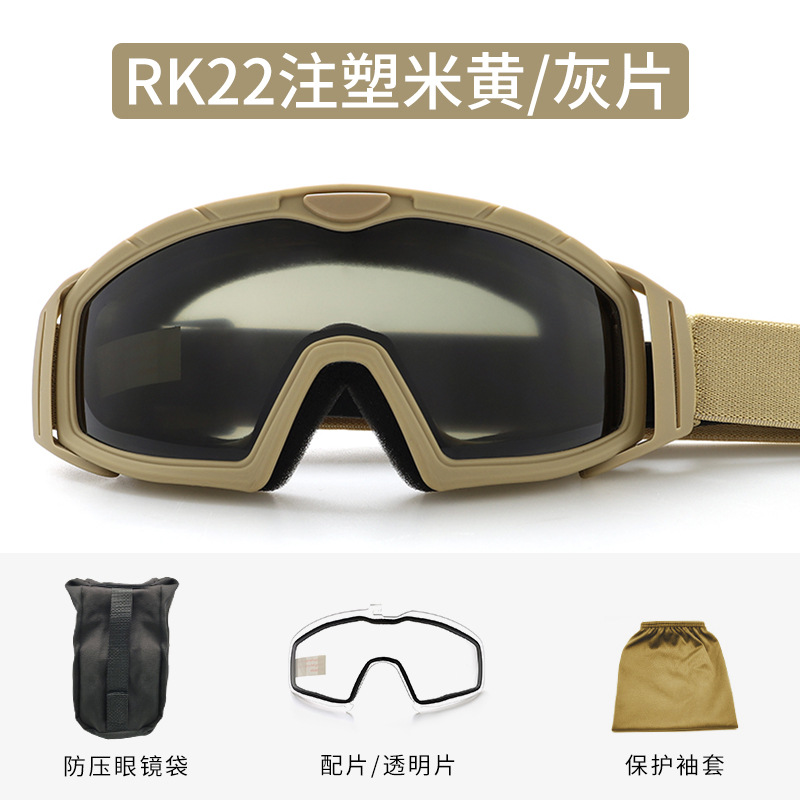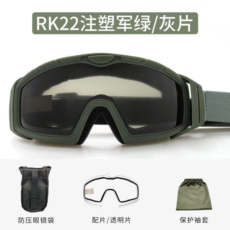 Черный комплект RK22, отлитый под давлением (основная часть серая с прозрачной частью); RK22 Военный зеленый комплект (основная линза: серая, дополнительная линза: прозрачная); Бежевый комплект RK22, отлитый под давлением (основная часть серая с прозрачной деталью)
