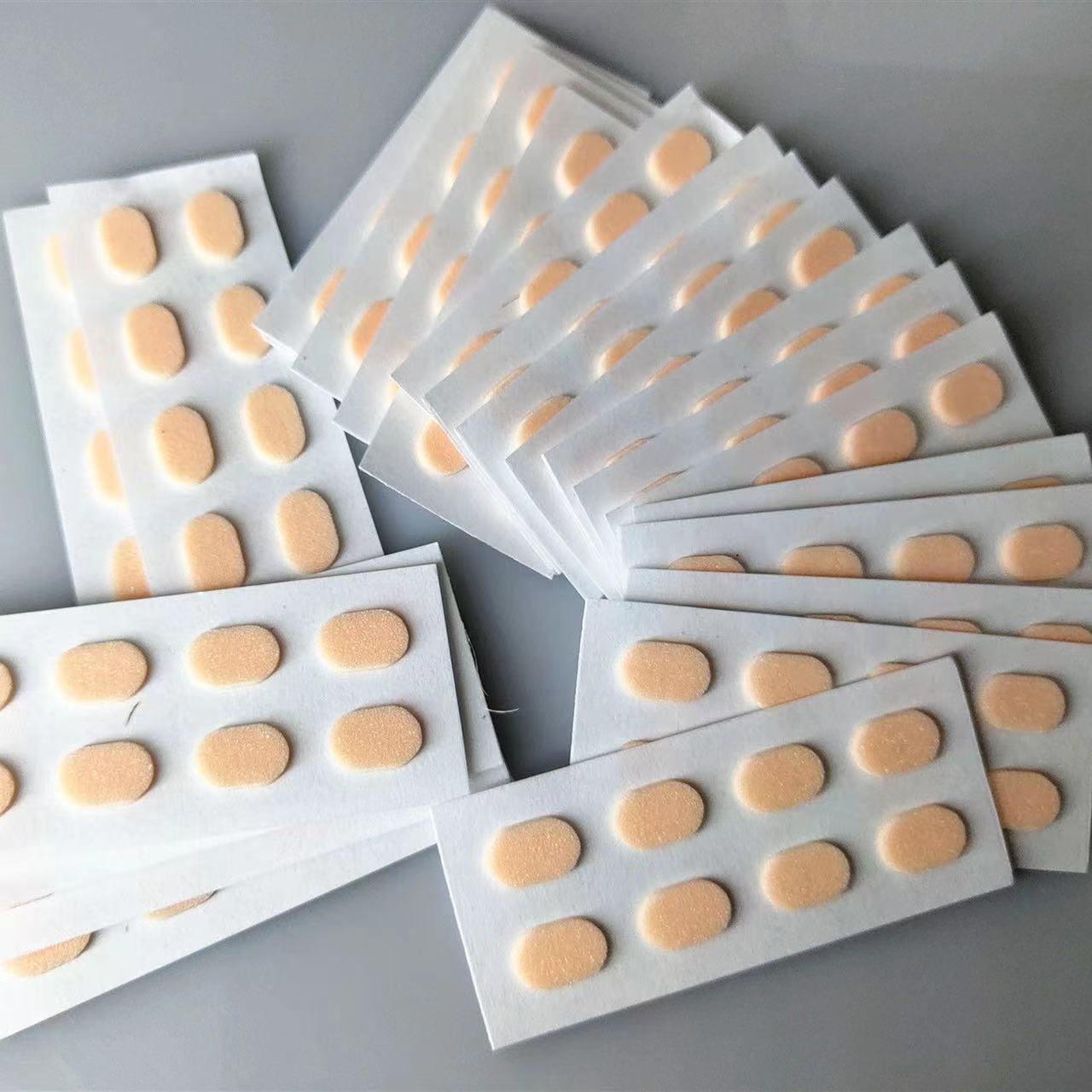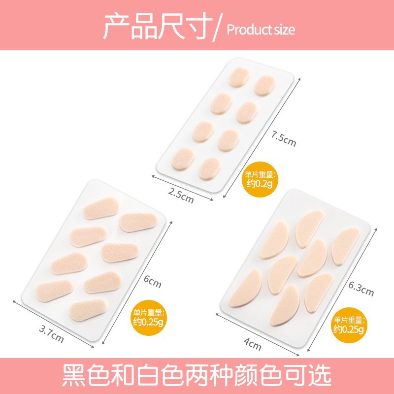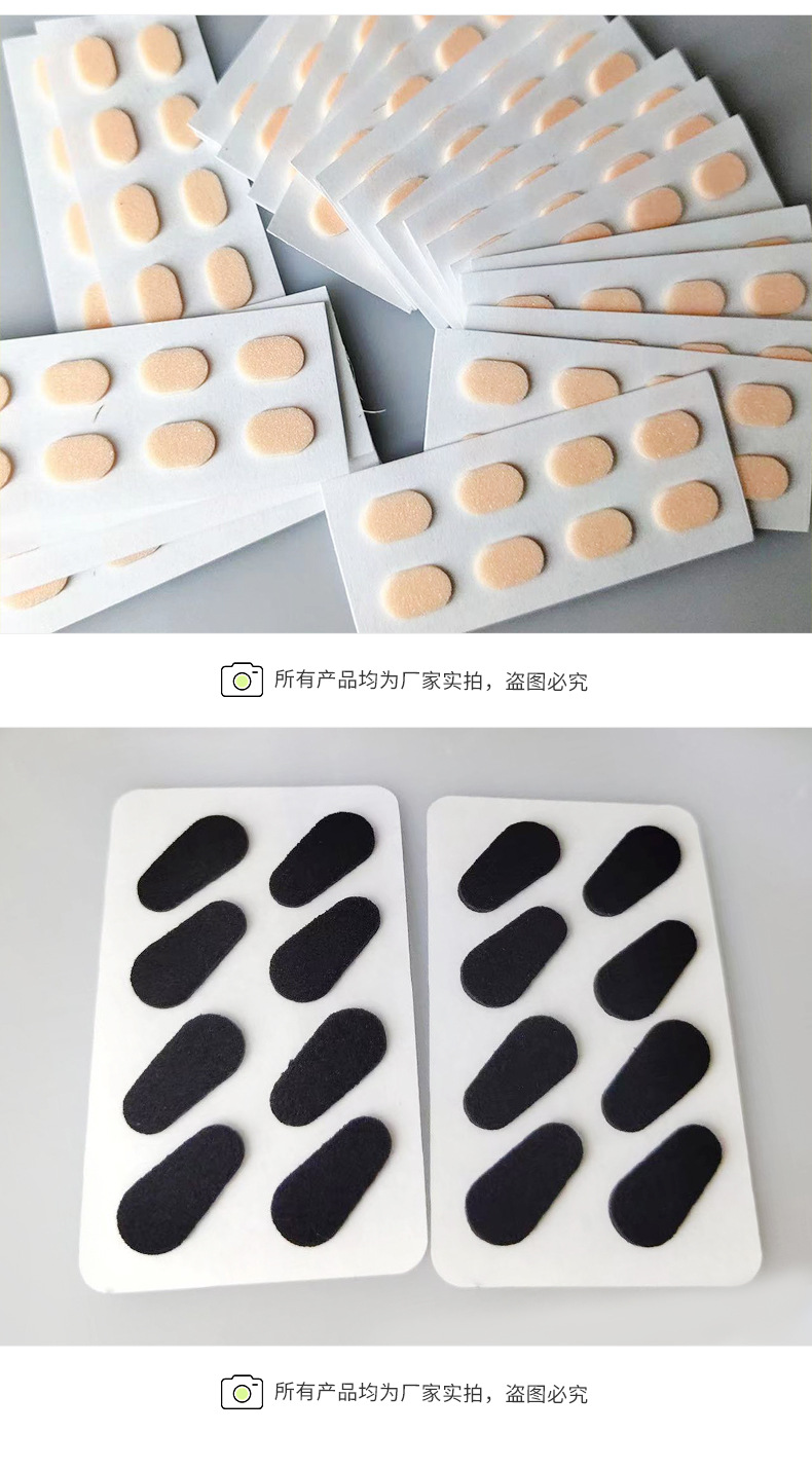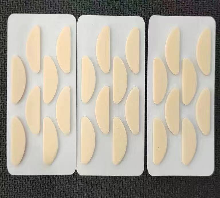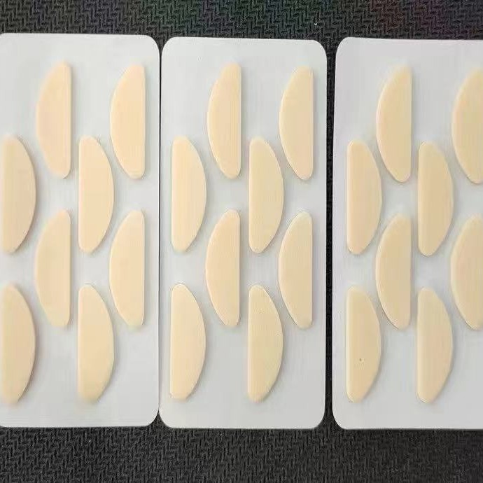 1 кусок овальной толщины цвета кожи толщиной 1,5 мм.; 1 кусок черного овала толщиной 1,5 мм.; 1 кусок кожи цвета D-образной формы, толщина 1,5 мм.; 1 кусок черного цвета D-образной формы толщиной 1,5 мм.; 1 кусок кожи цвета капли толщиной 1,5 мм.; 1 черный кусок каплевидной формы толщиной 1,5 мм.; 1 овал телесного цвета толщиной 1 мм (1 шт. для пробного использования)