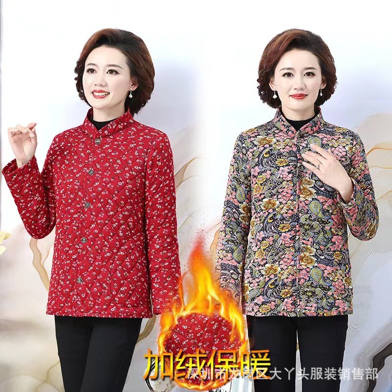 Утепленная хлопковая куртка для женщин среднего и старшего возраста, хлопковое пальто на флисовой подкладке для осени и зимы, утолщенная куртка с цветочным принтом для бабушки, уличный стиль для мам.