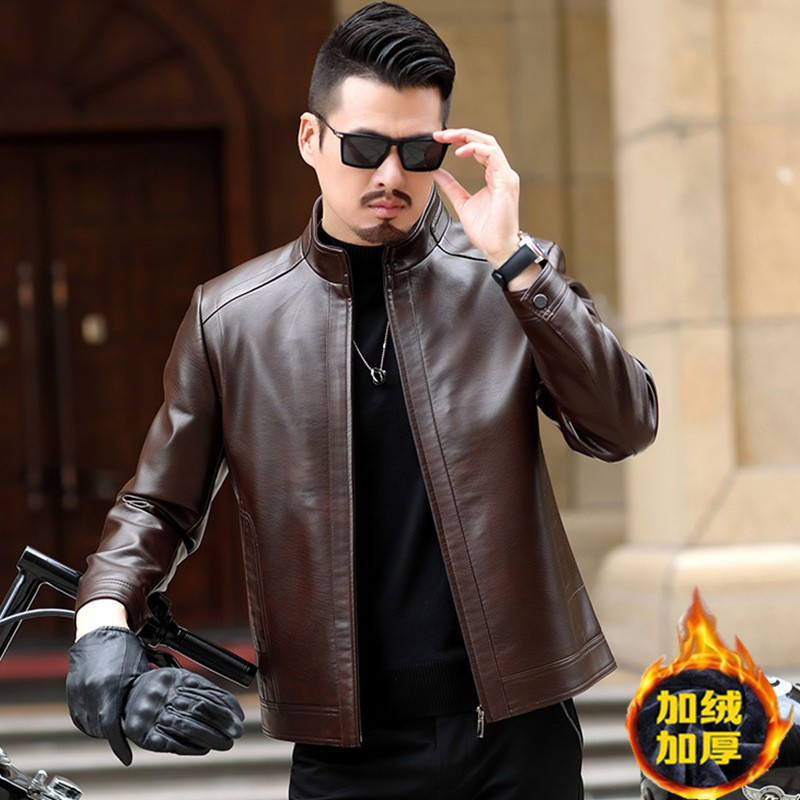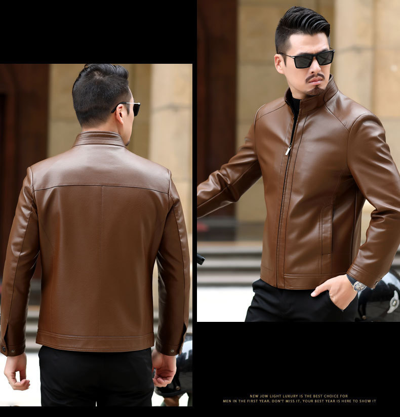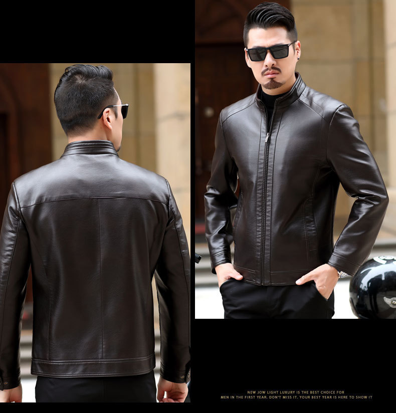 Мужская кожаная куртка среднего возраста, куртка с воротником-стойкой, мужская повседневная куртка из искусственной кожи среднего и пожилого возраста, папа, весенний Топ, цельная доставка