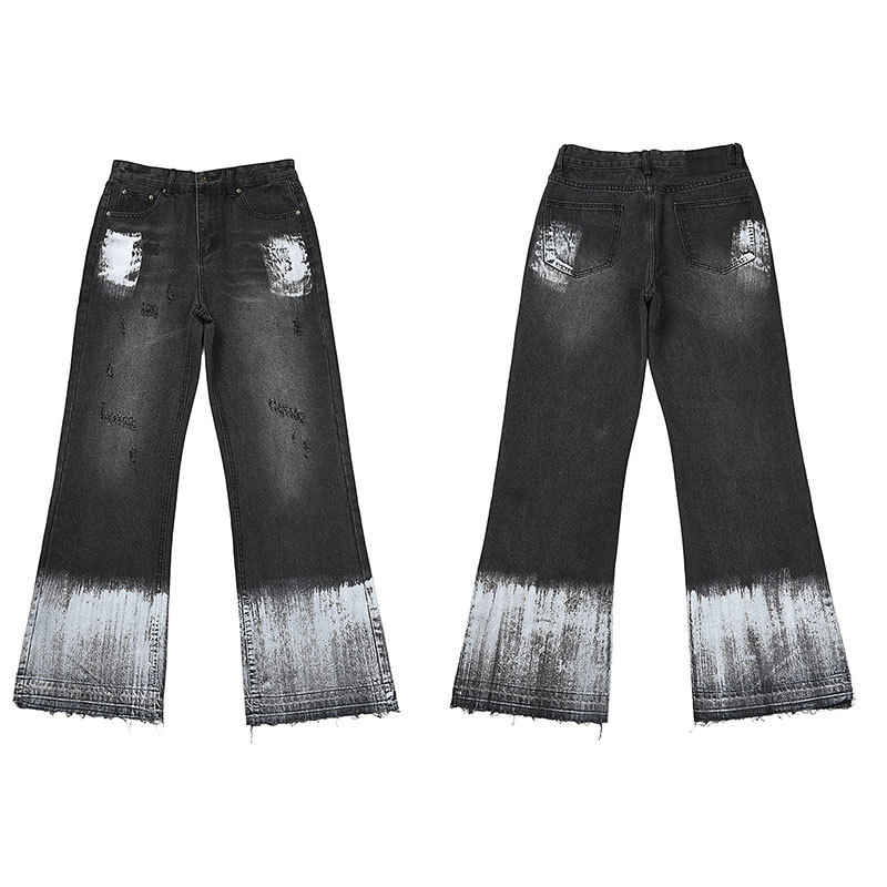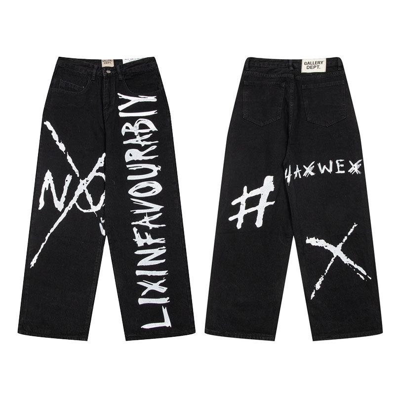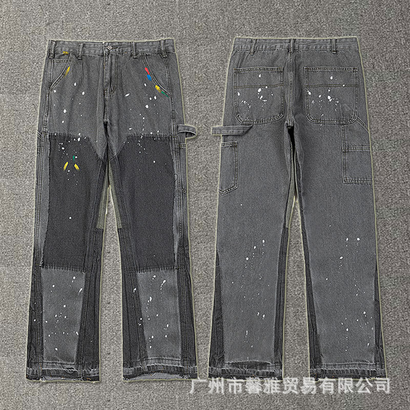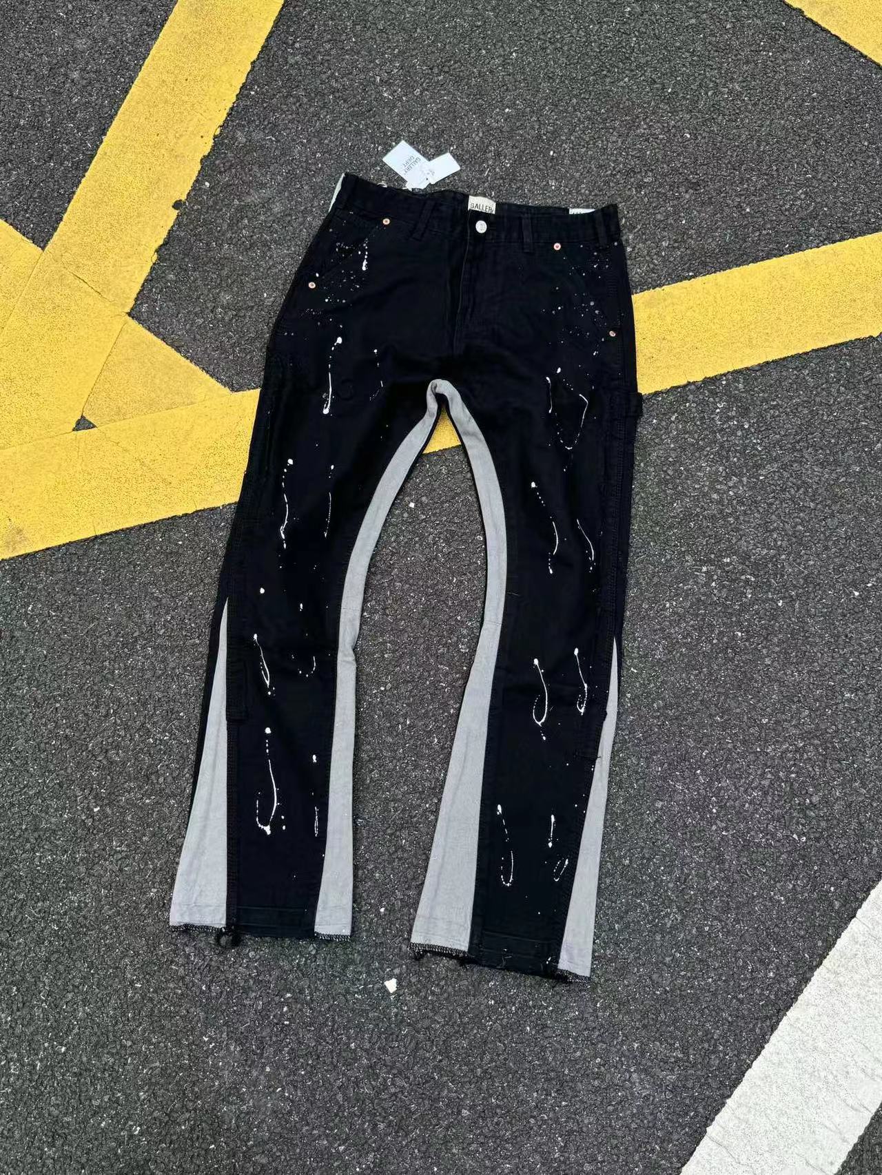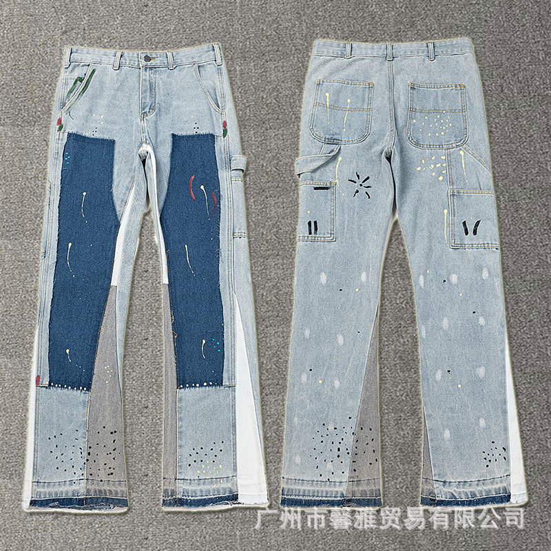 Наружный одиночный GALLERY DEPT брызги чернил граффити микро-рог сшивания отверстия повседневные свободные джинсы длинные брюки прилив