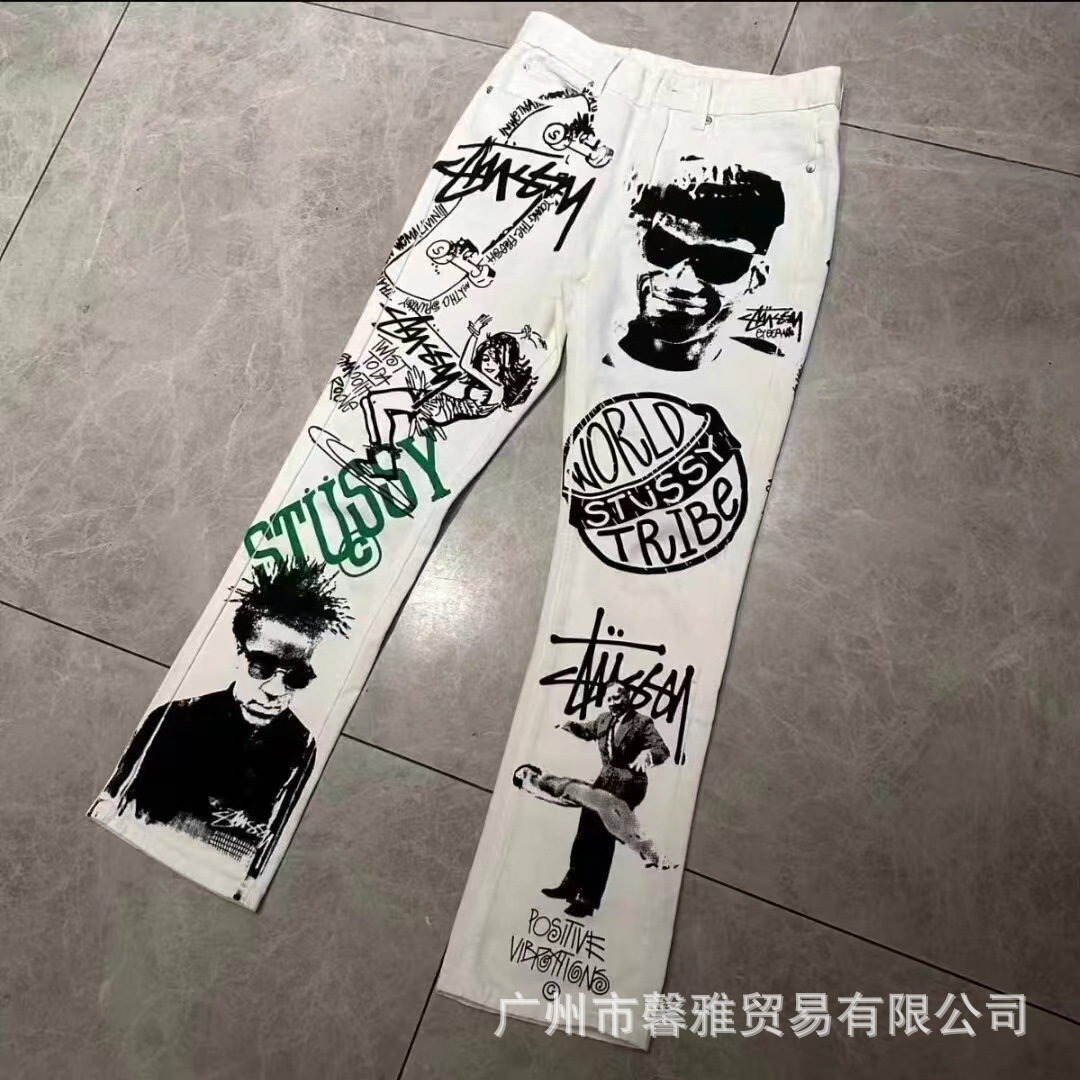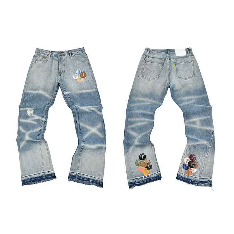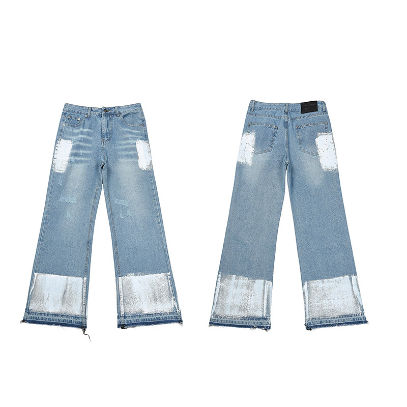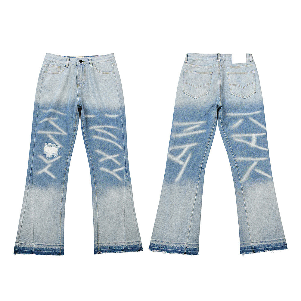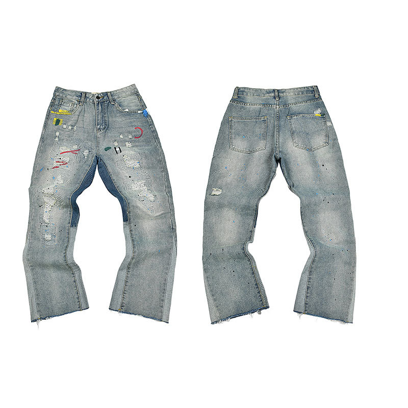 Наружный одиночный GALLERY DEPT брызги чернил граффити микро-рог сшивания отверстия повседневные свободные джинсы длинные брюки прилив