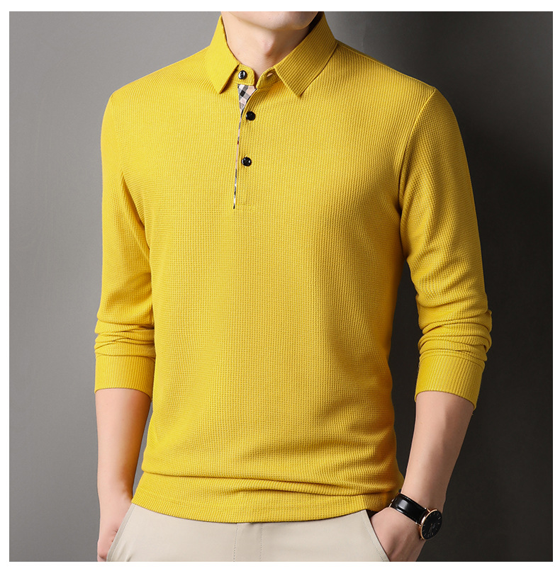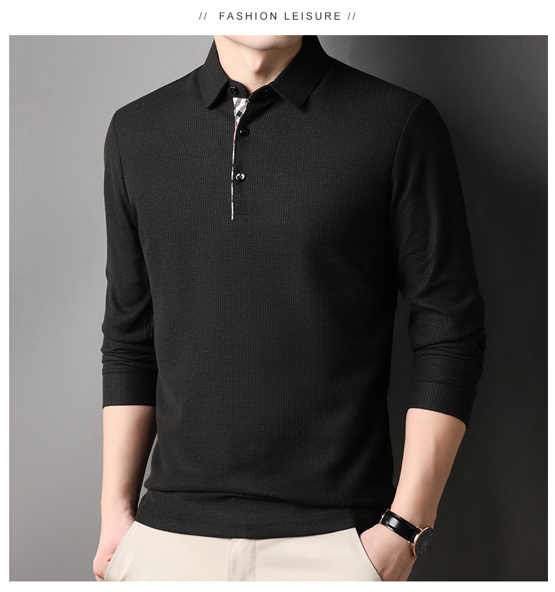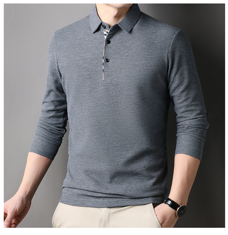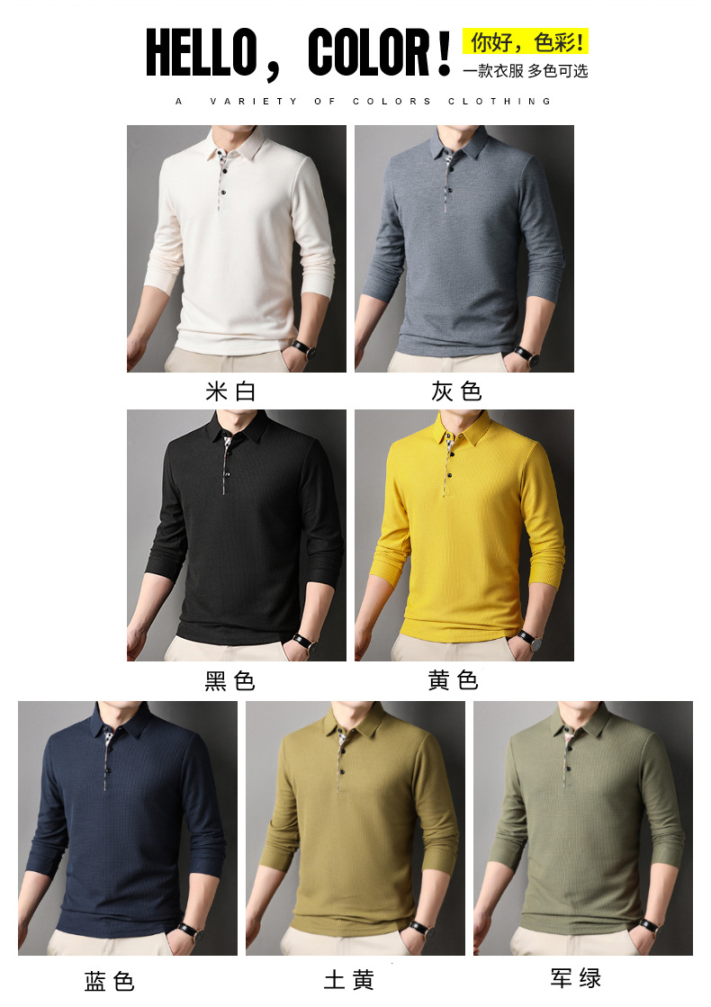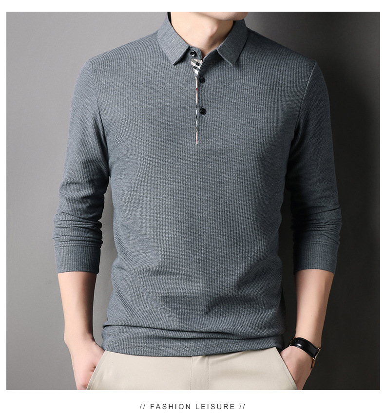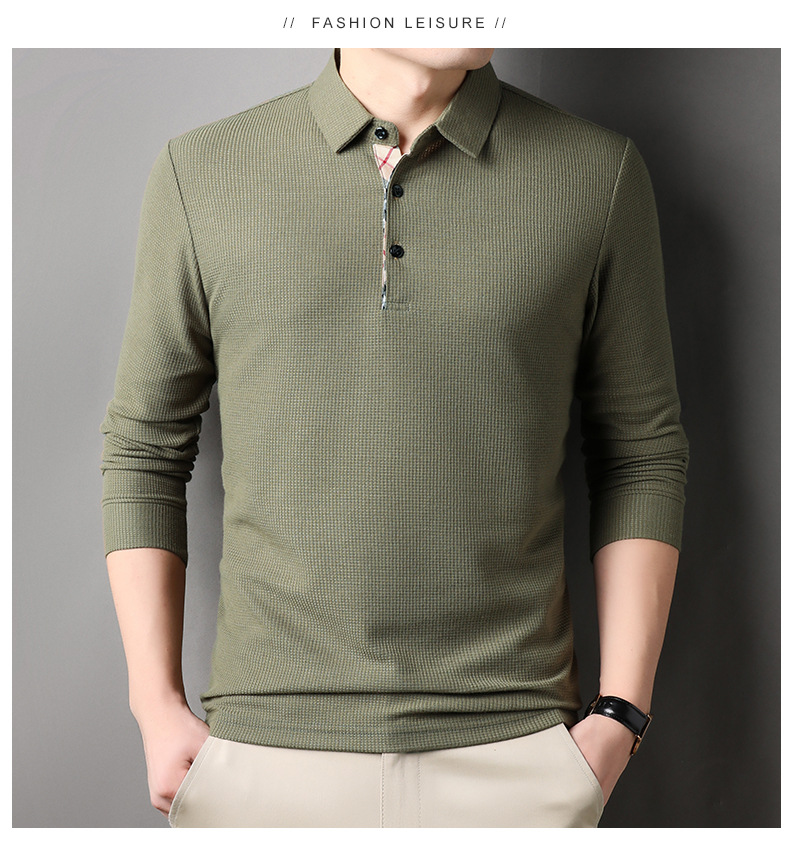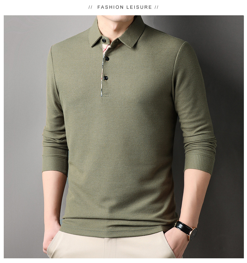 Мужская футболка-поло с длинным рукавом для трансграничной торговли, весна-осень 2026, однотонная, вафельная, для молодежи и среднего возраста, повседневная, универсальная