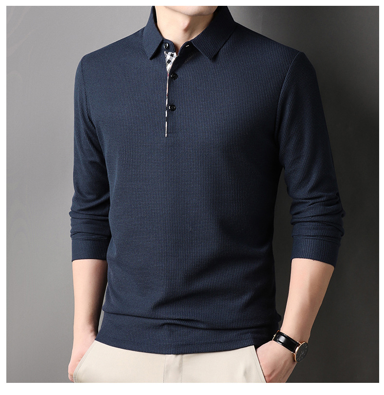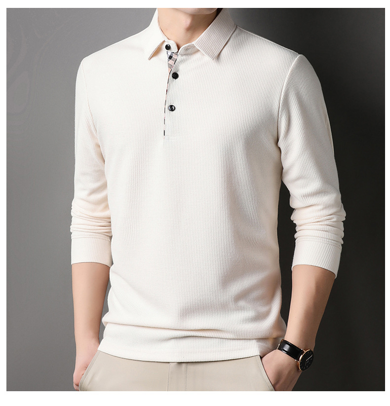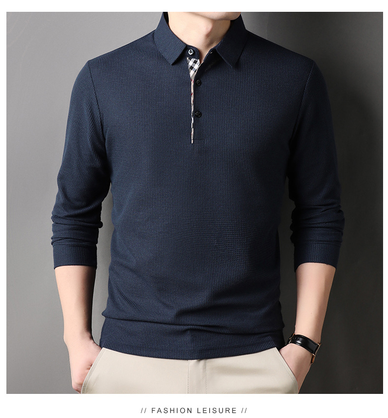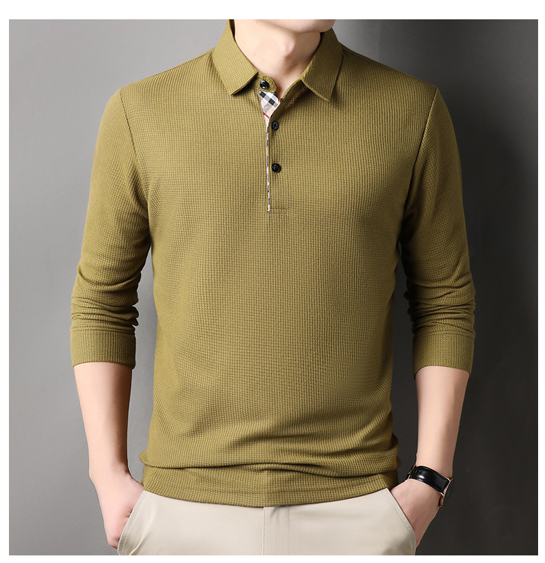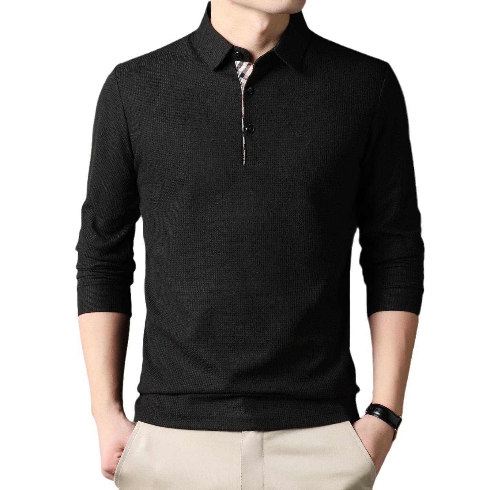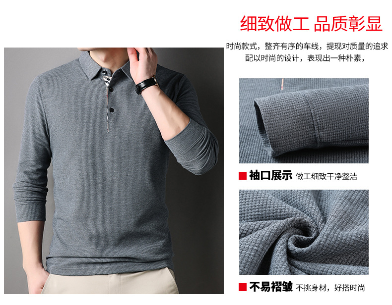 Мужская футболка-поло с длинным рукавом для трансграничной торговли, весна-осень 2026, однотонная, вафельная, для молодежи и среднего возраста, повседневная, универсальная