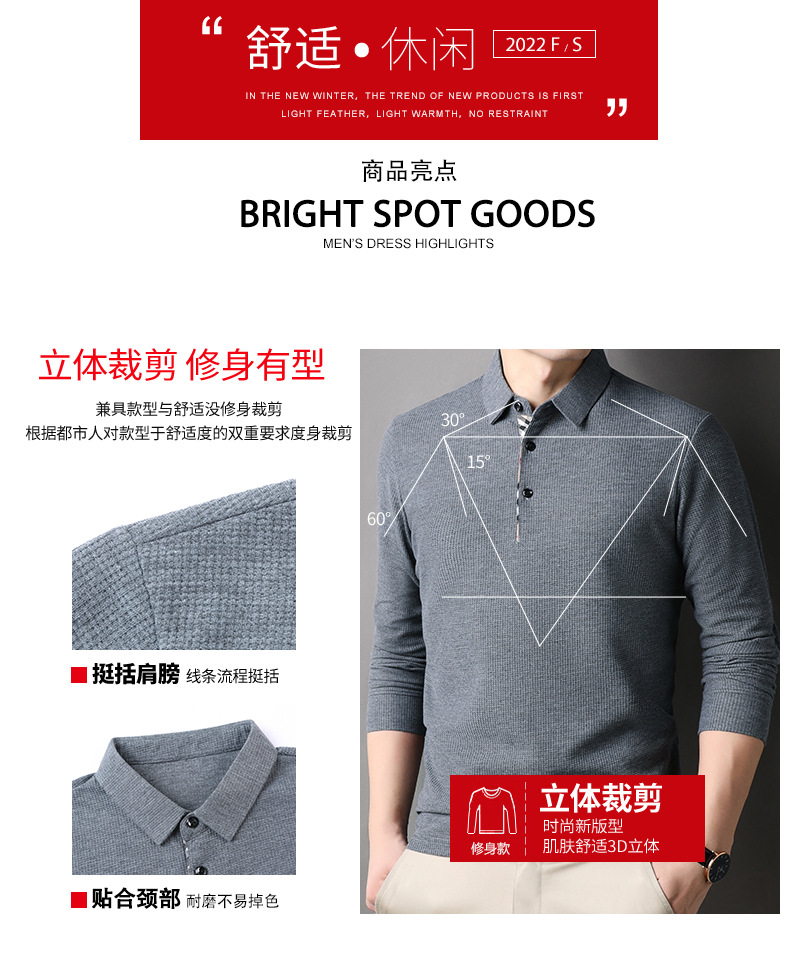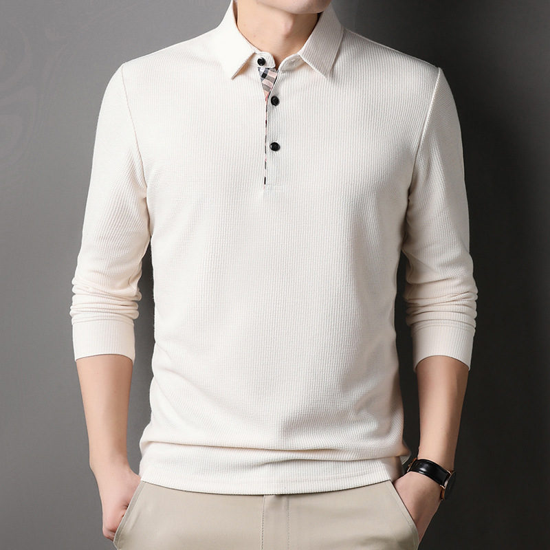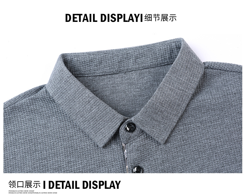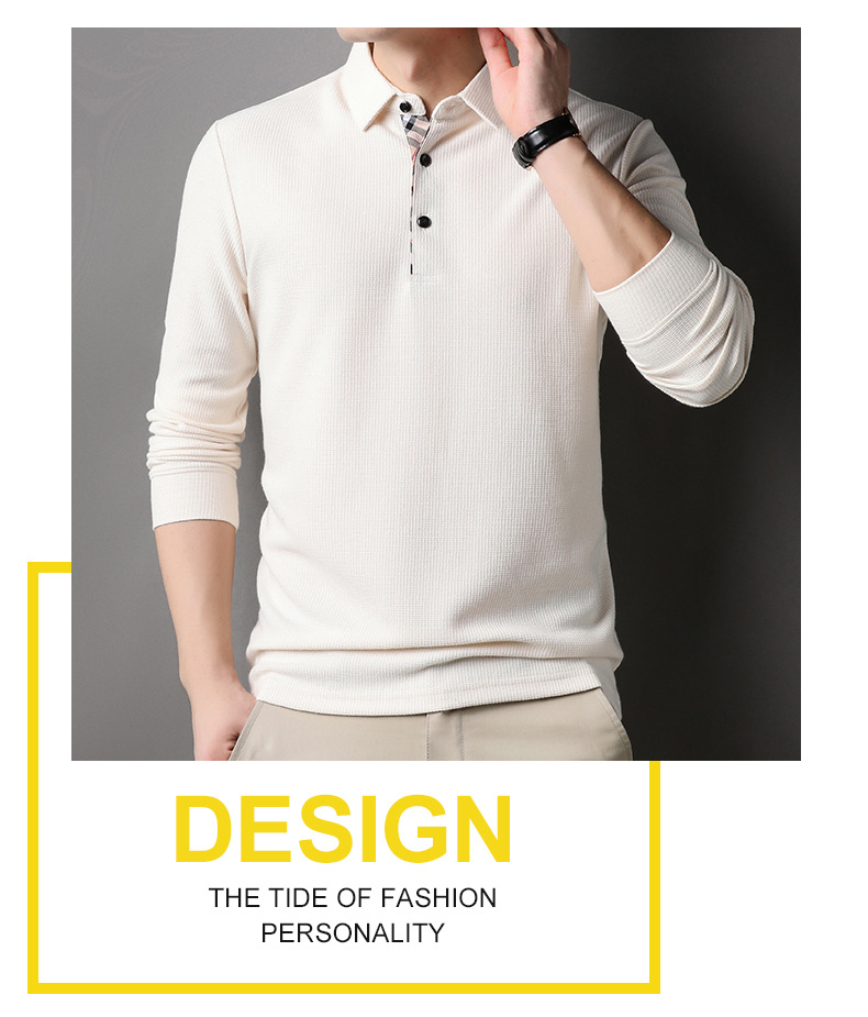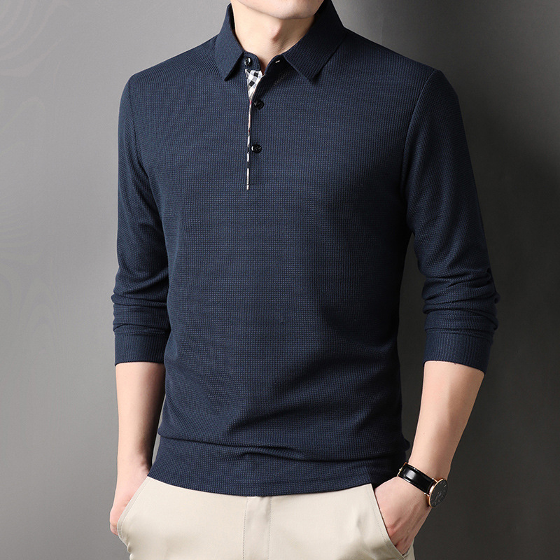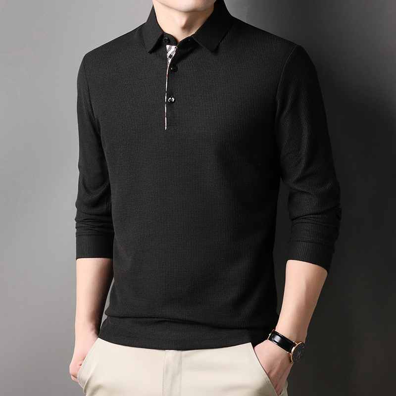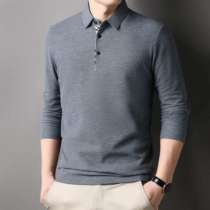 Мужская футболка-поло с длинным рукавом для трансграничной торговли, весна-осень 2026, однотонная, вафельная, для молодежи и среднего возраста, повседневная, универсальная