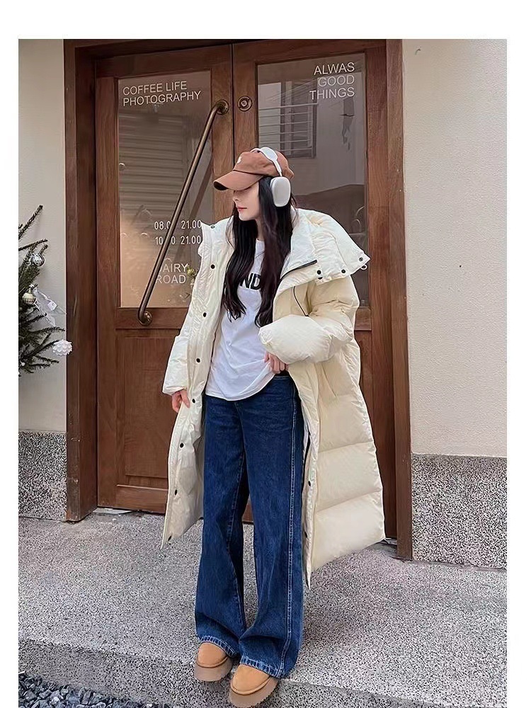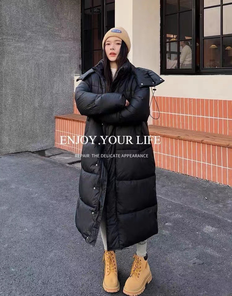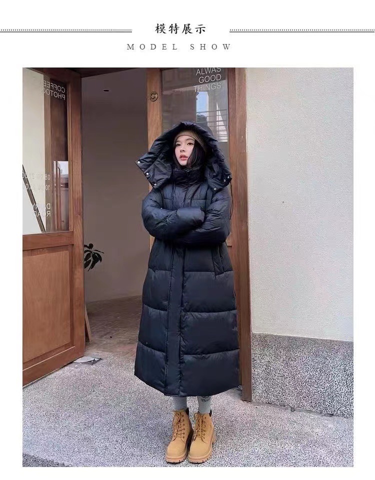 Новинка 2023, зимняя хлопковая верхняя одежда выше колена в корейском стиле для женщин, свободная хлопковая верхняя одежда с капюшоном большого размера, утолщенная верхняя одежда
