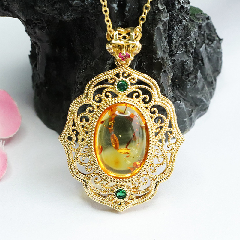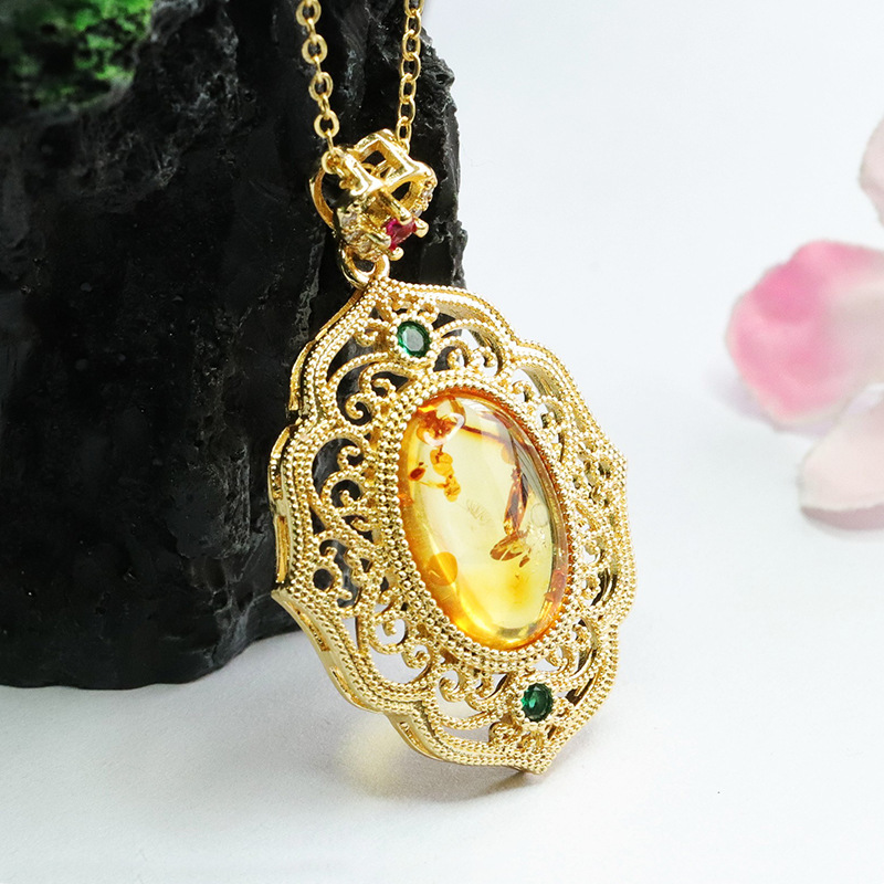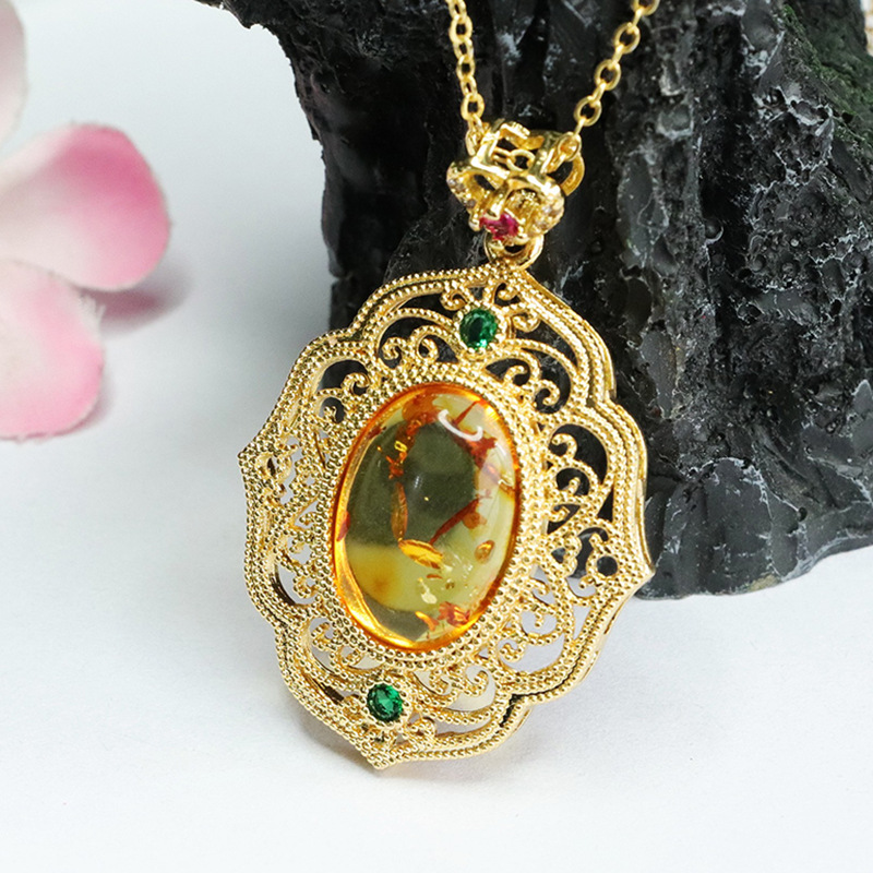 Цветочный янтарный полый кулон Ruyi