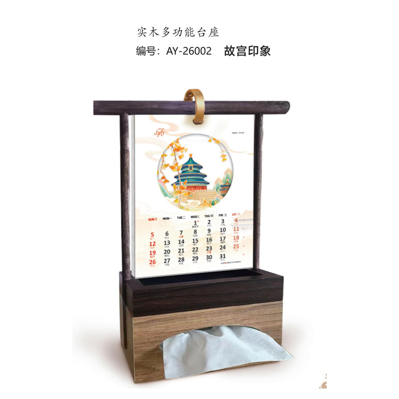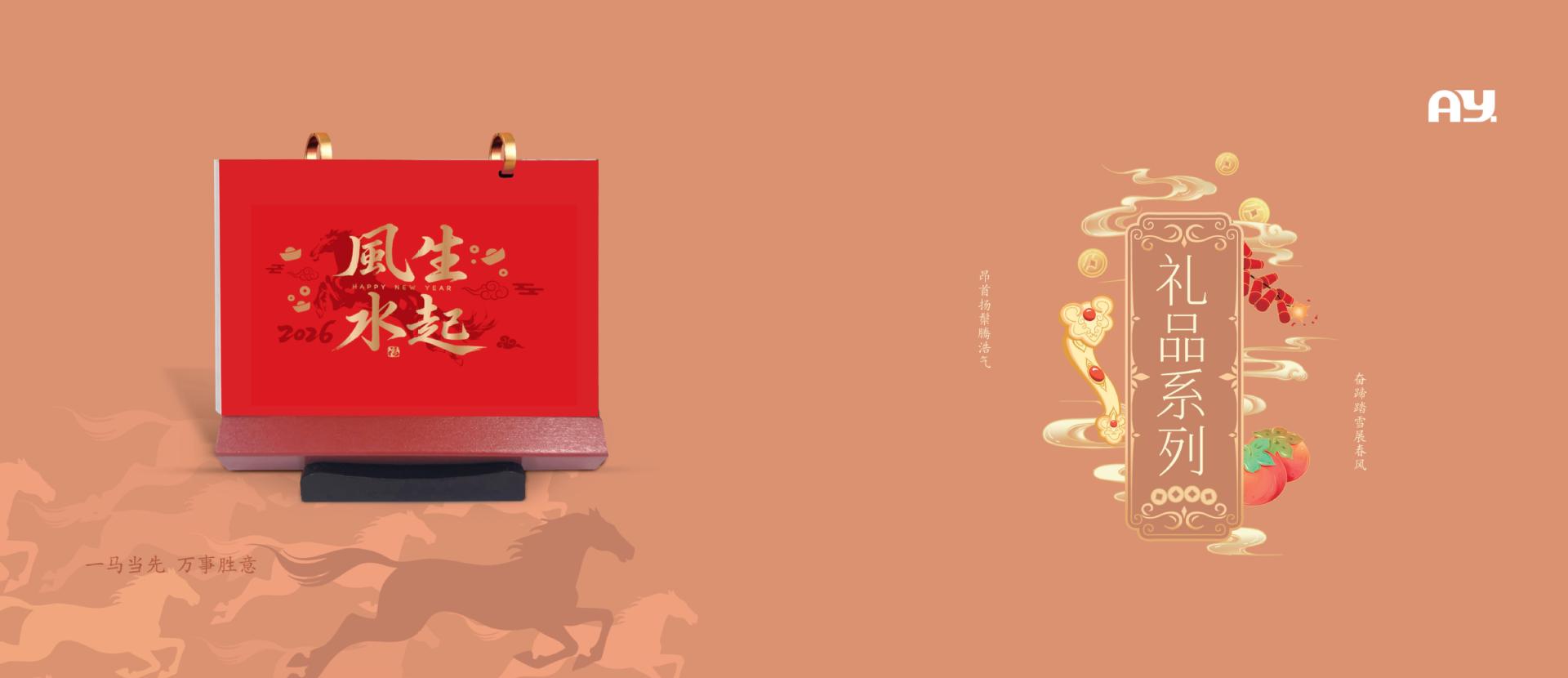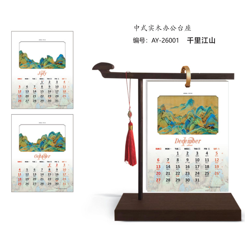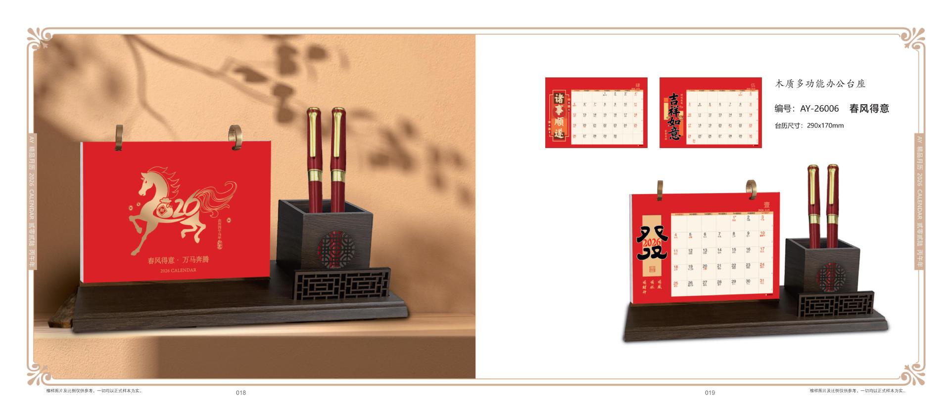 Набор корпоративных календарей на 2026 год (Год Лошади) в подарочной упаковке с самоклеящейся подставкой из массива дерева, цветной высококачественный календарь с золотым тиснением